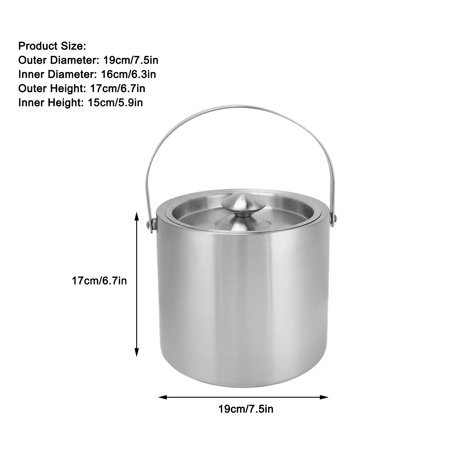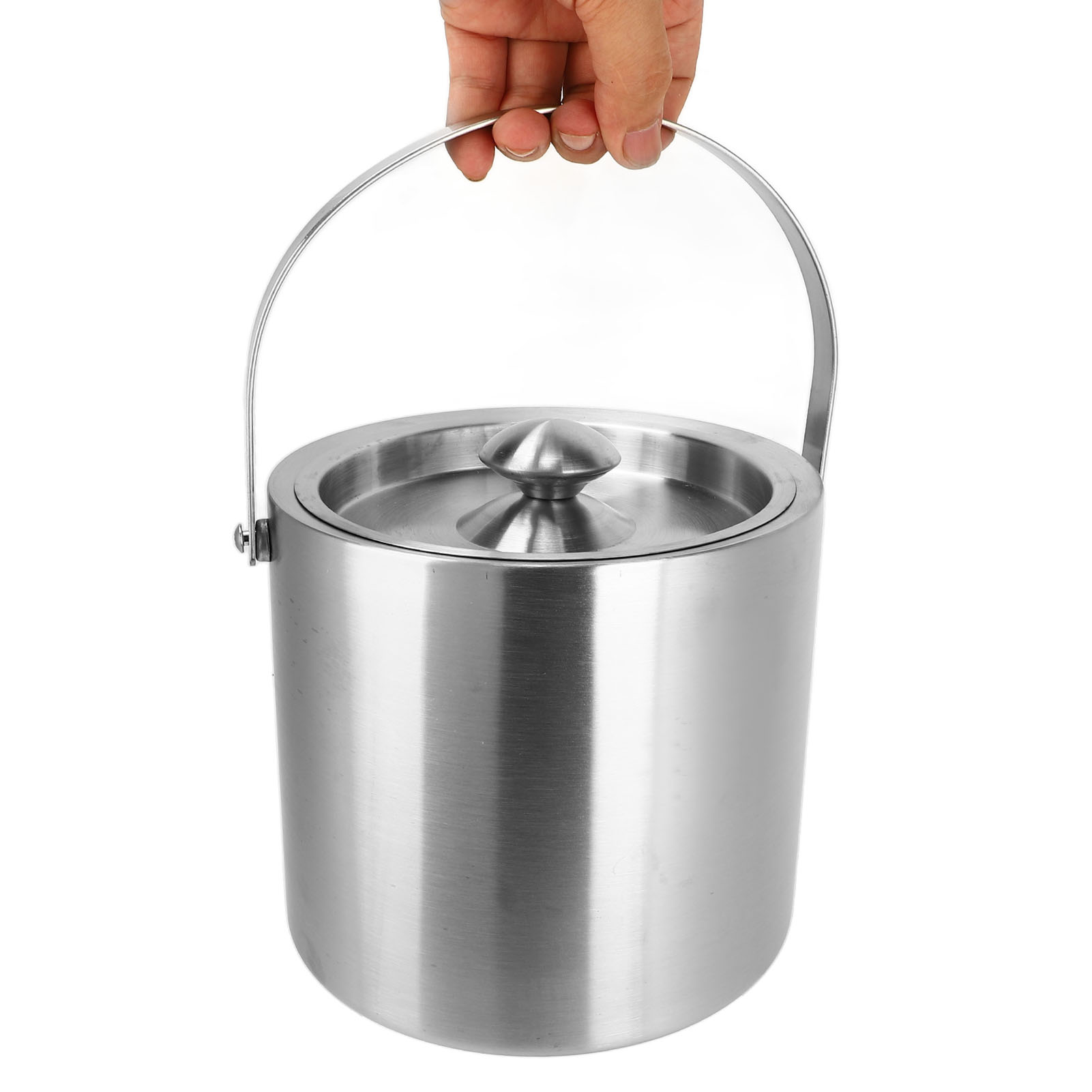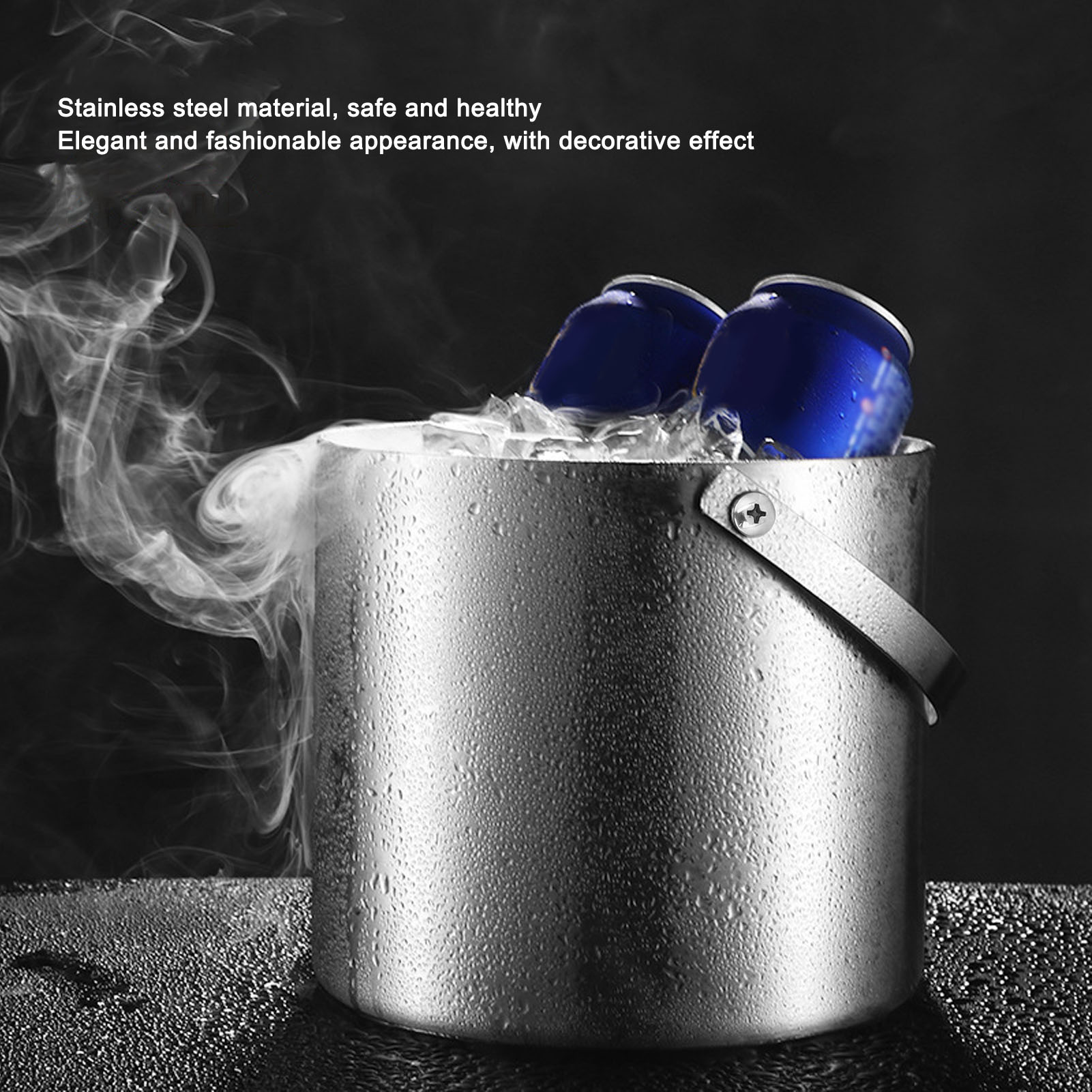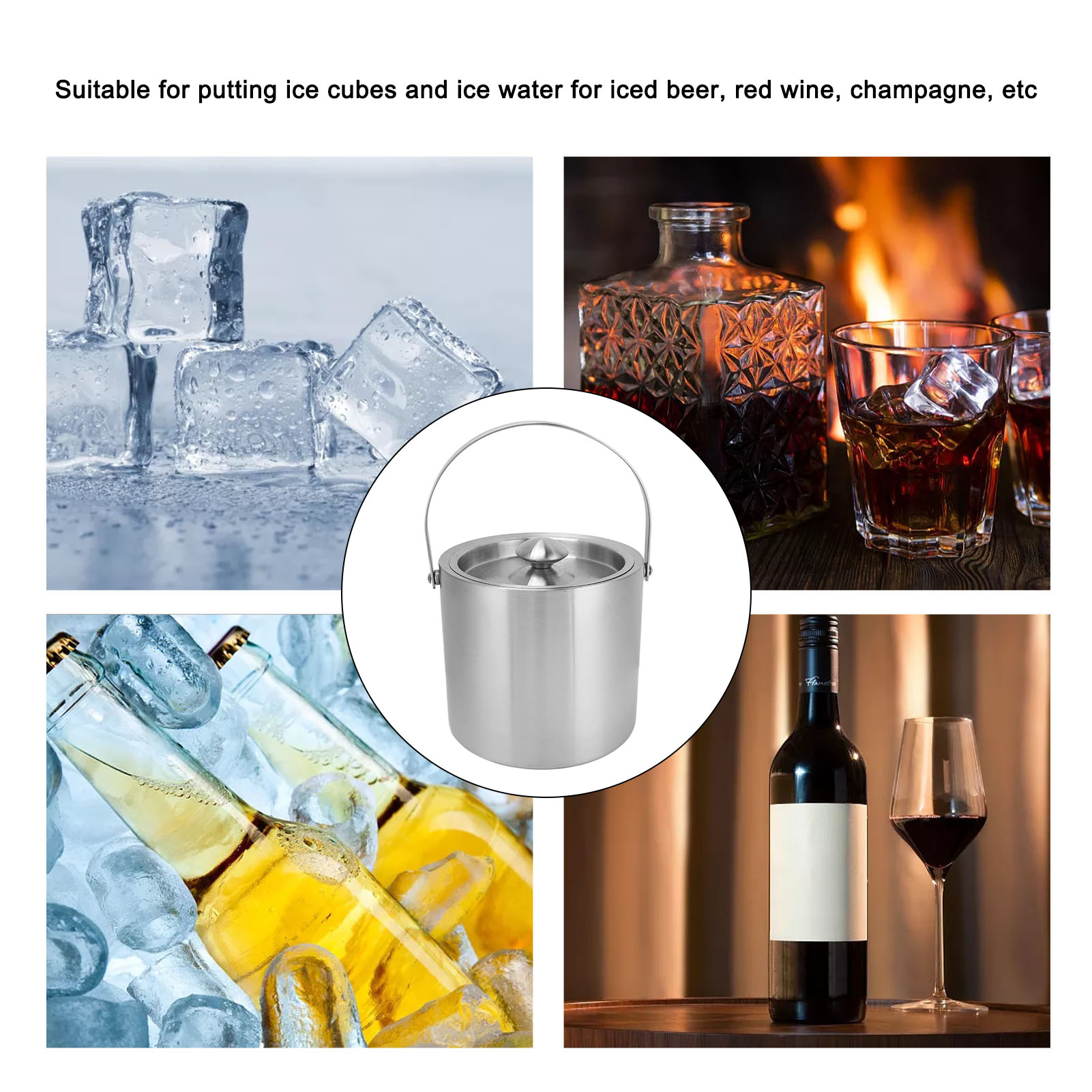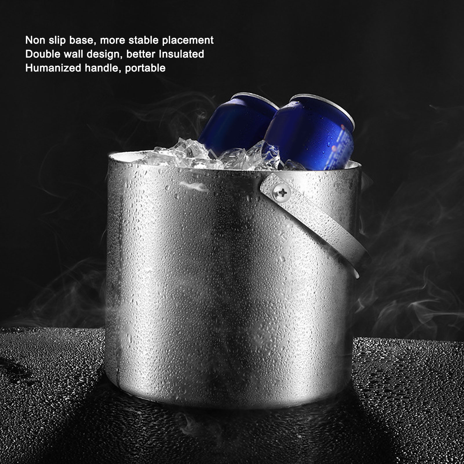 1、Better Insulated: This ice bucket has double wall and a lid, which makes the ice bucket better insulated, which is very suitable for freezing all kinds of wine. 2、Anti Slip Base: The base of the stainless steel ice bucket adopts concave design, which can effectively prevent slipping and make the placement more stable. 3、Humanized Handle: The cast steel handle of the ice bucket adopts human mechanics design, making the bucket easy to control, which is easy to carry. 4、Elegant and Safe: The appearance of the ice bucket is elegant and fashionable, which has a good decorative effect. At the same time, the material is also safe and healthy. 5、Easy to Clean: The beer ice bucket adopts wire drawing and polishing process inside and the ice bucket has glossy surface, so the bucket is easy to clean.
