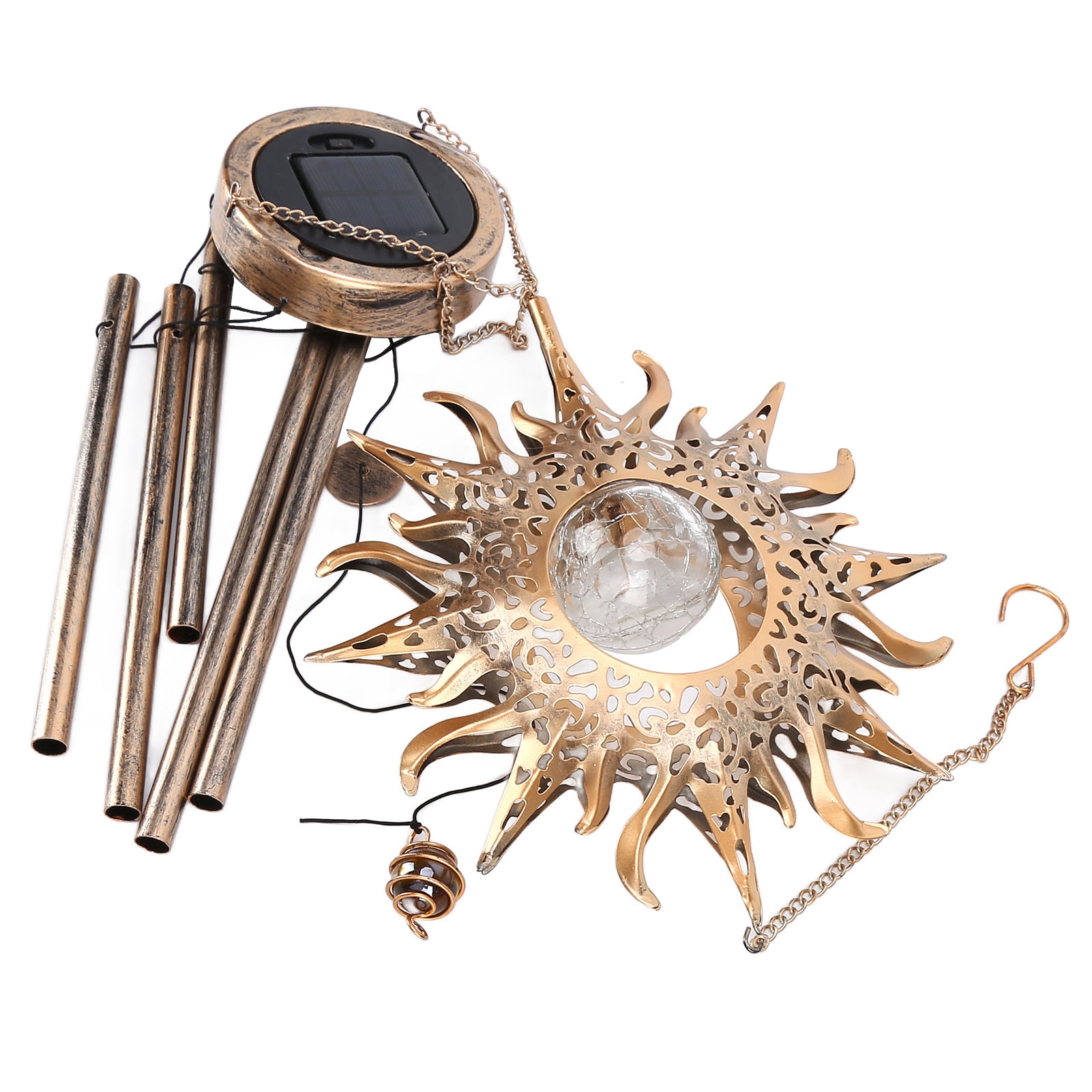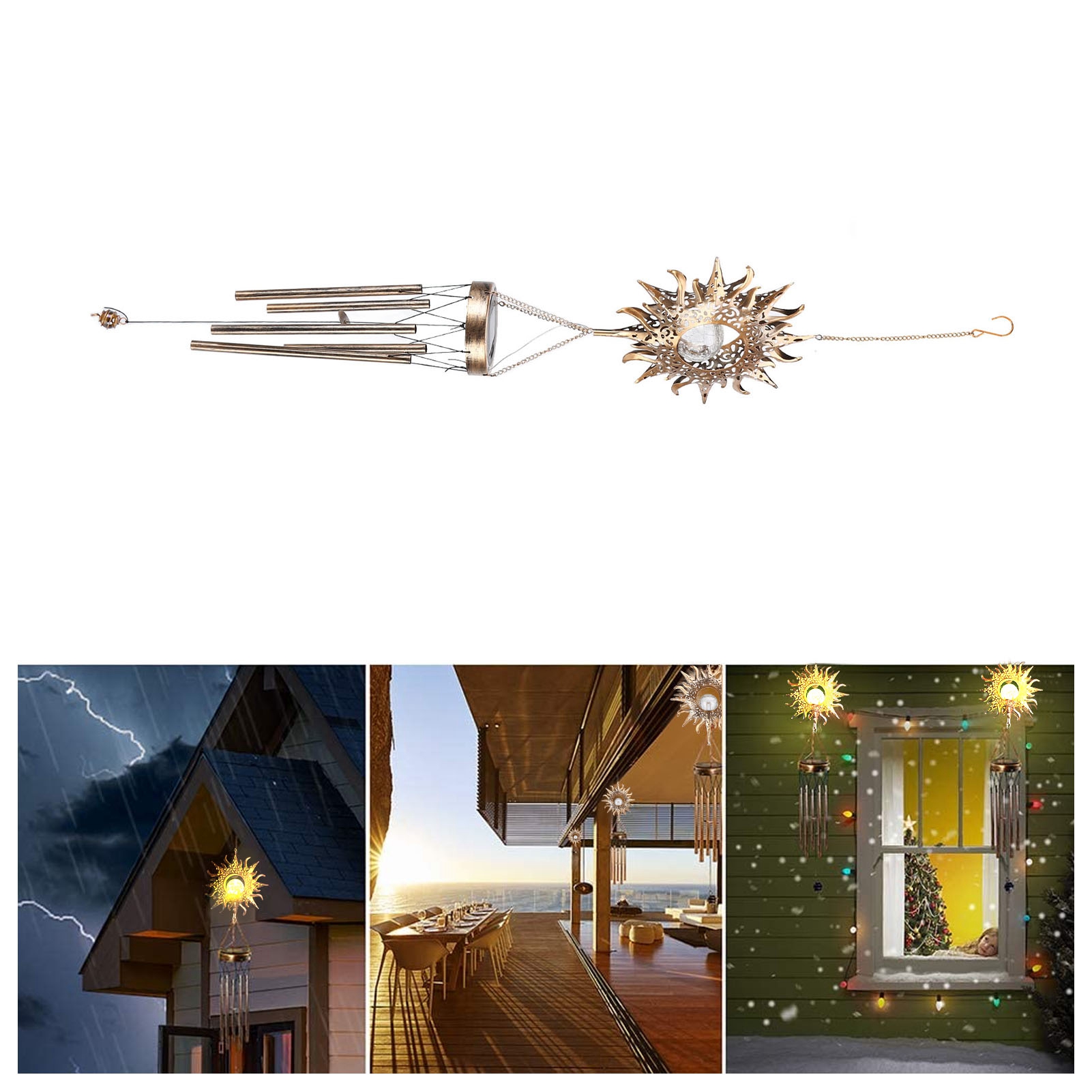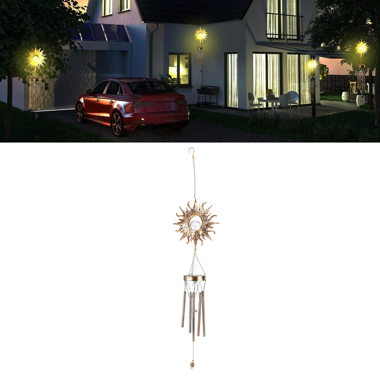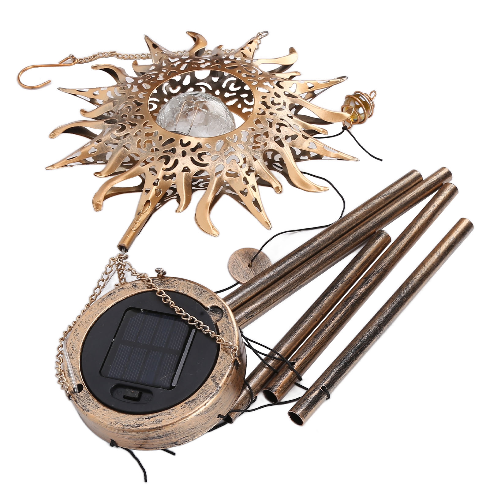 1、This retro solar wind chimes adopt beautiful hollow out design and are equipped with glass ball lamp, which can provide warm light and romantic atmospheres for your yard at night. These wind chimes are not only an outdoor wind chimes, but also a solar garden lamp. The pleasant wind chimes music is accompanied by warm lighting, which makes you feel more comfortable and relaxed. 2、This windbell is made of high quality infarctate aluminum and anti fading material, which makes its resonance time longer than other products and brings you lasting spiritual pleasure. The structure of wind chimes are strong and durable, which can resist most outdoor bad weather, and is not easy to rust and fade. The upper solar glass lamp has IP65 waterproof grade to ensure normal operation in rain and snow. 3、This product is powered by high efficiency solar panels. Turn the wind chimes switch to the ON key before making it work. The LED glass bulb lamp will automatically light up for about 8 hours at night after being fully charged for 8 hours in the daytime, which is both energy‑saving and environmental protection. Make sure that the wind chimes are hung in a sunny place without shading to get good sunlight. 4、These wind chimes are easy to be hanging outdoors or indoors as home decoration, without wiring or external power. These wind chimes are designed to add fashionable and warm atmospheres to your garden, yard, lawn, balcony, window, tree and front porch. It can also be used to decorate children's room and living room, adding beautiful melody to your family. 5、These wind chimes are a commemorative gift to express love, happiness, safety and best wishes. It's not only the best gift for mom, family, friends, girls, birthdays, mother's day, father's day, Thanksgiving, Valentine's day and Christmas, but also for anniversaries and housewarming.