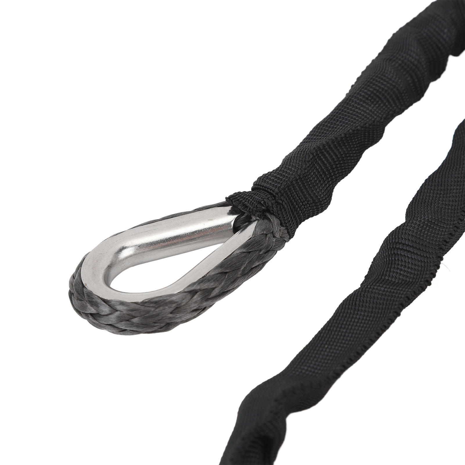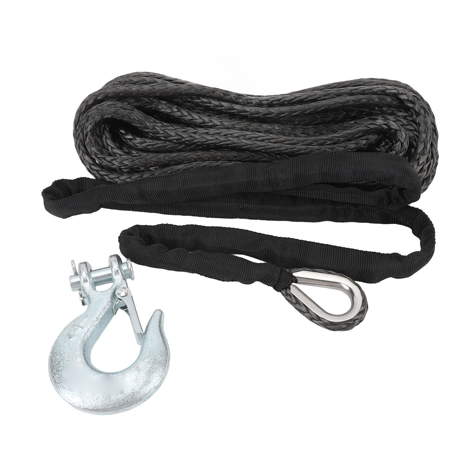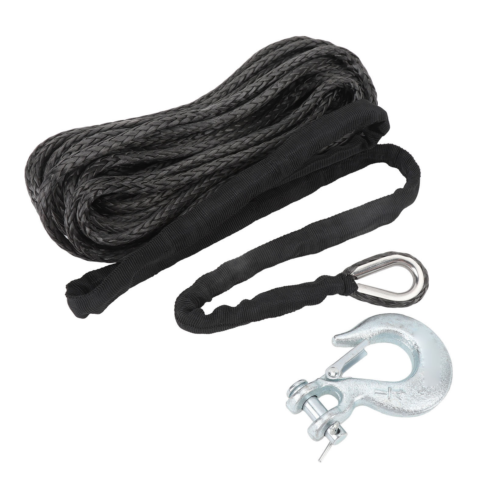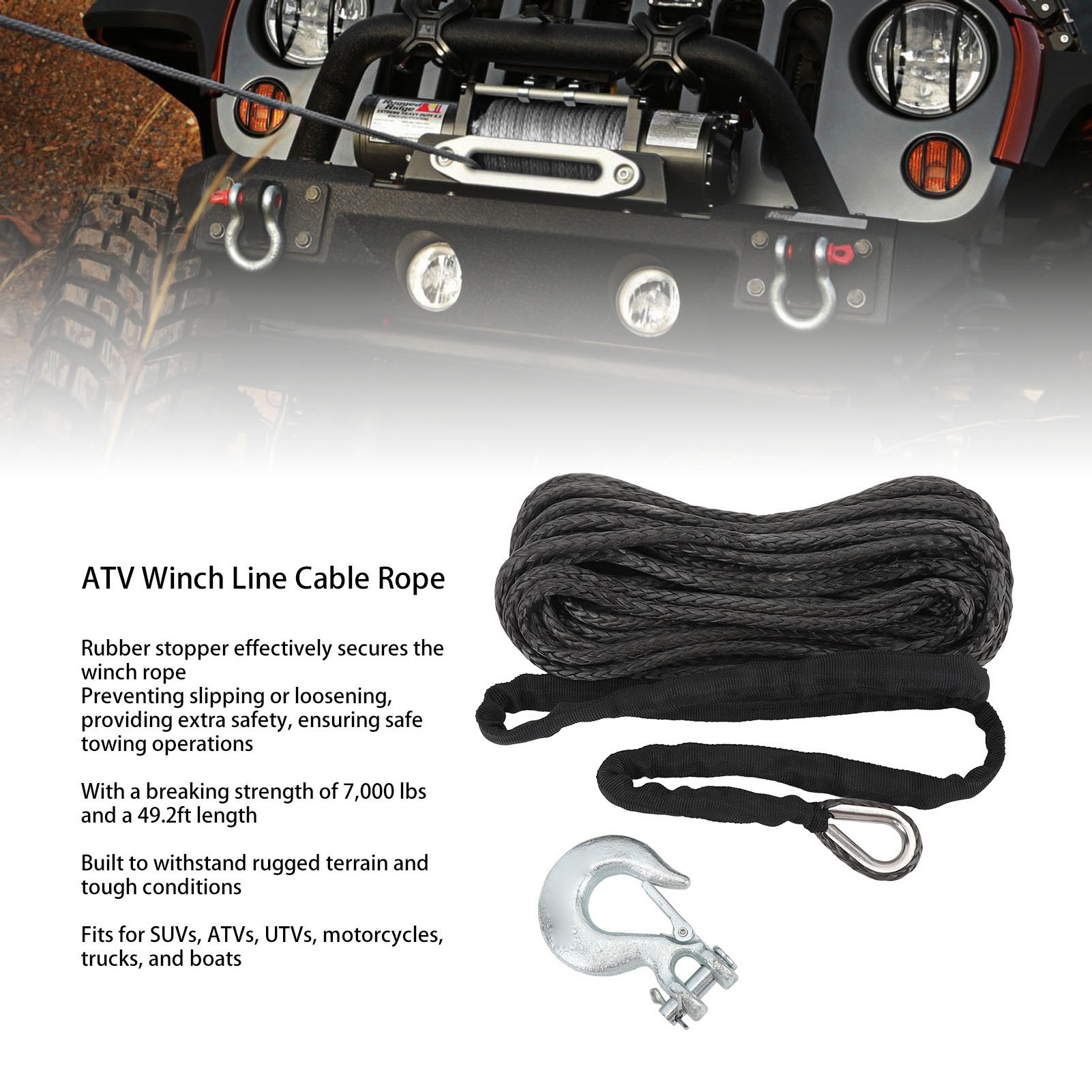 1、ATV Winch Rope: Made of wear resistant, high strength material, ensuring safety and reliability during use. Includes a sturdy winch hook and rubber stopper for added strength and stability. 2、Secure and Reliable: The rubber stopper effectively secures the winch rope, preventing slipping or loosening, providing extra safety, ensuring safe towing operations. 3、Universal Compatibility: Suitable for 2000‑4000 lbs winches, with 4mm‑5.5mm winch rope. Widely used in various vehicles such as SUVs, ATVs, UTVs, motorcycles, trucks, and boats. 4、High Reliability: With a breaking strength of 7,000 lbs and a 49.2ft length, the winch rope is built to withstand rugged terrain and tough conditions. Perfect for rescue missions, off road adventures, and expeditions. 5、Enhanced Safety: The rubber stopper and winch hook are designed for maximum strength and stability, ensuring a safe and reliable towing experience, better upgrade your vehicle's winch system.