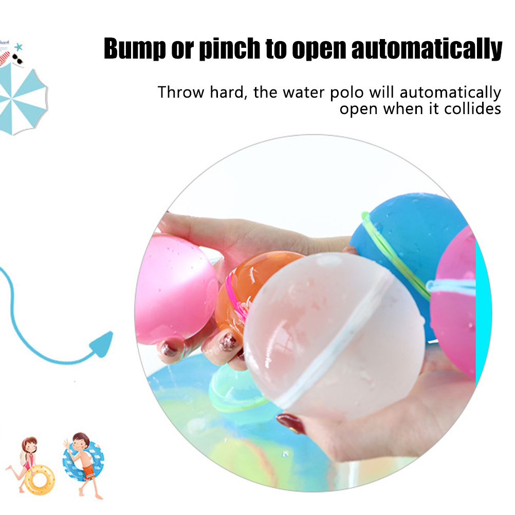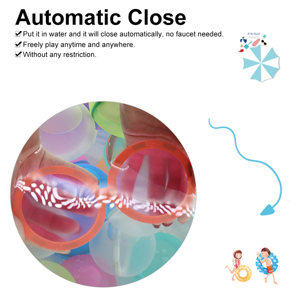 1、1. Reusable water balloons: The splash balls are available in many colors for you to choose from. Each ball is 2.36 inches in diameter. Fill the ball with water and it's ready to be thrown. 2、2. Silicone material: Unlike water balloons, these colorful water balloons can be used repeatedly to take the game to the next level. Because they're made of silicone, they're soft enough to fight wars. 3、3. Automatic suction: automatically suction when put into water, no faucet required, can be played anytime, anywhere, without local control, at the same time, when the ball is collided or squeezed, it will automatically open, which is very interesting. 4、4. Recyclable: Splash in the game with these active colorful water splash balls for water games, they won't be damaged after being thrown, they can be recycled and used again, suitable for adults and families in outdoor summer games, it's fun the whole family can enjoy the activity. 5、5. Party gifts: It is the perfect prize for kids' party favors, themed birthday parties, small toy giveaways at summer-themed parties, gift bag fillers, kids, teens, and adult pool party favors.