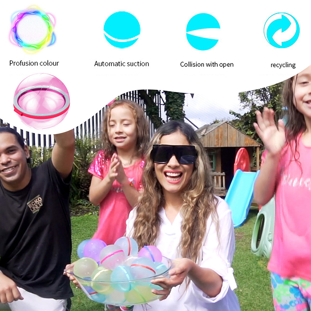 1、1. Reusable water balloons: The splash balls are available in many colors for you to choose from. Each ball is 2.36 inches in diameter. Fill the ball with water and it's ready to be thrown. 2、2. Silicone material: Unlike water balloons, these colorful water balloons can be used repeatedly to take the game to the next level. Because they're made of silicone, they're soft enough to fight wars. 3、3. Automatic suction: automatically suction when put into water, no faucet required, can be played anytime, anywhere, without local control, at the same time, when the ball is collided or squeezed, it will automatically open, which is very interesting. 4、4. Recyclable: Splash in the game with these active colorful water splash balls for water games, they won't be damaged after being thrown, they can be recycled and used again, suitable for adults and families in outdoor summer games, it's fun the whole family can enjoy the activity. 5、5. Party gifts: It is the perfect prize for kids' party favors, themed birthday parties, small toy giveaways at summer-themed parties, gift bag fillers, kids, teens, and adult pool party favors.
