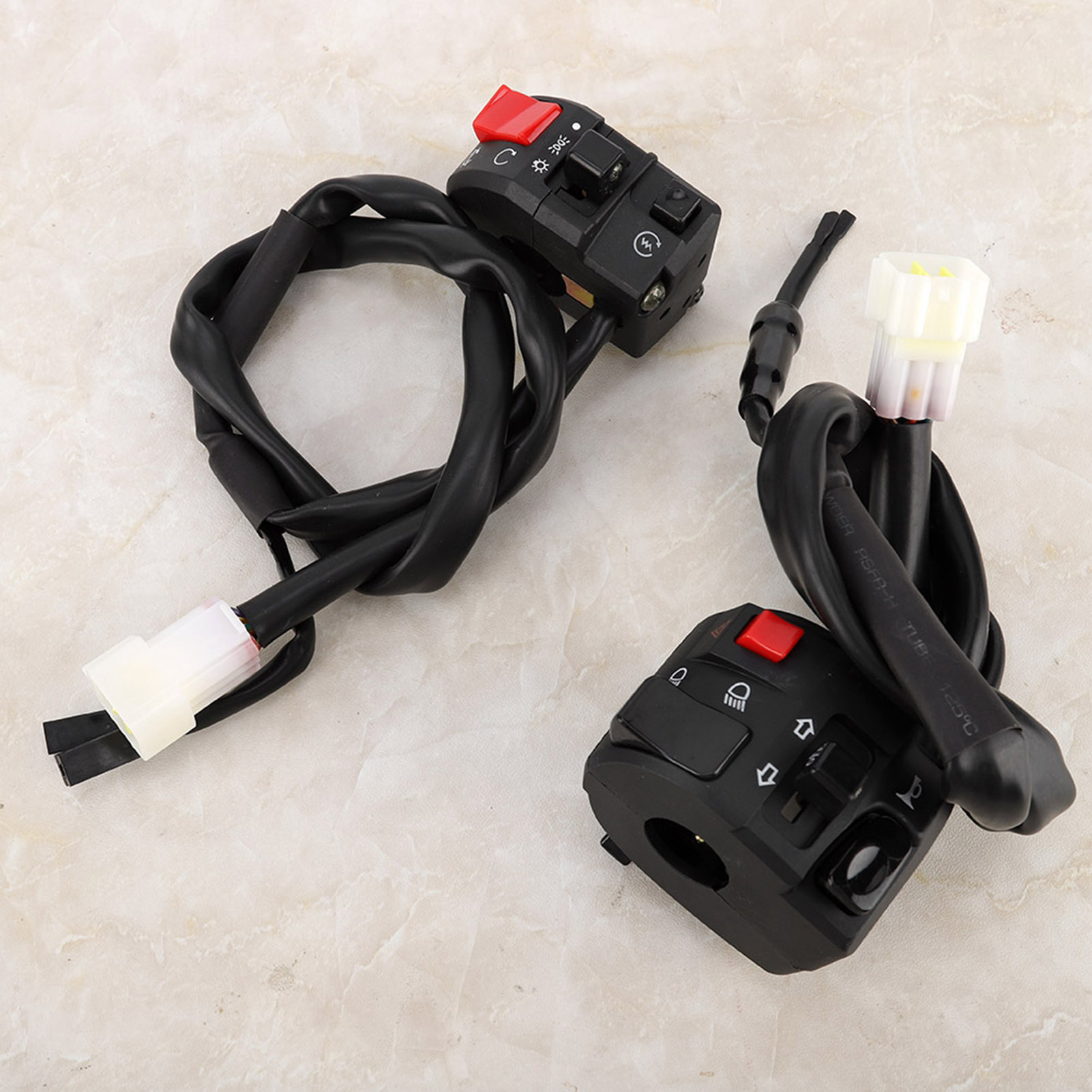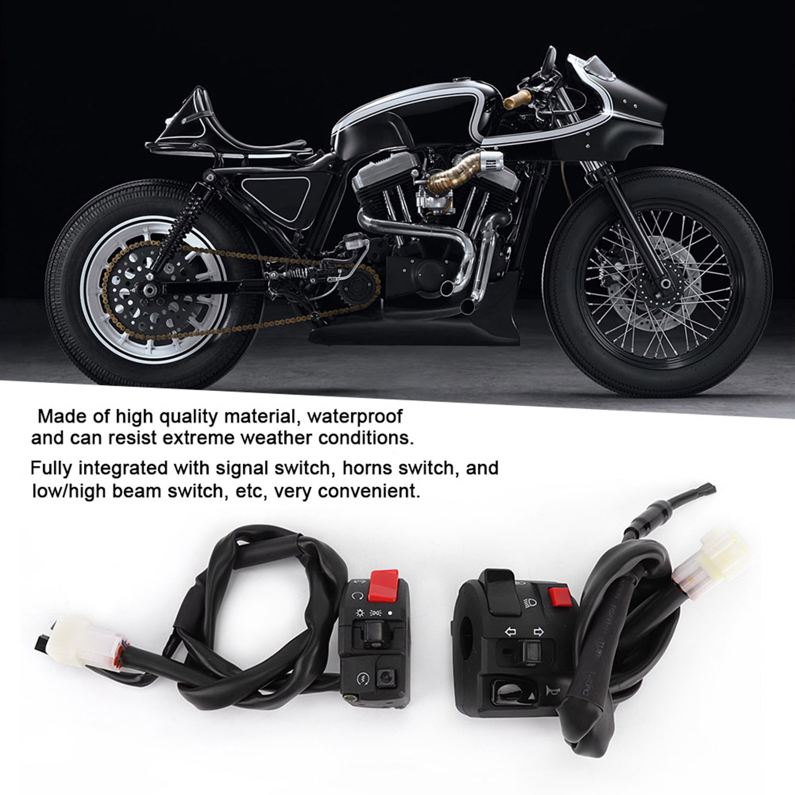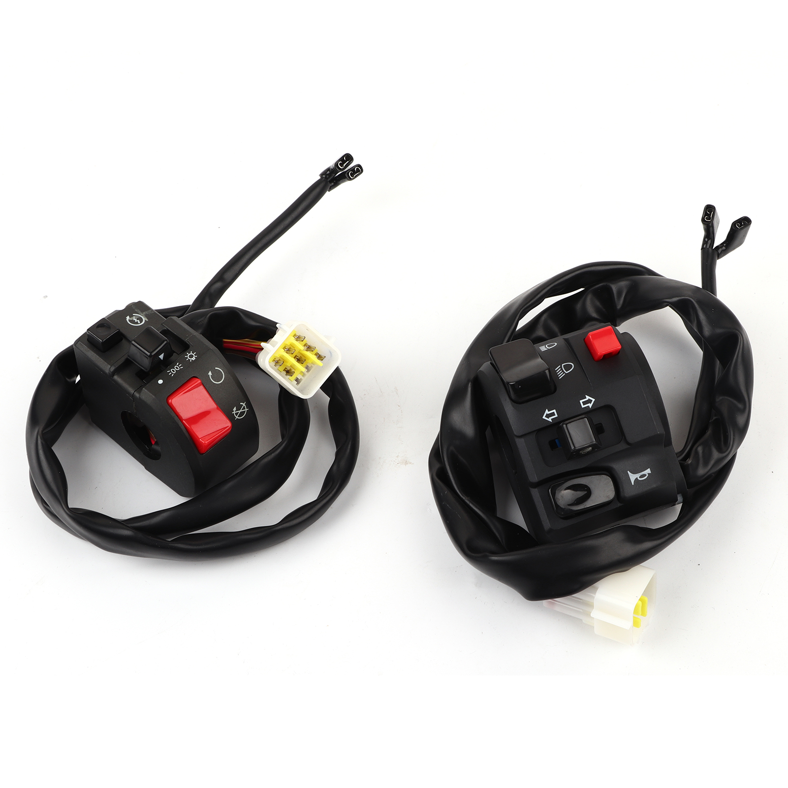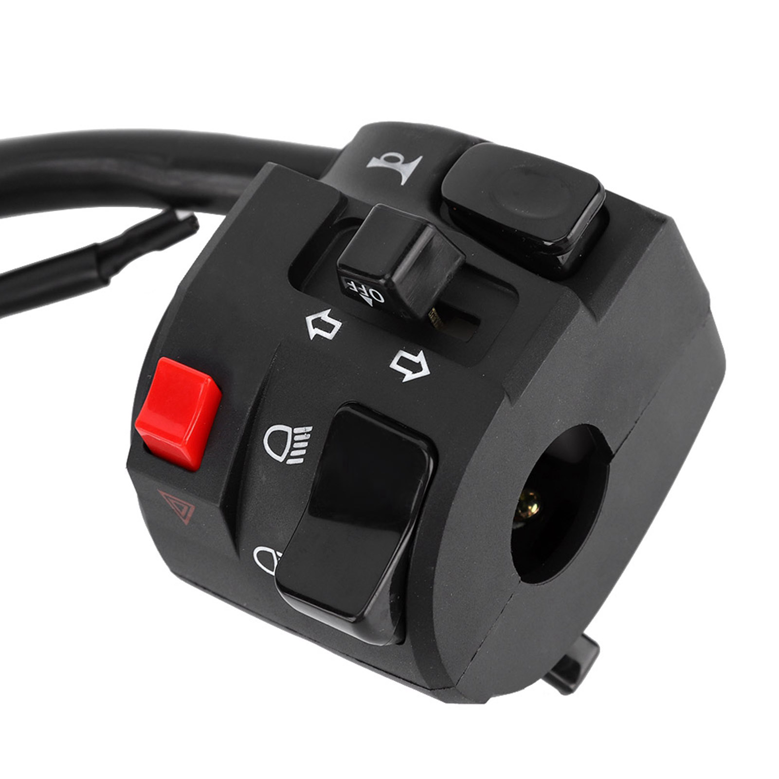1、Made of high quality material, waterproof and can resist extreme weather conditions. 2、Fully integrated with signal switch, horns switch, and low/high beam switch, etc, very convenient. 3、Environmentally friendly wires and connectors for excellent electrical conductivity and high speed data transfer. 4、Standardized design, easy to install, securely connected, not easy to loosen. 5、Universal switch fit for 22mm diameter handlebars.