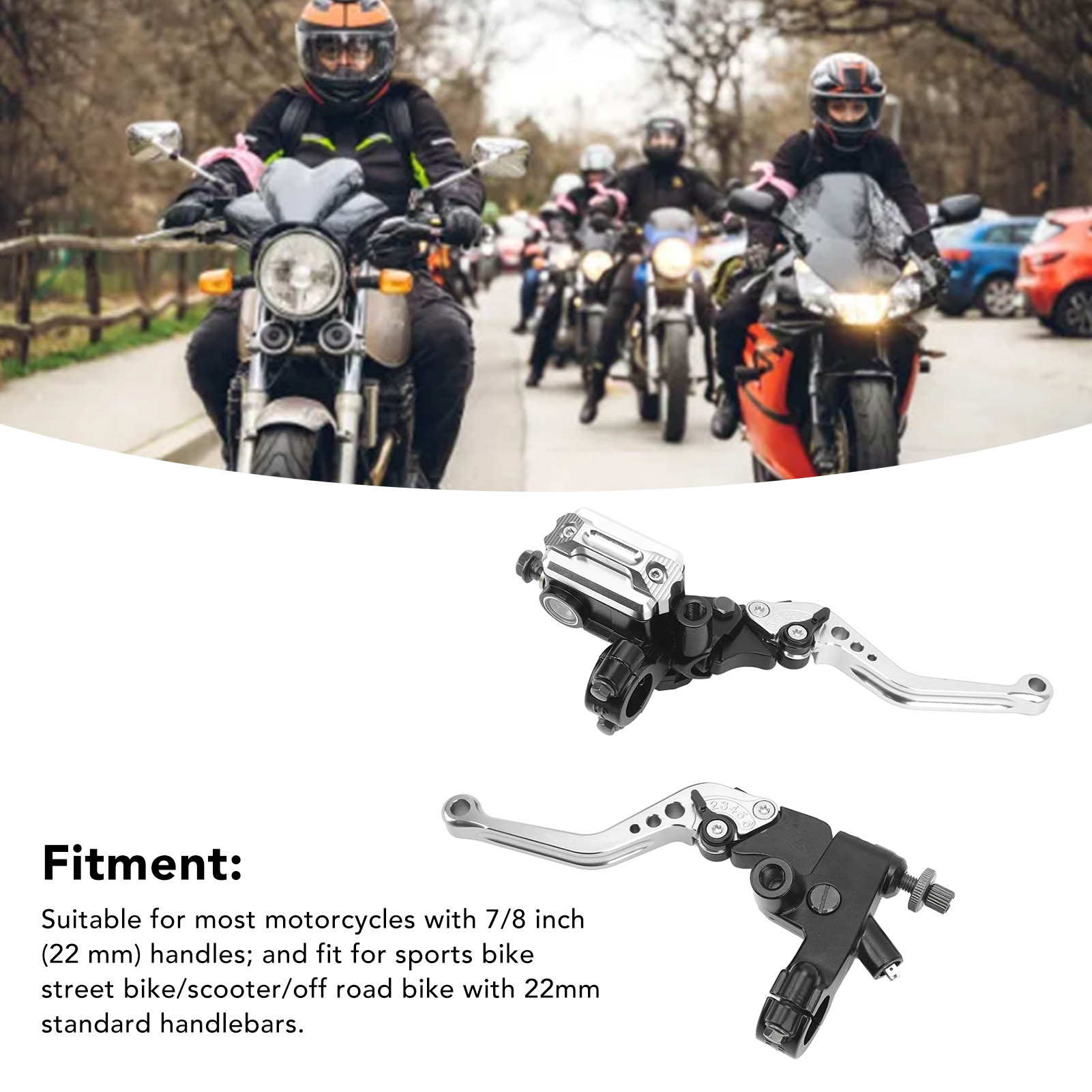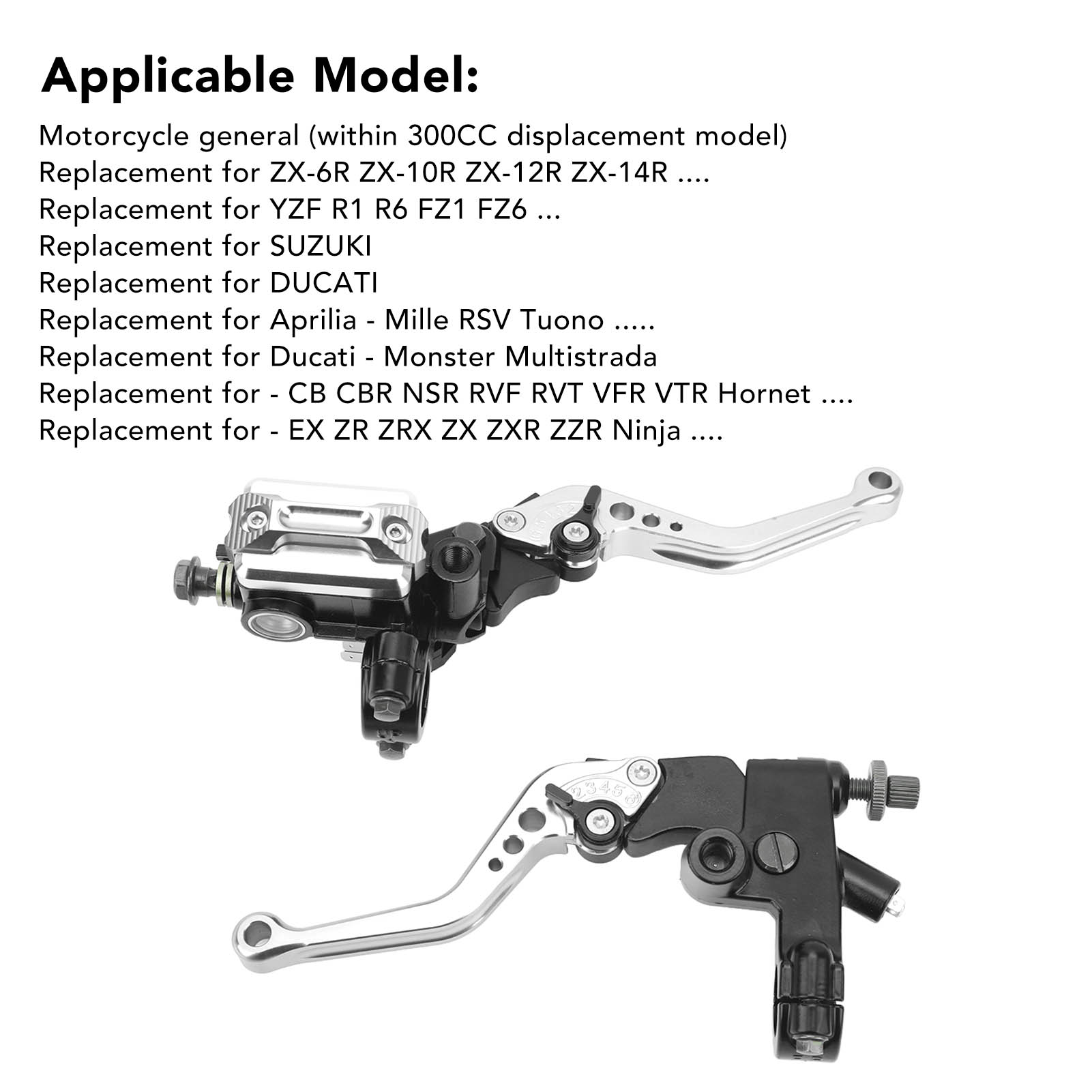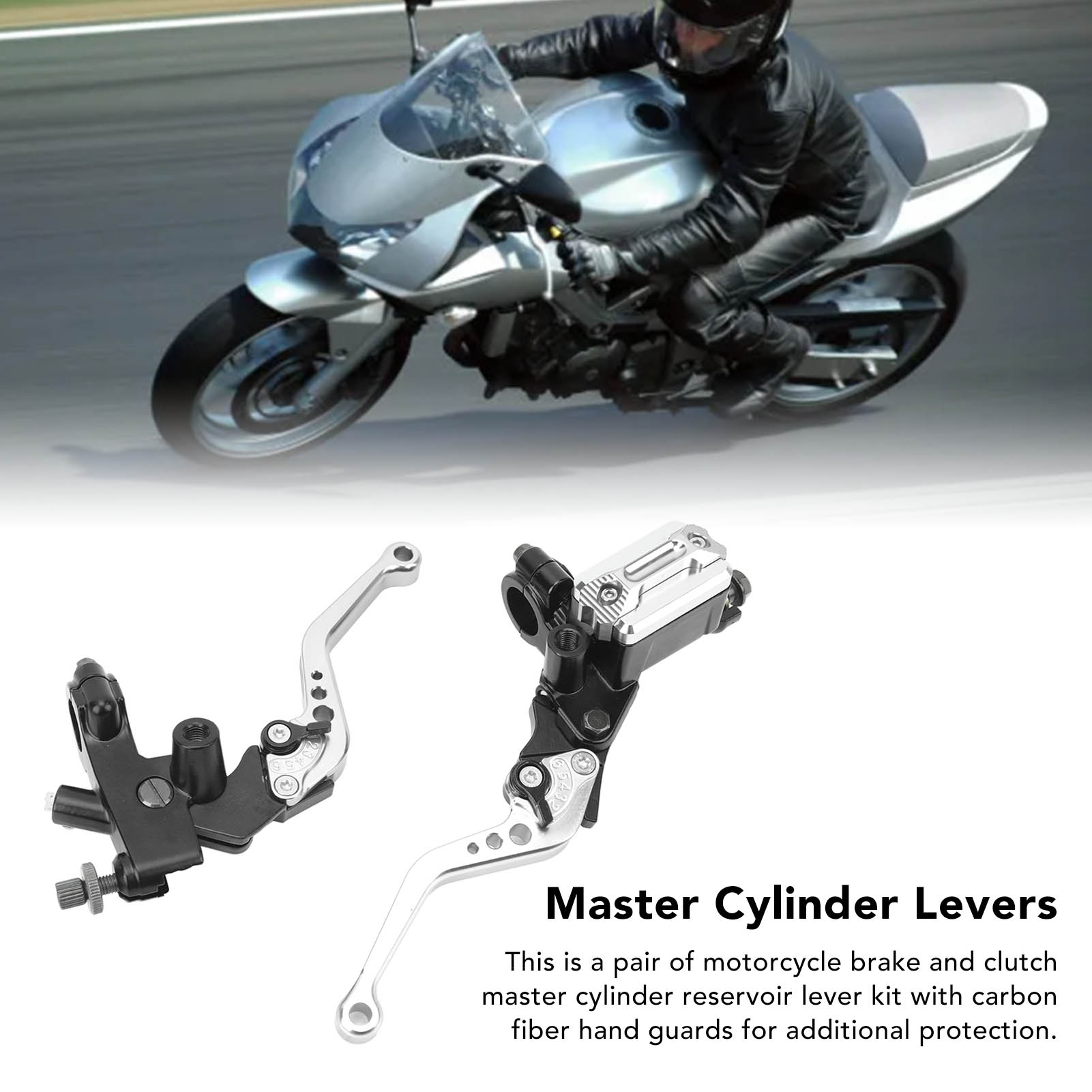 1、Applicable Model: Handlebar set is replacement for Suzuki GSF GSX GSXR RF RGV SV TL; replacement for DUCATI; replacement for bicicleta deportiva 2、Fitment: Suitable for most motorcycles with 7/8 inch (22 mm) handles; and fit for sports bike/street bike/scooter/off road bike with 22mm standard handlebars. 3、Motorcycle Modified Handle Kit: This is a pair of motorcycle brake and clutch master cylinder reservoir lever kit with carbon fiber hand guards for additional protection. 4、Durable and Fadeproof: The lever is made of CNC aluminum and anodized in the same color for a non fading, refined look with a strong metallic texture that matches the color of your motorcycle. 5、Adjustable and Easy to Install: The handle comes with an adjustable six speed distance for easy use by different riders. There are rear view mirror bases on both sides for easy installation without drilling or welding.