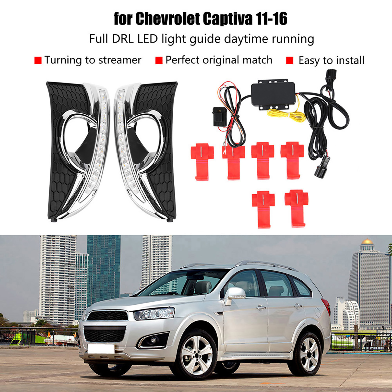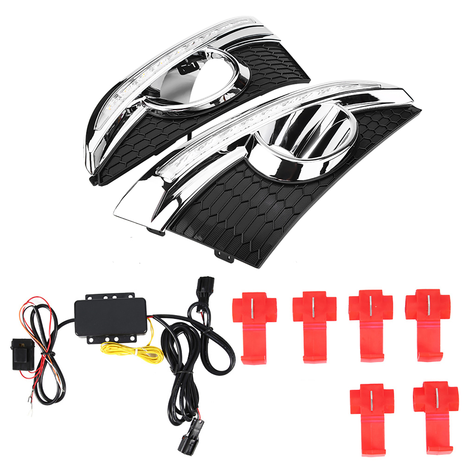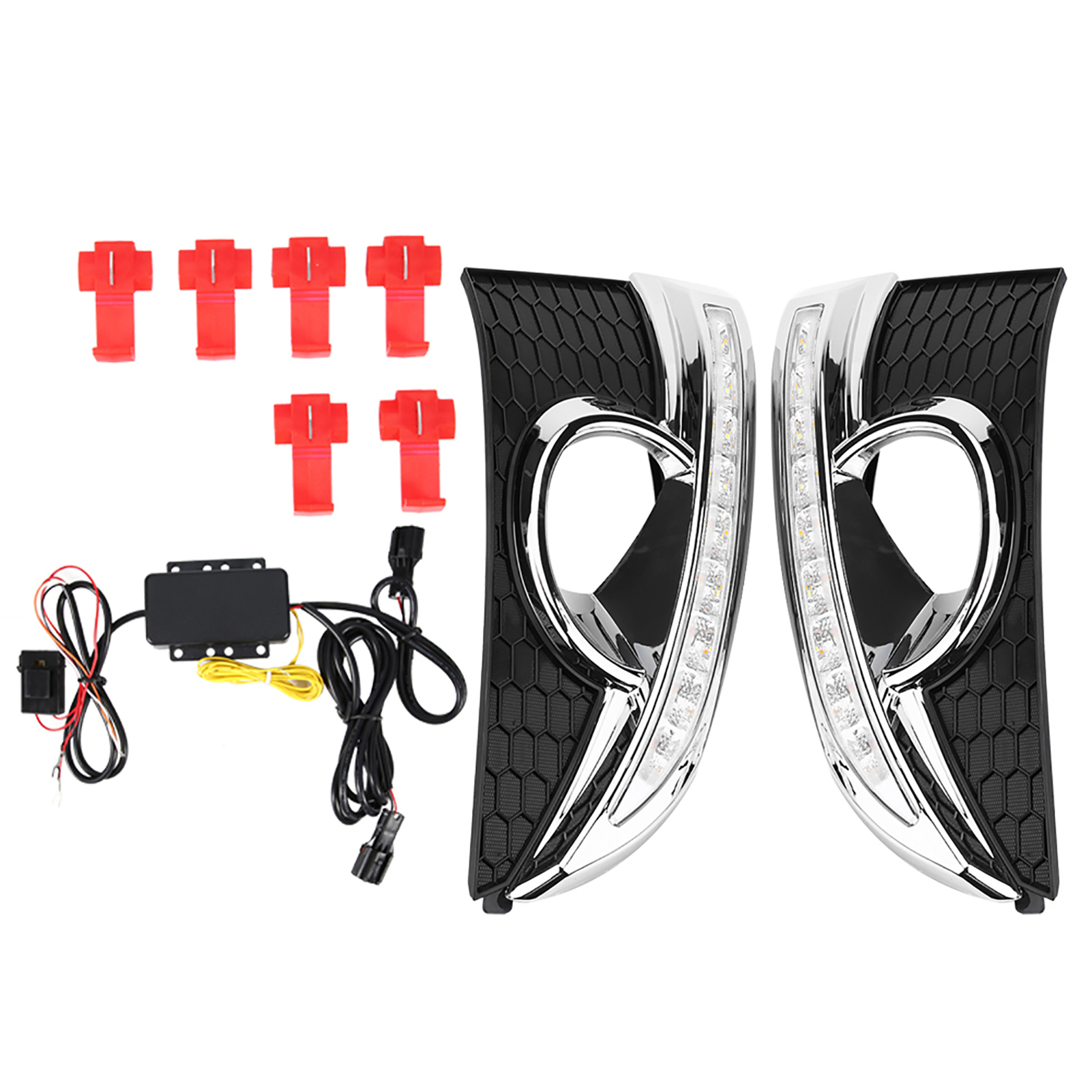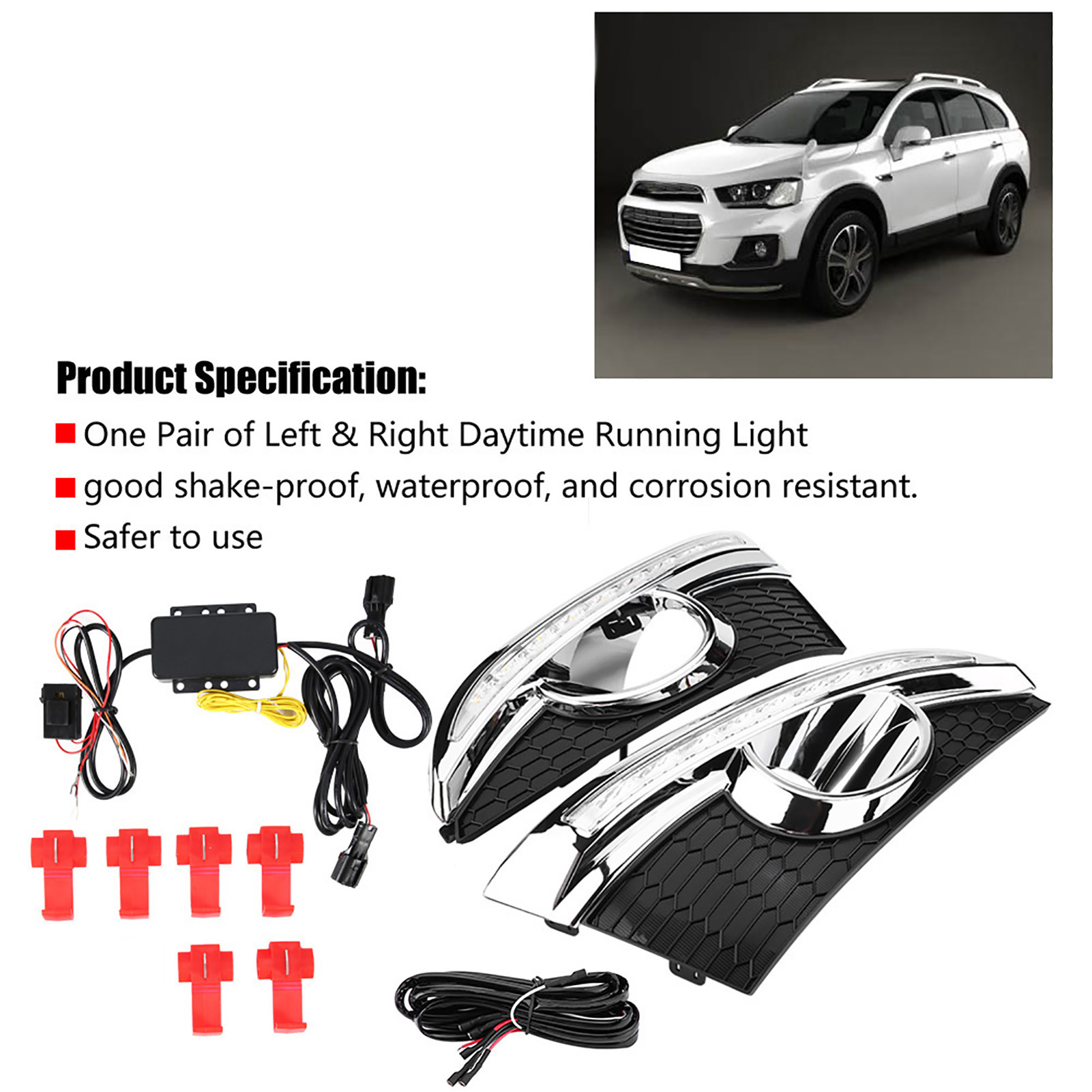 1、LED DRL provides you with a decisive safety leap in road traffic and helps prevent 58% of accidents. 2、Advanced constant current technology, well‑distributed luminescence. 3、Comes with two color LED lights, white light work as daytime running light, yellow light work as turning signal. 4、Oxidation treatment on surface. Nice appearance with good shake‑proof, waterproof, and corrosion resistant. 5、High quality ABS plastic material, good dissipation function and durable.