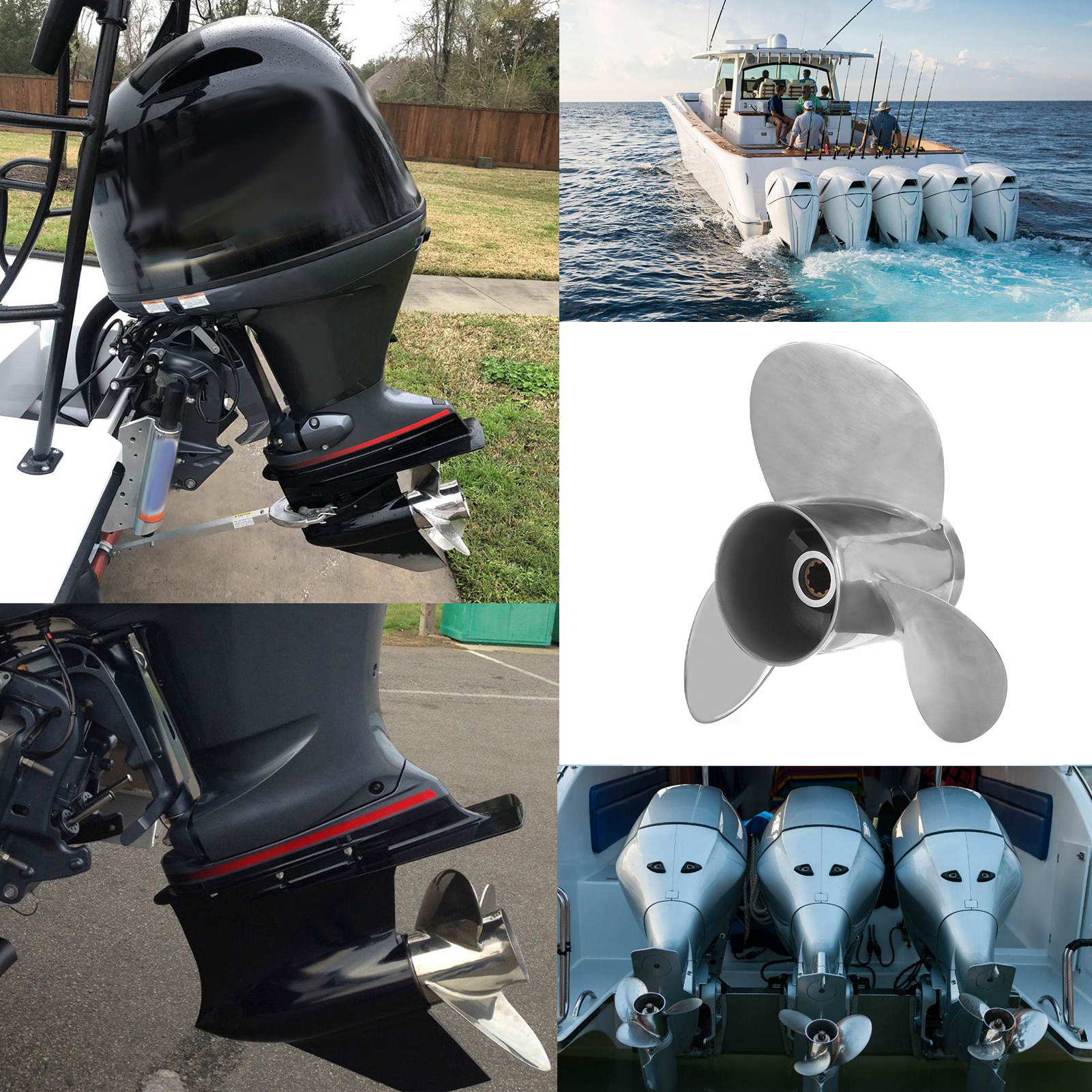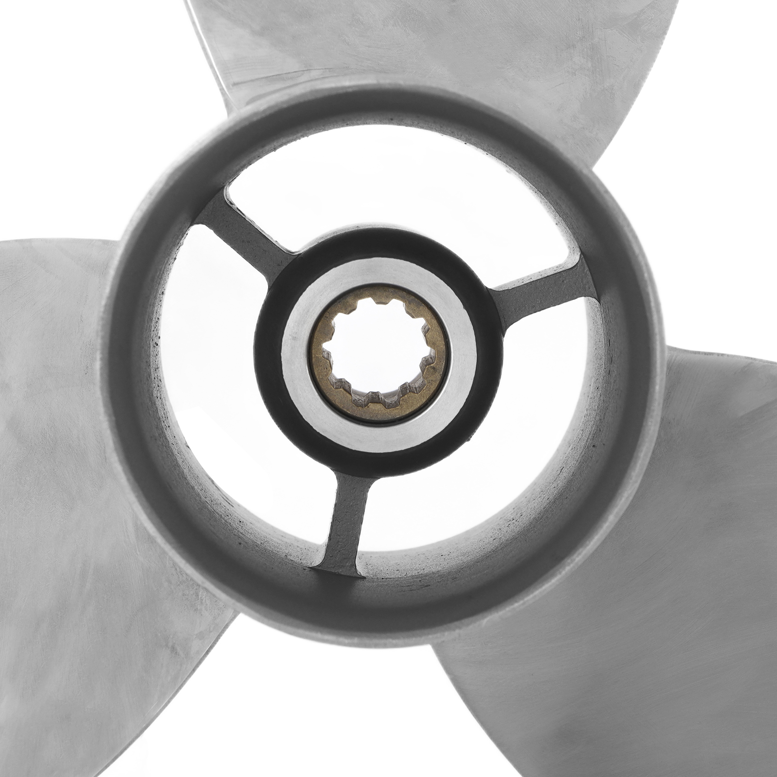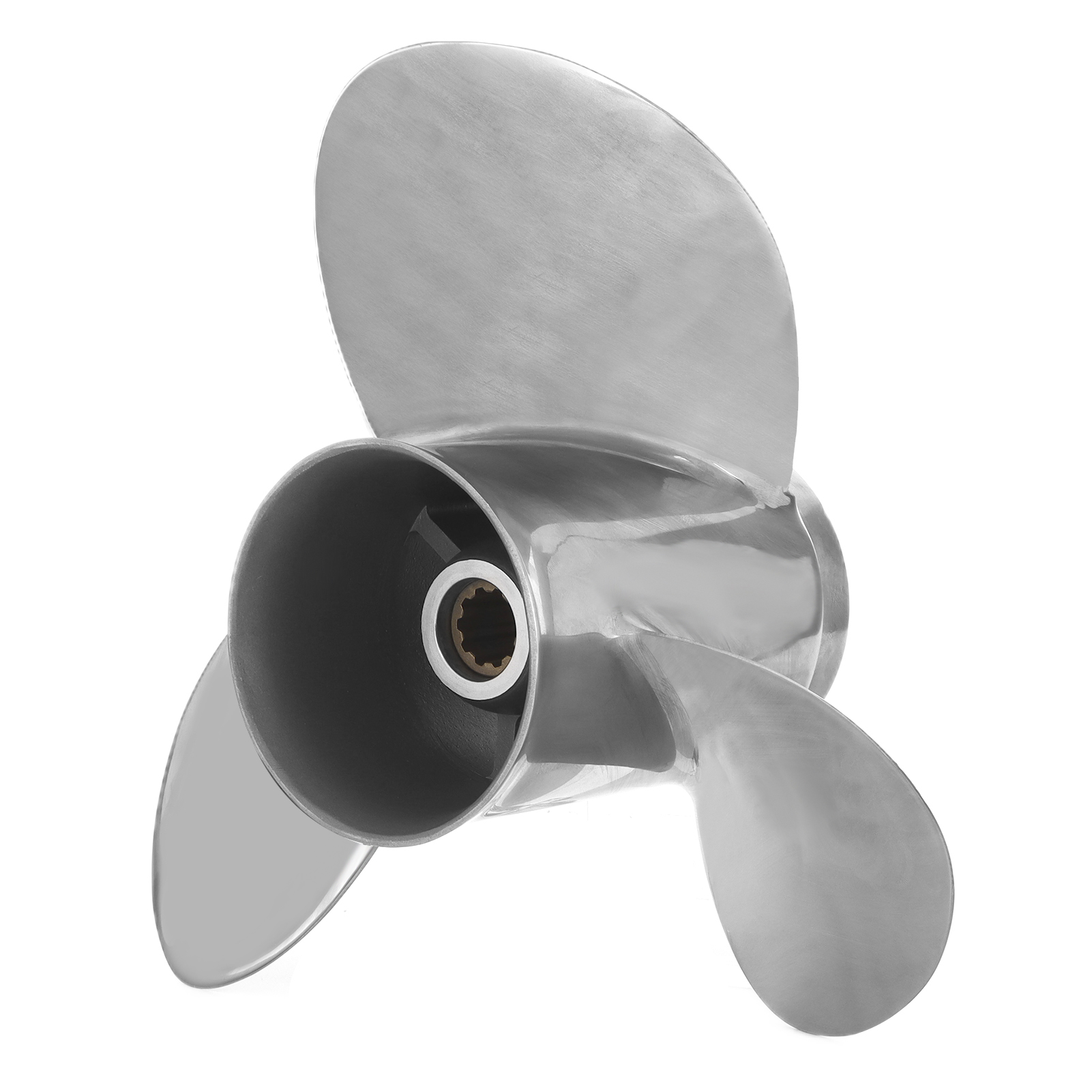 1、Stainless steel propeller blades, 3 sharp blades, the blade profile is almost zero resistance when underwater propulsion, can quickly cut through the water to push forward. 2、The propeller blade connection is made of pure copper 10 spline teeth to better match the engine speed, so that your outboard engine can be faster on the water. 3、The higher rake angle tights the swirls created by propellers to increase the ship's lift and overall performance, improves handling and ship's lift through rake and cupping. 4、Tuned progressive pitch angle accelerate and channel water to reduce slippage and improve performance and fuel economy. 5、The whole propeller is forged from marine grade stainless steel, the surface is polished, very smooth and clean, very hard, salt and corrosion resistant and durable. 6、Long time in the seawater environment, the propeller blade will not be damaged, as time goes on to become more and more strong, the blade will become more and more smooth and beautiful.