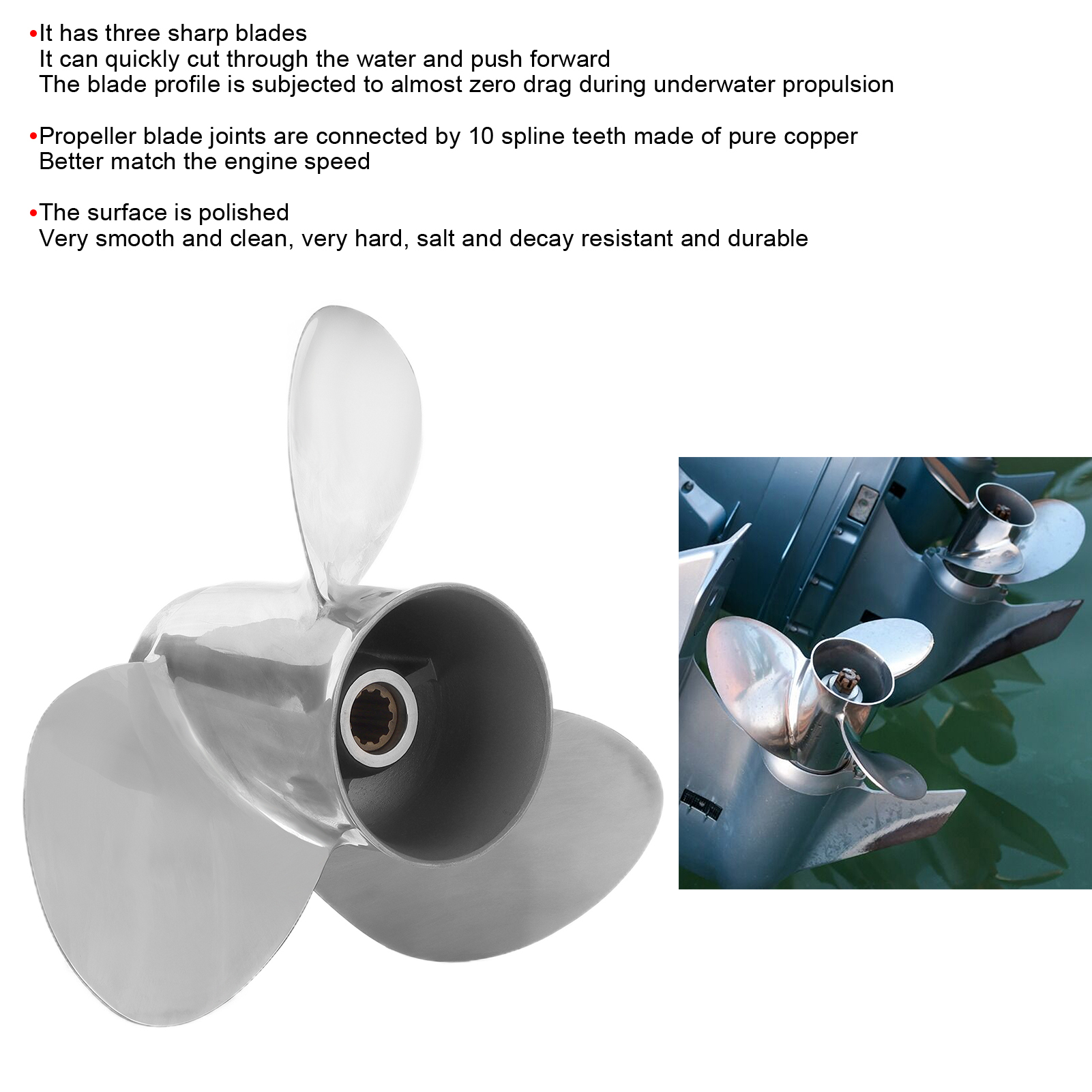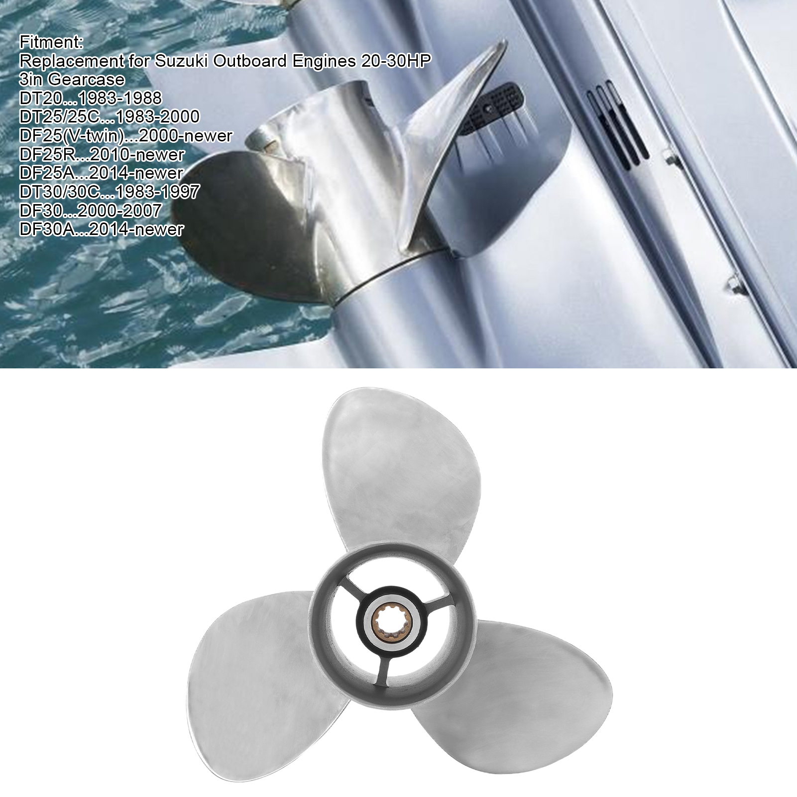 10 1/4x12in Boat Outboard Propeller 3 Blades 10T RH Stainless Steel Replacement for Suzuki Engines 20‑30HP