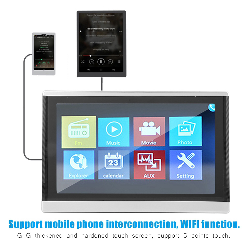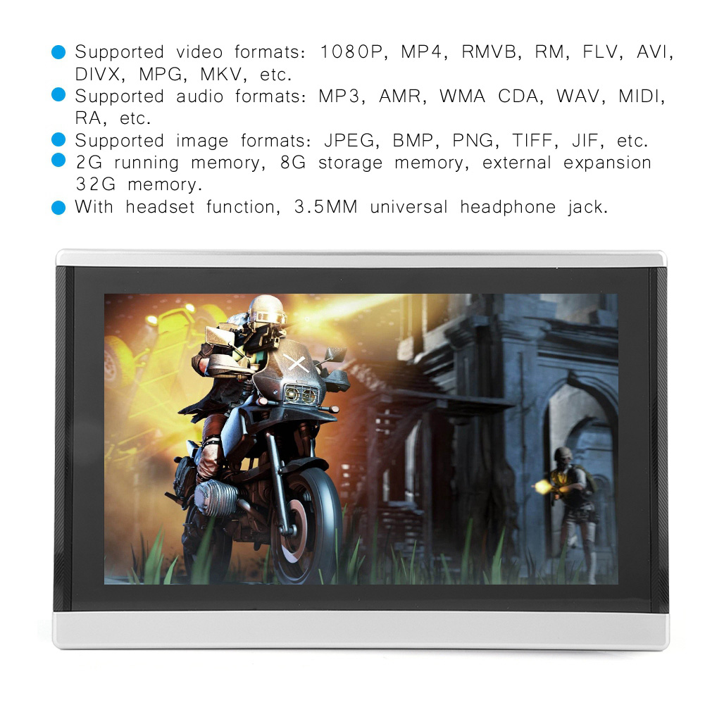 1、10.1 inch HD IPS display, full angle, high brightness, 1366*768*RGB resolution. 2、2G running memory, 8G storage memory, external expansion 32G memory. 3、Support DVD, USB / TF card, built-in speaker, FM, headphones, HDMI output and other functions. 4、G+G thickened and hardened touch screen, support 5 points touch. 5、Support mobile phone interconnection, stereo BT, WIFI function.