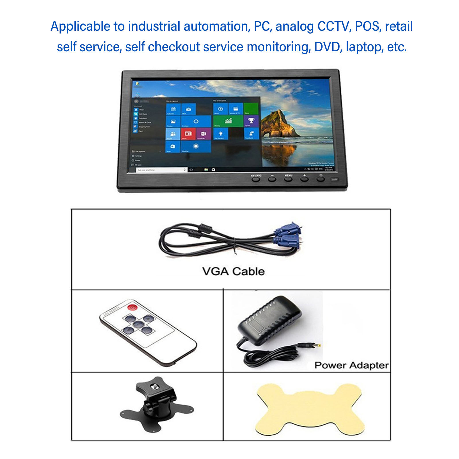 10.1 Inch Monitor Portable 1024X600 Resolution HD IPS Display Remote Control Built in Speaker USB Monitor for PC CCTV POS System AU Plug