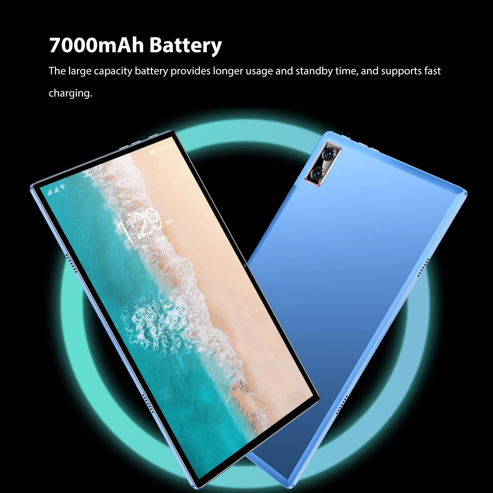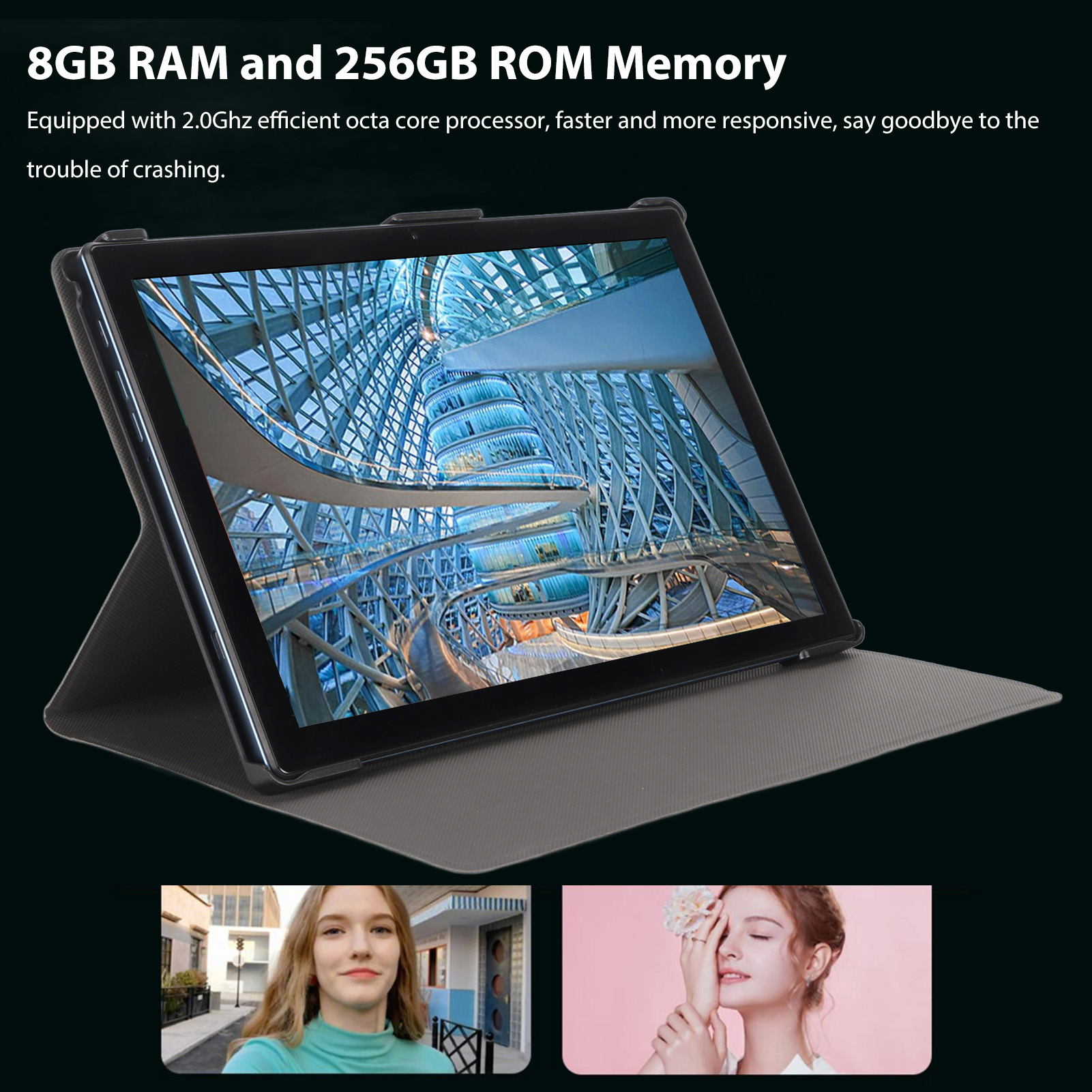 1、High Performance: The 8 core tablet is equipped with 2.0Ghz processor with 8GB internal running memory and 256GB ROM, faster running, no delay and lag. The memory can be expanded to 128GB using a Micro Storage Card. 2、5G WIFI: The 10.1 inch smart tablet supports for Android 12.0 system, support 5G WIFI. Whether you are at home, at work or traveling, you can use the tablet for smoothly and stable internet access. 3、FHD+ Screen: The 10.1 inch tablet has full high definition screen. You can easily enjoy reading electronic books and watching videos on the tablet. The night reading mode can effectively reduce the damage to your eyes, which is more suitable for students and the aged. 4、Dual Speakers: The 10.1 inch tablet has clear dual speakers. When listening to music or watching videos, the top of the smart tablet also emits sound, creating a stereo feel so that you will have a more immersive and better experience. 5、Large Capcaity Battery: The tablet has a large 7000mAh battery that provides more use and standby time. The USB C charging port and support for fast charging solve most of the charging problems associated with older micro usb charging ports and charges faster than ever. 6、Protective Case: The tablet has working mode, with a support case, can be flexibly turned into a laptop or phone, making it a suitable gift for family, students and business people.