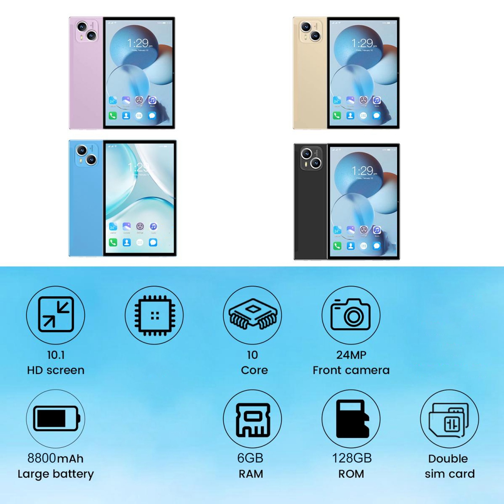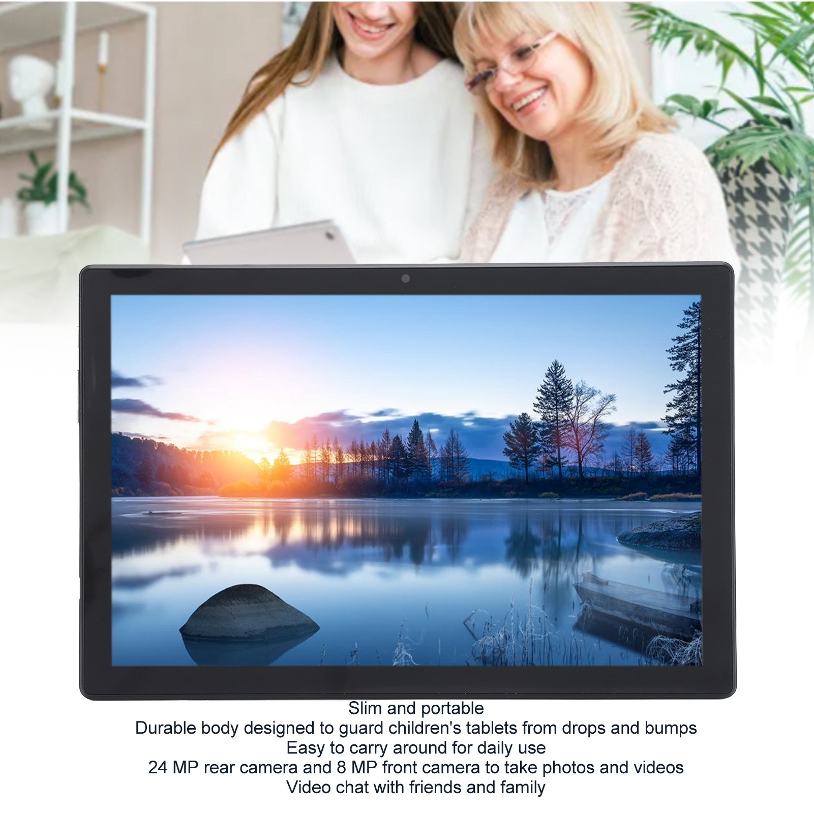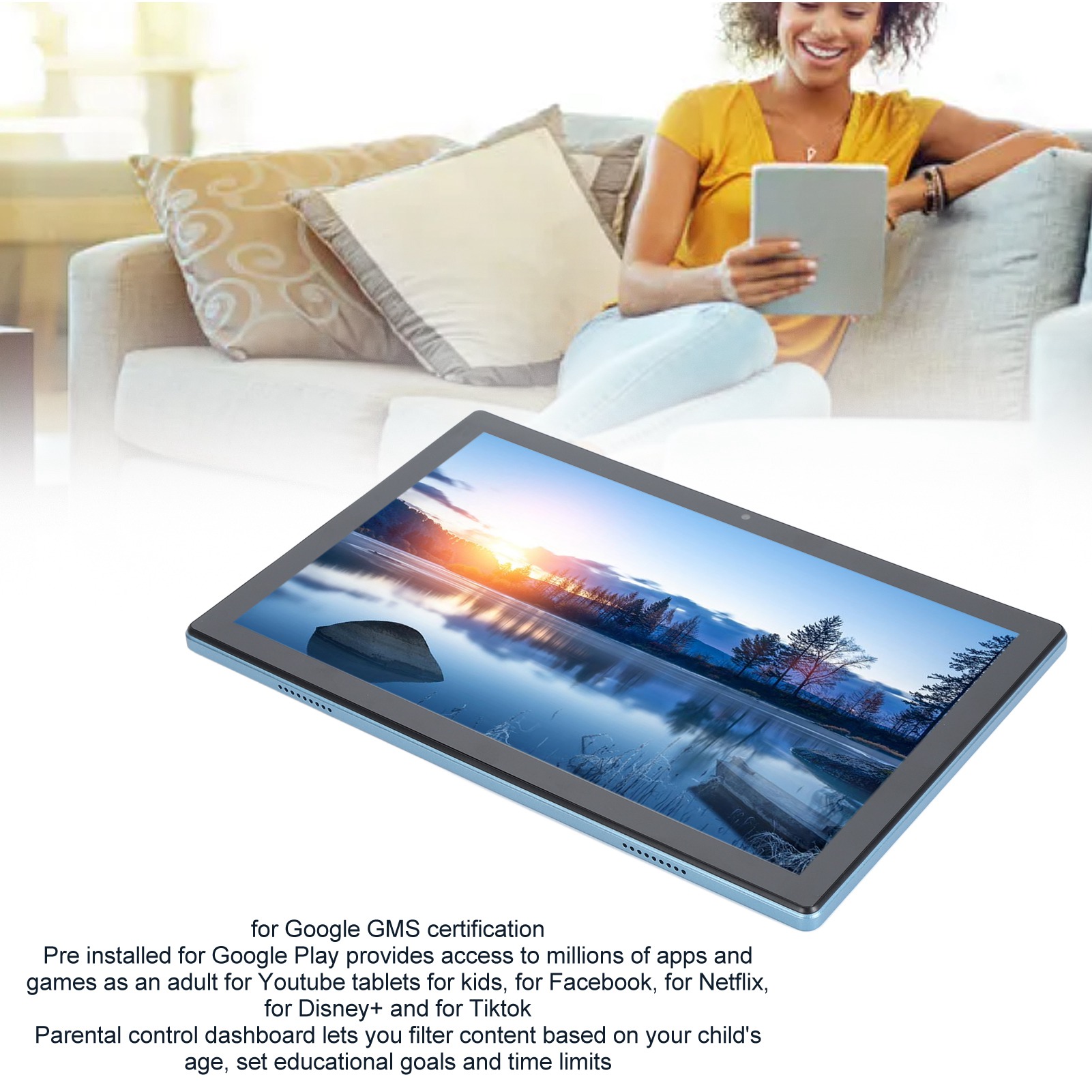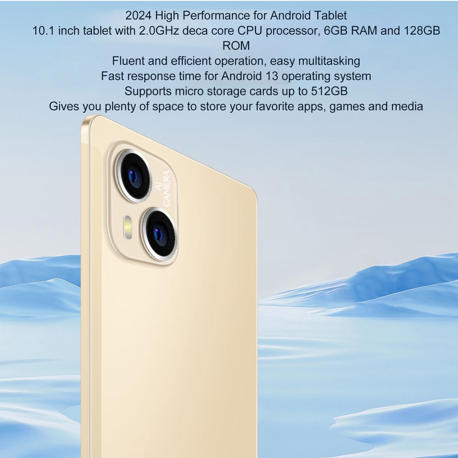 1、HIGH PERFORMANCE TABLET: The 10.1 inch tablet features a 2.0GHz deca core CPU processor, 6GB of RAM and 128GB of ROM for fluent and efficient operation and easy multitasking. The latest for Android 13 operating system is responsive and supports up to 512GB storage card, giving you plenty of space to store your favorite apps, games and media. 2、FOR GOOGLE GMS CERTIFIED: Preinstalled for Google Play provides access to millions of apps and games as an adult for Youtube tablets for kids, for Facebook, for Netflix and for Tiktok, and the parental controls dashboard lets you filter content according to your child's age content, set educational goals and time limits. 3、10.1 INCH HD IPS DISPLAY: for Android Tablet features a premium 10.1 inch 2560x1900 IPS display with vibrant colors, crisp images, comfortable 16:10 screen ratio, 178 degree wide viewing angle, high resolution images and perfect vision for the best viewing experience. Five point capacitive touch G+G touchscreen ensures fast and accurate touch response. 4、LONG BATTERY LIFE: The for Android tablet comes with an 8800mAh battery that delivers up to 8 hours of video playback and 10 hours of web browsing, ensuring that it's perfect for long trips and commutes.The Type C charging port supports fast charging, so you can quickly get back to using the tablet when you need to read, watch a movie, play a game, music, study, or work. 5、SLIM AND PORTABLE: The 10.1 inch tablet is designed with a durable body that greatly guards children's tablets from drops and bumps, ensuring that you can easily carry it with you for daily use. 24MP Rear Camera and 8MP front camera to take photos and videos for video chatting with friends and family.
