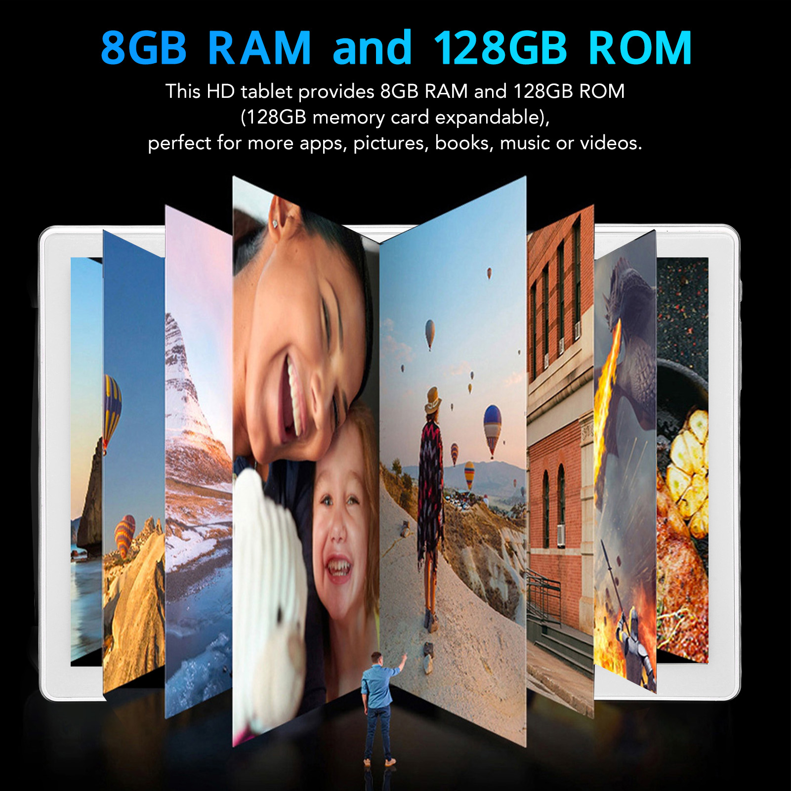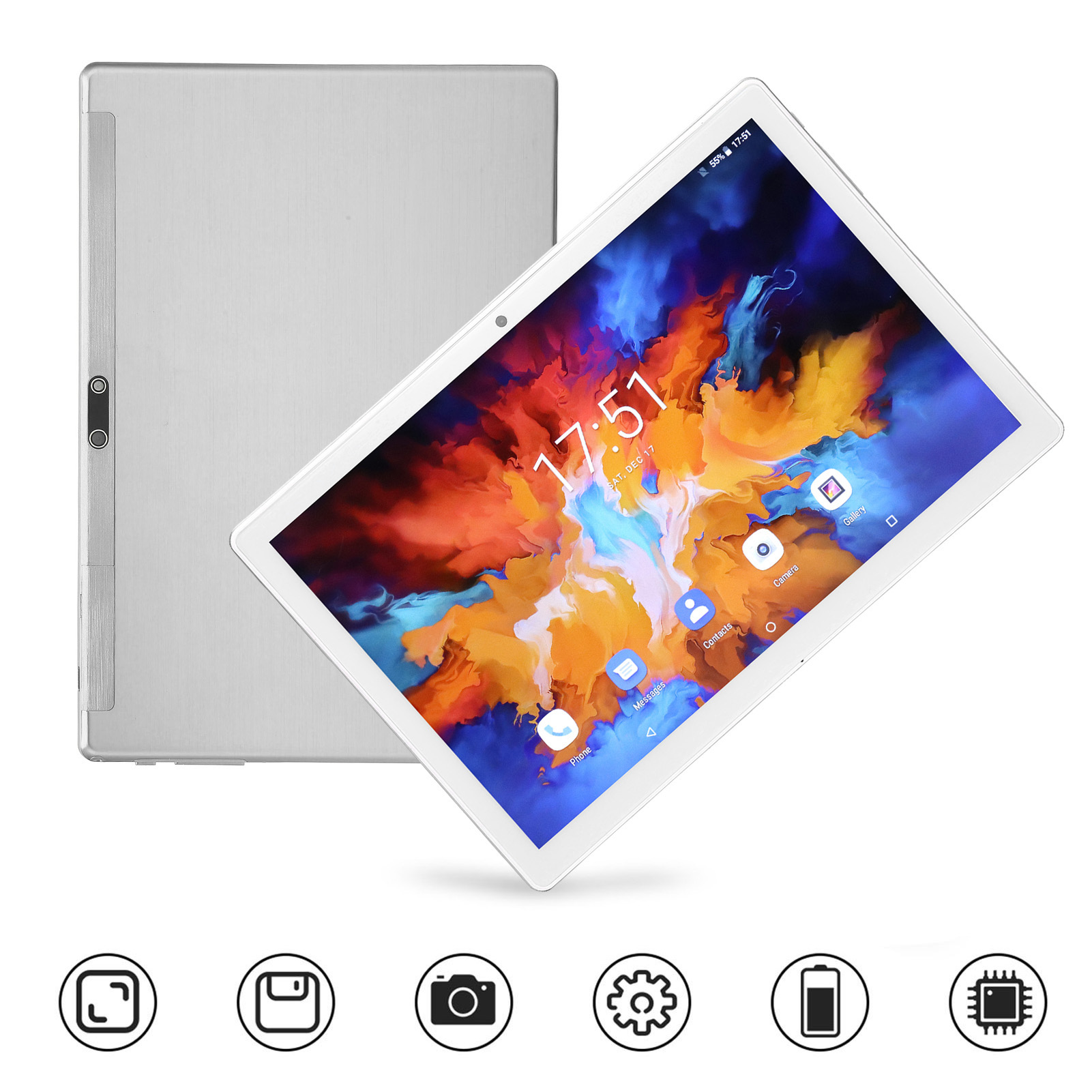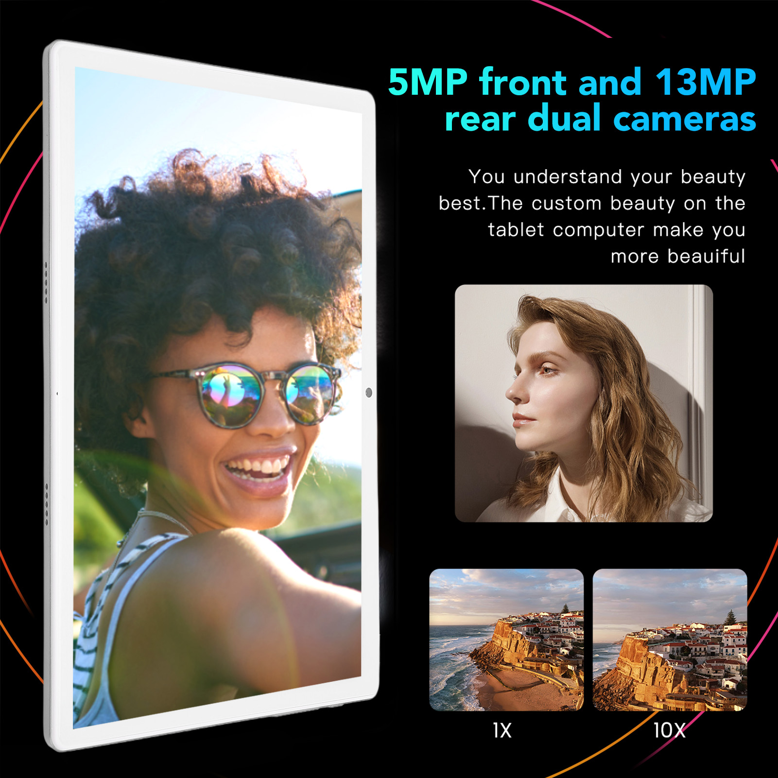1、10.1 Inch FHD Display: This office tablet adopts 10.1 inch FHD display with dual speaker and the resolution of 1920x1200. Night reading mode reduces damage to your eyes. 2、Quad Core CPU: This 10.1 inch tablet adopts Quad Core CPU, which ensures amazing performance in reading, watching TV shows, surfing the web, playing light games and more. 3、8GB RAM 128GB ROM: This HD tablet provides 8GB RAM and 128GB ROM(128GB memory card expandable), perfect for more apps, pictures, books, music or videos. 4、Stable Signal: This gaming tablet has inbuilt dual band WiFi chip to make sure stable wireless signal, allowing you to enjoy faster file download, data transfer and video viewing. 5、Dual Camera: This business tablet is designed with 5MP front camera and 13MP rear camera, perfect for shooting and video recording. 6000mAh battery supports up to 10 hours movie watching, online reading and sufing, etc.