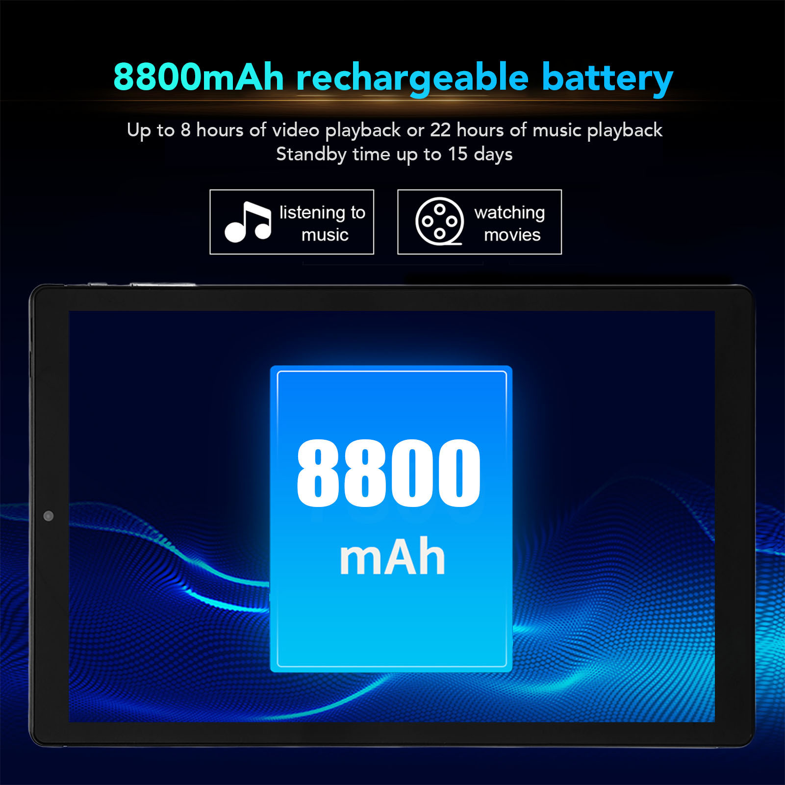 1、FOR ANDROID 12: 10.1 inch tablet comes with the latest for Android 12, which is simpler to operate and runs smoother, while better protecting your privacy. From for Play Store, you can download any apps you need. And with Bluetooth 5.0 and GPS support, it's perfect for long commutes and travel. With built in GPS, it also supports offline GPS navigation for outdoor activities. 2、HIGH PERFORMANCE CPU: For Android tablet features a powerful deca core processor, 6GB of operating memory and 128GB of storage content for faster app publishing and smoother video playback, so you can enjoy a better overall performance experience. 3、HIGH RESOLUTION INCELL DISPLAY: 10.1 inch tablet features a vivid Full HD 1960x1080 Full HD touchscreen paired with a Bluetooth headset with superb sound quality for watching online videos, reading, playing games, video chatting and surfing the web. 4、DUAL SPEAKERS AND 8800mAh BATTERY: Dual box speakers bring you rich instrumental harmonies, clear vocals and finely balanced sound. Built in Bluetooth, GPS, FM, Gravity Sensor and more.8800mAh Tablet delivers outstandingly long battery life. It will accompany you on exciting game nights or demanding presentation days like a trusted friend. 5、FOR GOOGLE CERTIFIED: Tablet PC is certified by for Google Mobile Services (GMS), preinstalled with for Google Play, supports popular social apps such as for Facebook, for Twitter, for YouTube, for Tiktok, for Skype, for Instagram, and supports for Microsoft Office software.