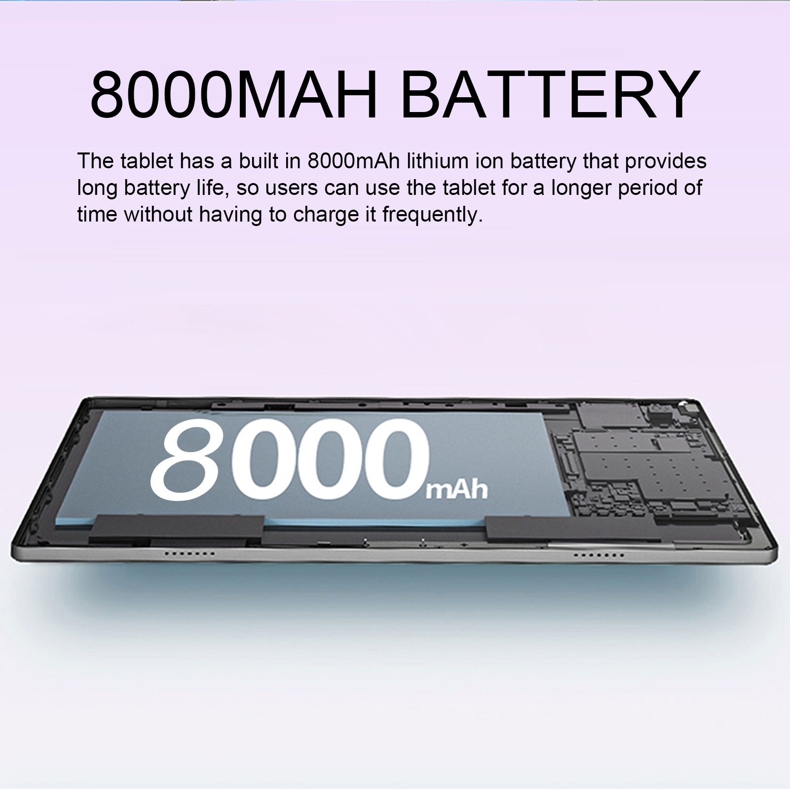 1、2560x1600 RESOLUTION: The Tablet PC is equipped with a 10.1 inch HD screen with a resolution of 2560x1600, providing a clear and detailed image display. 2、16GB RAM 1TB ROM: The Tablet PC has 16GB RAM 1TB ROM, providing more powerful operation and storage capacity, users can easily store and access a large number of files and multimedia content. 3、SUPPORTS MULTITASKING: The tablet is powered by for MTK6762 chip with for Android 13 system, which provides higher computing power and smoother operation experience to support multitasking and high performance application running. 4、MULTI NETWORK SYSTEM: The tablet supports multiple network standards, including GSM, WCDMA, TD SDMA, FDD LTE and TDD LTE, users are free to choose different carriers and networks for stable data connection and high speed network access. 5、8000MAH BATTERY: The tablet has a built in 8000mAh lithium ion battery that provides long battery life, so users can use the tablet for a longer period of time without having to charge it frequently.