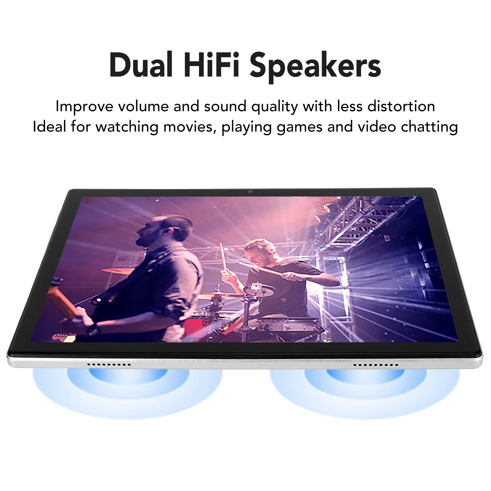 1、Keyboard and Case: This office tablet comes with BT keyboard and protective case, you can flexibly turn the tablet into a laptop, mobile phone. ideal for family, students, business people, writers. 2、10.1 Inch FHD Screen: This HD tablet adopts 10.1 inch FHD screen with the resolution of 1960x1080. Night reading mode effectively reduces damage to the eyes, more suitable for students and the elderly. 3、Octa Core CPU: This gaming tablet with Octa Core CPU adopts 8GB RAM and 256GB ROM(128GB memory card expandable). You can enjoy surfing internet, reading books and watching videos. 4、Dual Camera: This tablet PC is designed with 8MP front camera and 16MP rear camera. 2.4/5G WiFi and 4G LTE are supported. Adopt for Android 12 system, compatible with most Apps. 5、7000mAh Battery: This business tablet is equipped with 7000mAh battery, USB C charging interface. Support Dual SIM Dual Standby,