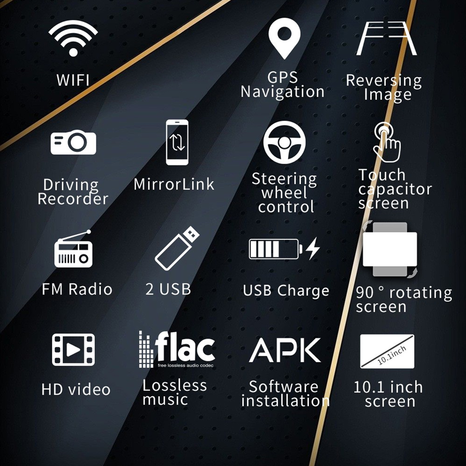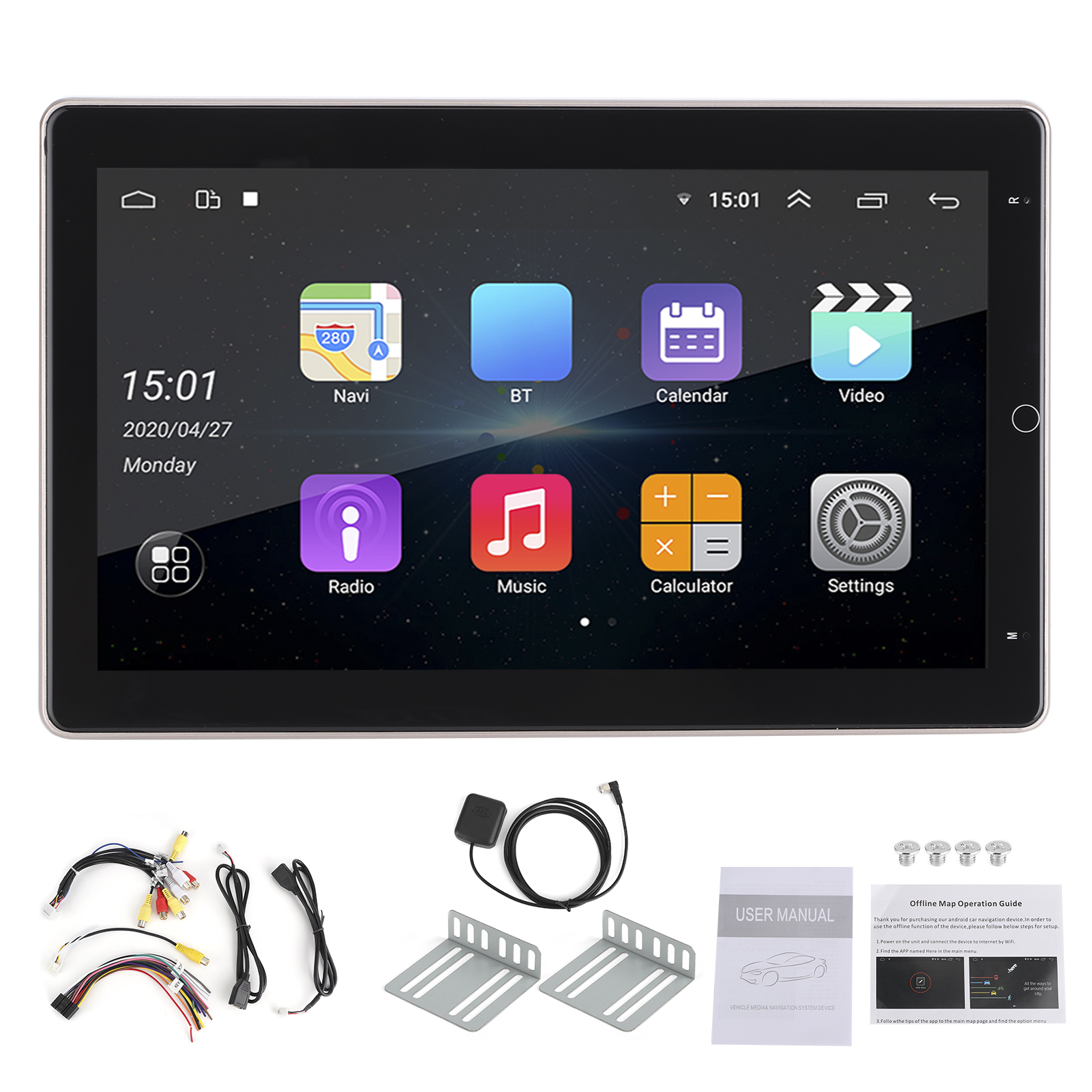 1、Quad‑core A7 processor, 1G running memory + 16G large‑capacity built‑in memory, running smoothly without stalling. 2、Support for iOS/Android mobile phone interconnection, more convenient to use. Multi‑language settings, support most national languages. 3、With GPS, support offline maps, and provide reliable navigation services even in places with poor network. 4、The large 10.1in IPS screen can be rotated 90°, and the display resolution is 1024x600. 5、The installation is simple, first disassemble the original car panel, connect the GPS antenna and fix the GPS module, connect the power cord and other wiring harnesses, and then fix the host.