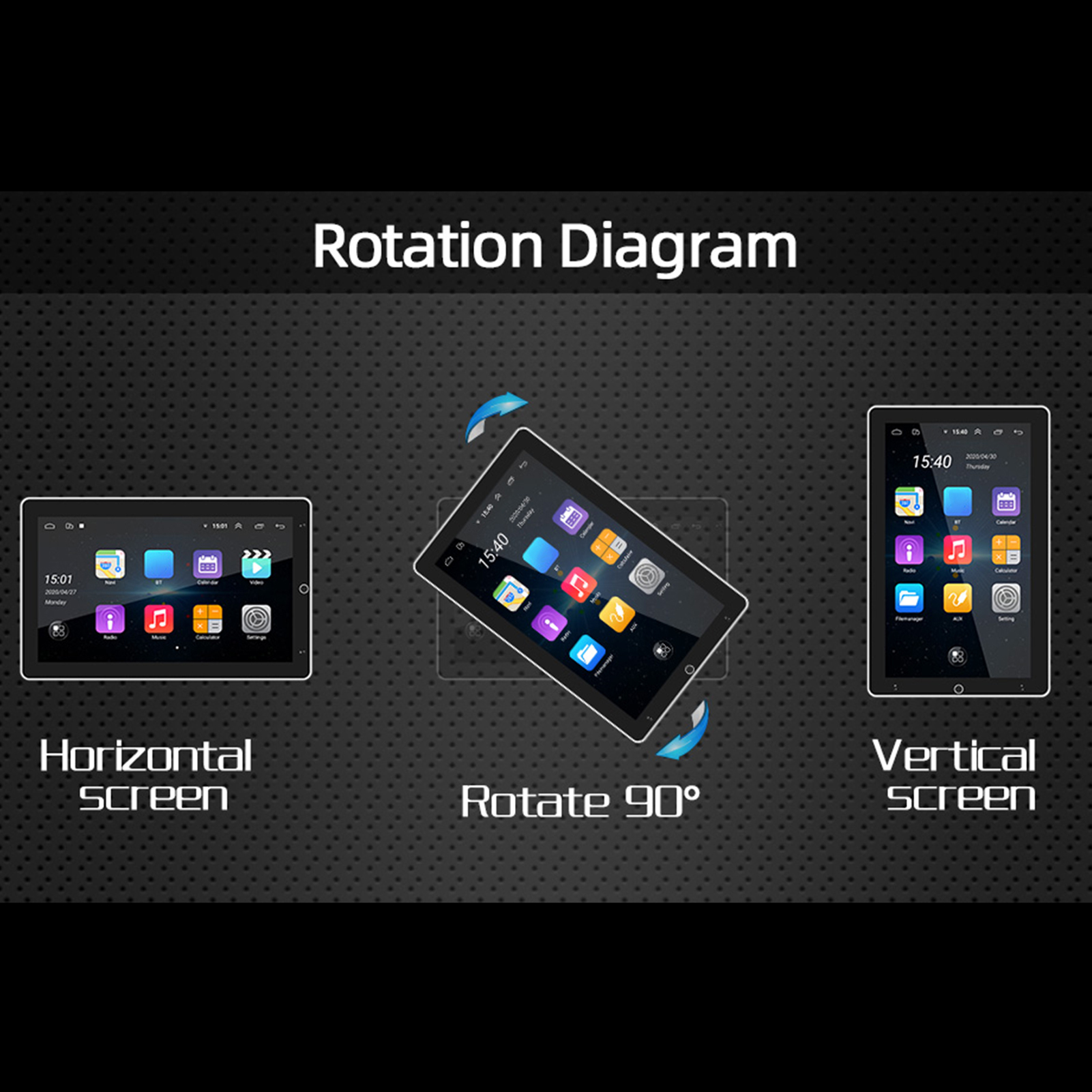 Screen Size: 10.1 inch (IPS) can be rotated 90°