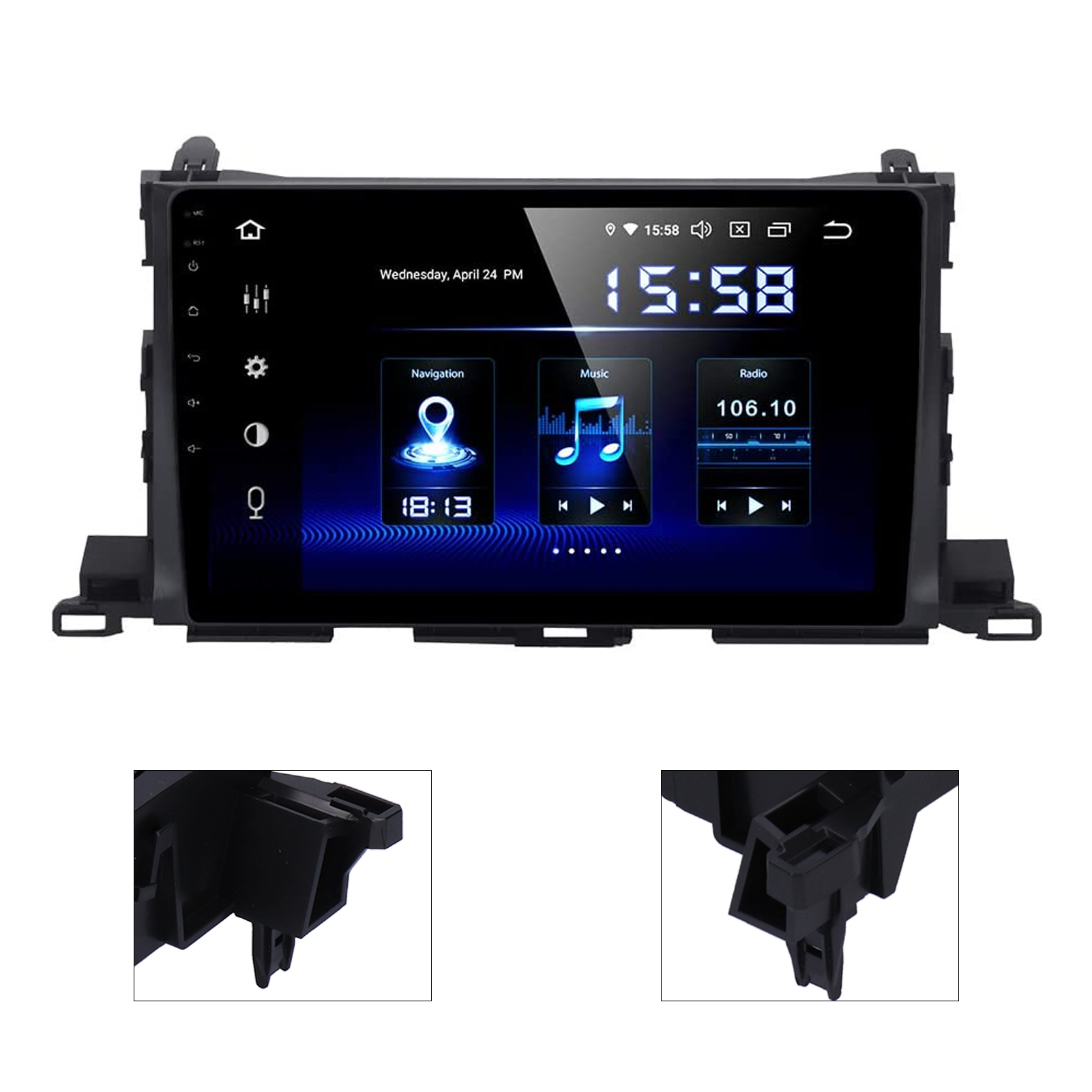 1、For Android 10.0 operating system, you can connect to WIFI to install the applications, for Skype, for Facebook, for YouTube, for Twitter and so on. 2、The large 10.1‑inch HD full touch screen with a resolution of 1024 x 600 can meet the needs of audio and video, you can control as you like. 3、Come with built‑in bluetooth 4.0, support phone book and original car steering wheel buttons, to get hands‑free and safe driving. 4、According to the original factory specifications, the car multimedia player can perfectly fit for highlander 2015‑2019. 5、Support JPEG, GIF, PNG, BMP picture formats, MP3, WMA and other audio formats, and AVI, MP4 and other video formats.