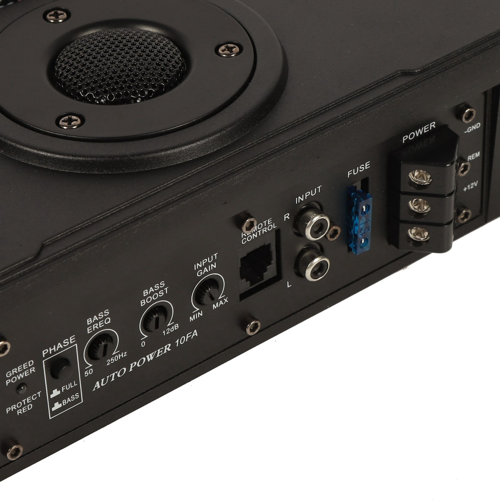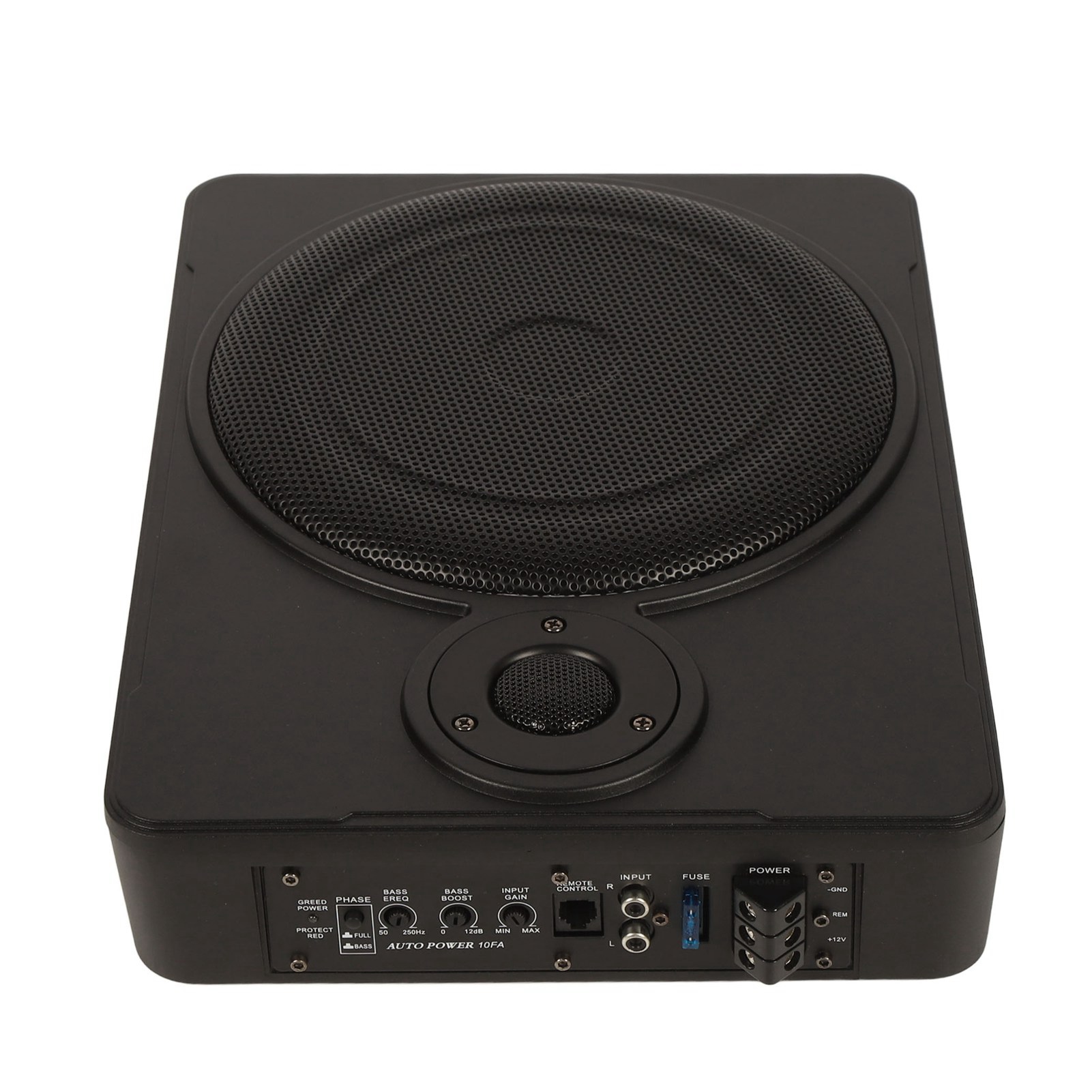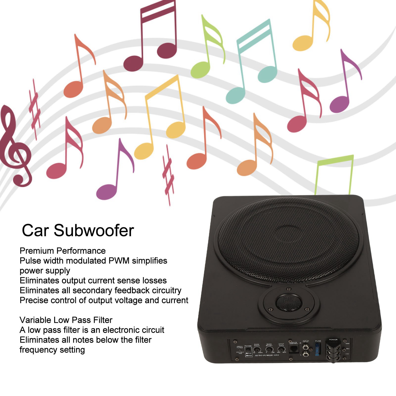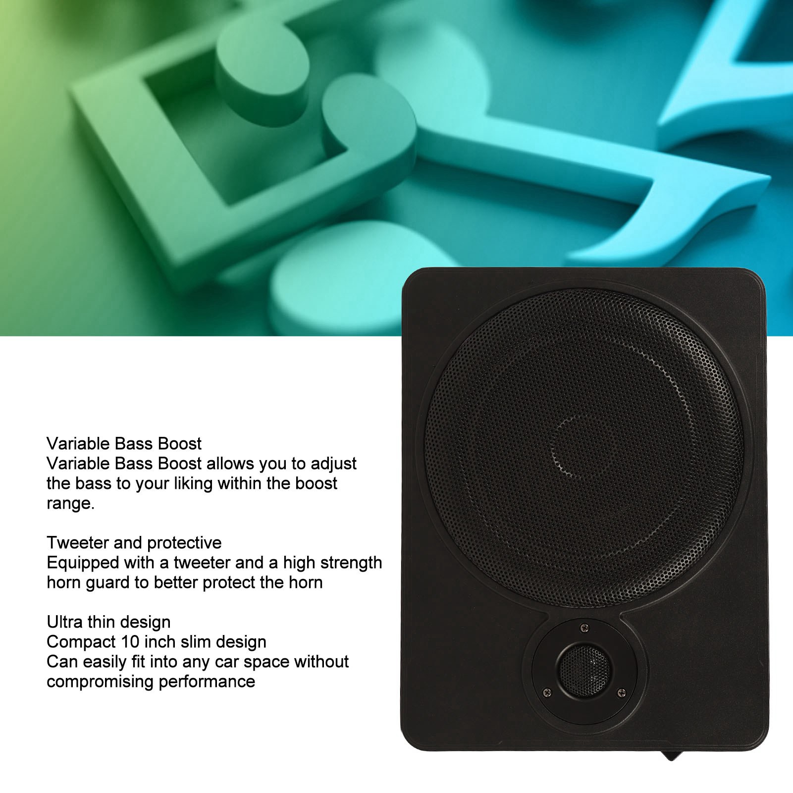 1、SUPERIOR PERFORMANCE: Pulse width modulation PWM simplifies the power supply. Not only does it eliminate output current sensing losses, but it also eliminates all secondary feedback circuits, precisely controlling output voltage and current. 2、VARIABLE LOW PASS FILTER: The 600W powered car subwoofer's low pass filter is an electronic circuit that eliminates all notes below the filter frequency setting. 3、VARIABLE BASS BOOST: The car subwoofer's variable bass boost allows you to adjust the bass to your liking within the boost range. 4、TWEETER AND PROTECTIVE COVER: The 600W powered car subwoofer is equipped with a tweeter, and a high strength horn shield to better guard the speakers. 5、SLIM DESIGN: The 600W powered car subwoofer features a compact 10 inch slim design that can easily fit into any car space without compromising performance.