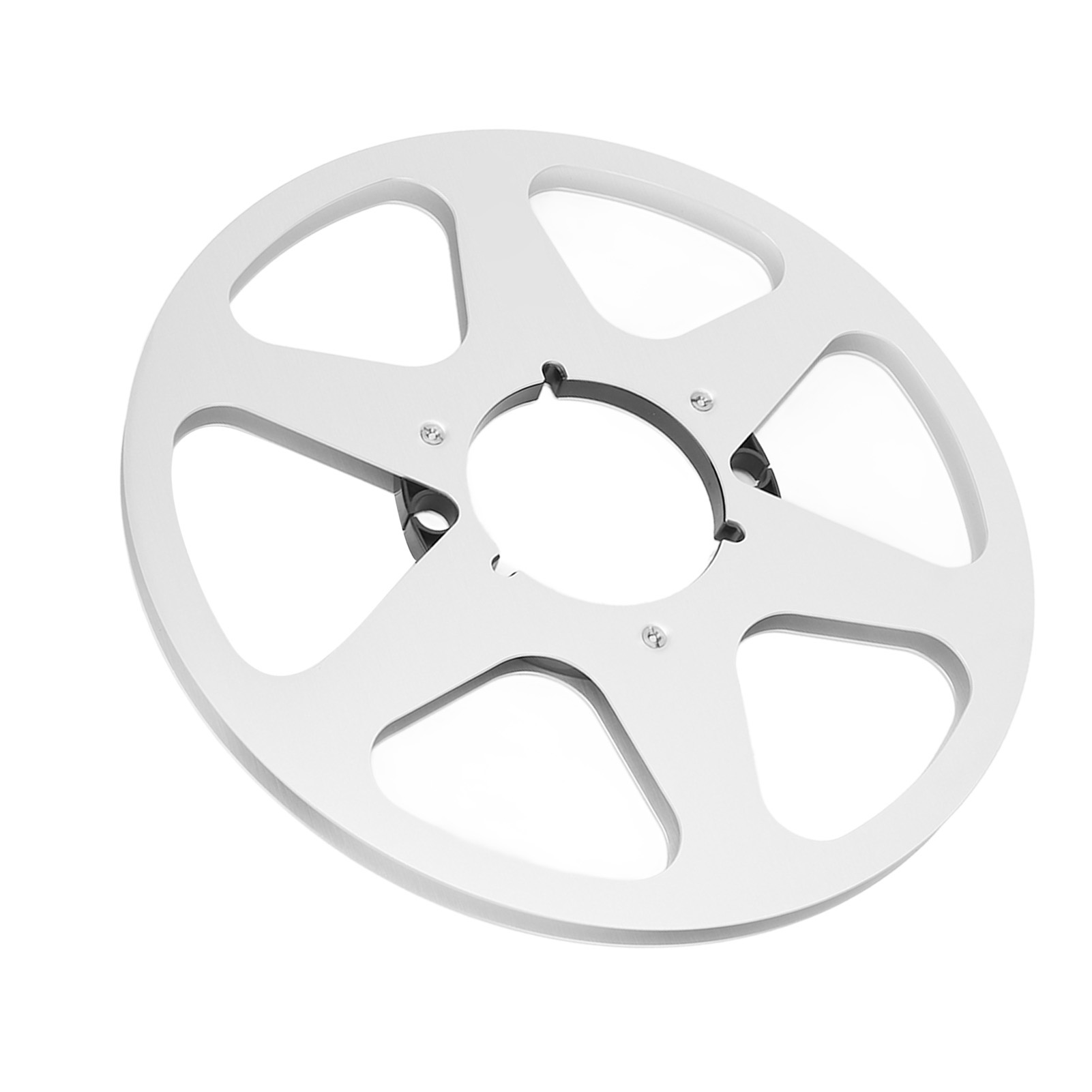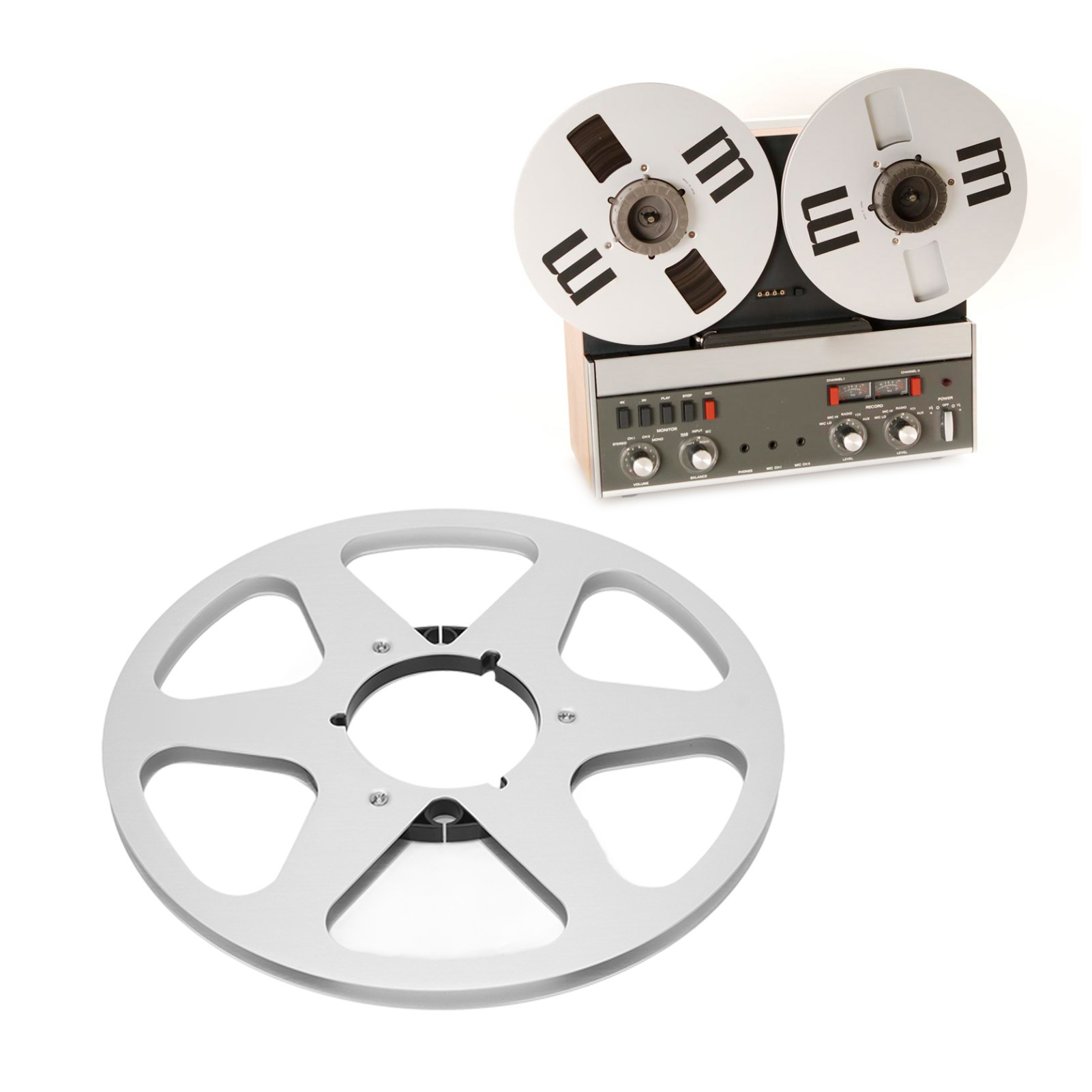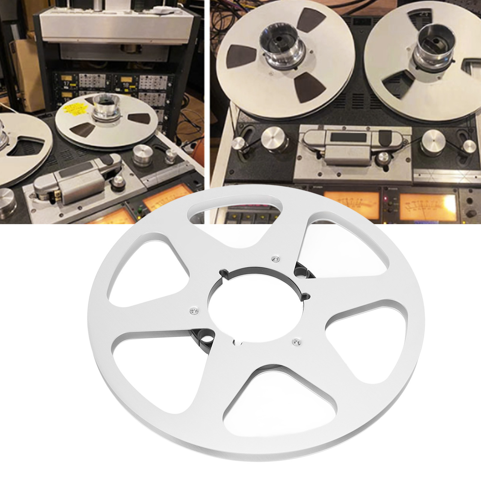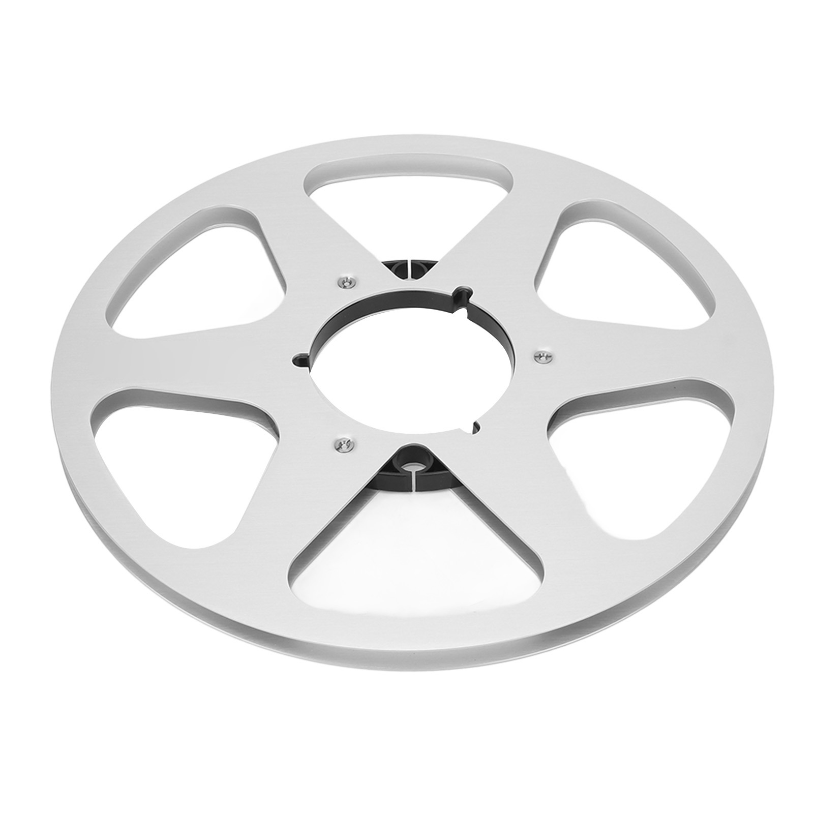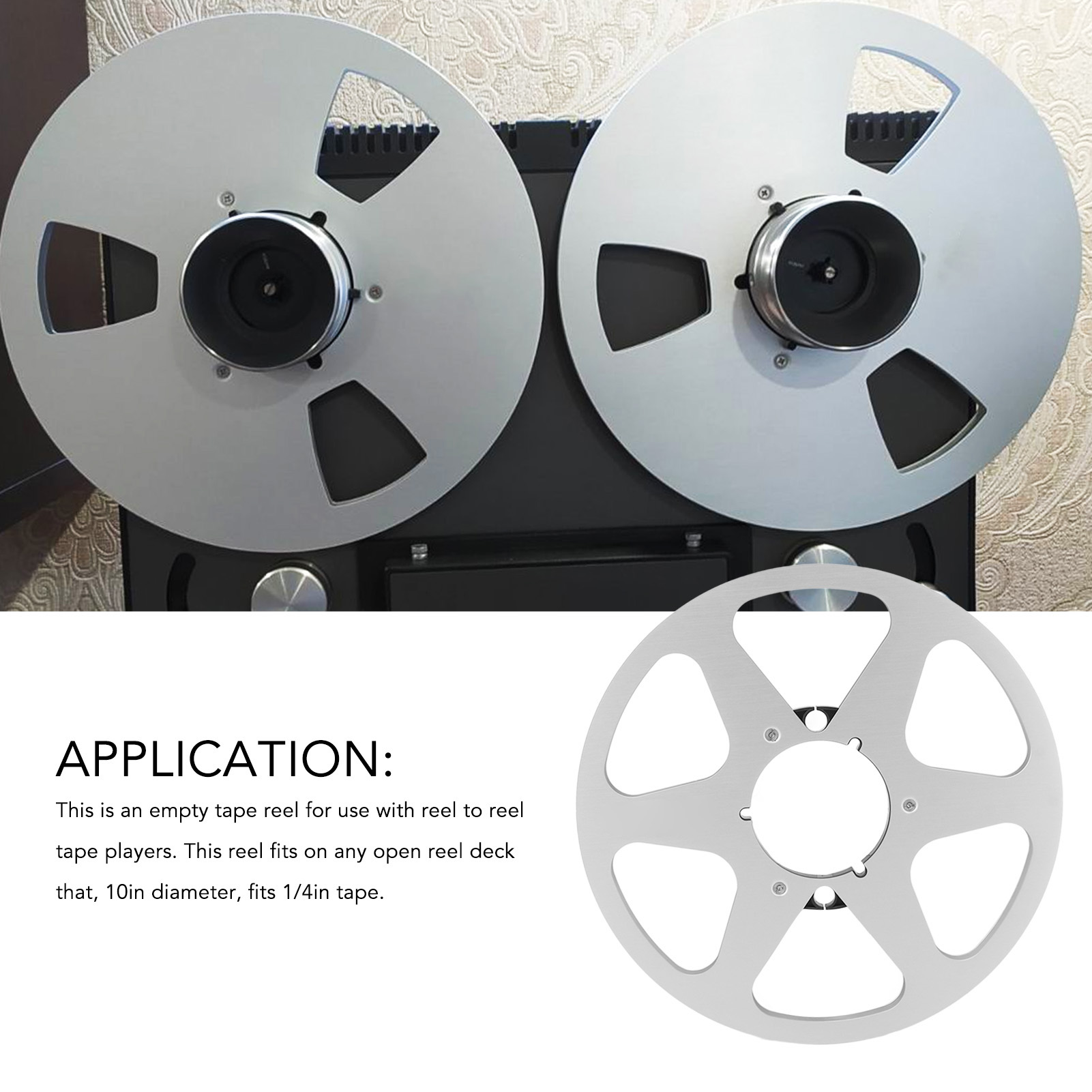 1、Application: This is an empty tape reel for use with reel to reel tape players. This reel fits on any open reel deck that, 10in diameter, fits 1/4in tape. 2、High Performance: Aluminum NAB flange with classic design 6 hole wind resistance holes for flex resistance and added strength. 3、Quality Tape: Fix your tape recorder or replace it with a brand new reel that provides you with great sound quality in Recording, erasing, re recording, etc. 4、Aluminum Alloy: This replacement takeup reel is made of high grade aluminum alloy for high strength, corrosion resistance and stable performance. 5、Note: Even for 10in capacity decks, you will need the deck's NAB hub adapter for any NAB reel.