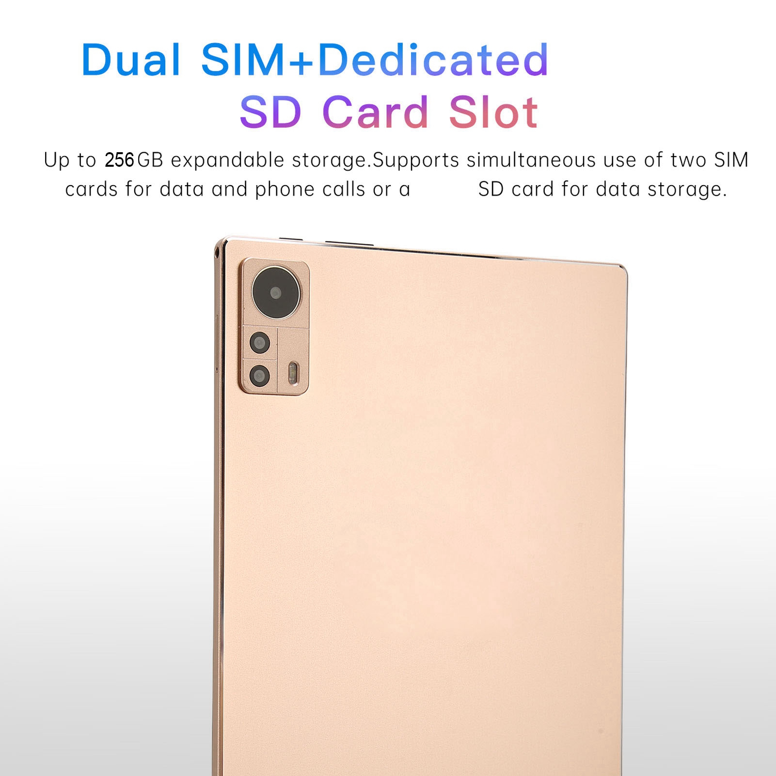 1、8 Core CPU: High performance tablet computer is equipped with 2.0GHz high efficiency octa core processor, built in 6GB of running memory, 256GBROM, faster speed, faster response. With this for Android tablet, there is no trouble of crash, using the Micro storage card to expand 128GB memory. 2、For Android 11: The tablet uses the latest for Android 11.0 system to preserve your intimacy.For Android tablets are easier to set up and simpler when activating. The tablet does not provide any advertisements, and you can get a better experience when using. Using this for Android tablet, you can find many applications you want in the store. 3、Dual Speakers: 10 inch tablets use IPS screen and clear dual speakers. You can easily enjoy reading e books and watching videos on this tablet. The night reading mode can effectively reduce the damage to the eyes, and it is more suitable for students and the elderly to read on this tablet. 4、7000mAh Battery: 10 inch tablet battery life is no longer a problem, the 7000mAh large capacity battery brings more use and standby time. The USB C charging port, and supports fast charging, solves the charging problem brought by most old Micro USB charging ports, and the charging speed is faster than ever. 5、Dual Card Slot: This is a tablet that supports call, supports 4G internet and 5GWIFI, 2G (B3/B5/B8), 3G: B1/B5/B8 4G (B1/B2/B3/B5/B7/B8/ B28/B38/B40/B41), dual card slot (two SIM cards can be installed at the same time and a TF card and a SIM card), TF card supports up to 128G, supports dual card dual standby standby.
