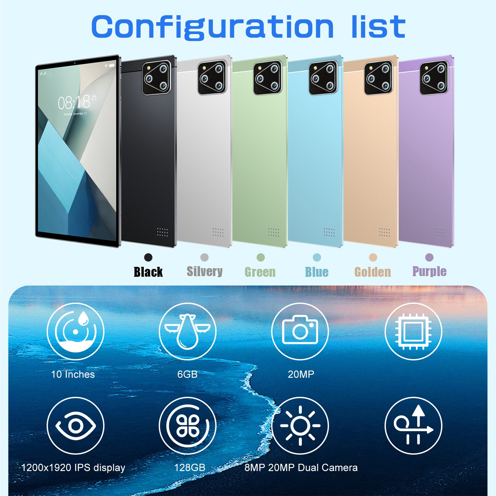 1、Excellent Performance Tablet: Equipped with a 2.0GHz octa core CPU processor, 6GB RAM and 128GB ROM, this 10 inch tablet runs smoothly and efficiently, allowing for easy multitasking. The latest for Android 14 operating system provides fast response speeds and supports card up to 512GB, giving you ample space to store your favorite apps, games, and media. 2、Great View and More Responsive: Featuring a 10 inch 1200x1920 IPS display, this tablet offers vibrant colors, clear images, and a comfortable 16:10 aspect ratio. With a 178 degree wide viewing angle, high resolution images, and perfect visuals, it provides the best viewing experience. The five point capacitive G+G touchscreen ensures quick and accurate touch response. 3、Long Battery Life: With 8000mAh battery, this 10 inch tablet provides up to 8 hours of video playback and 10 hours of web browsing, making it ideal for long trips and commutes. The type C charging port supports fast charging, allowing you to quickly get back to using the tablet for reading, watching movies, gaming, music, learning, and work. 4、Slim and Portable: The 10 inch tablet is designed with a aluminium alloy body, which greatly protects the kids tablet from drops and bumps and ensures that you can easily carry it around with you for daily use. 20MP rear camera and 8MP front camera can take photos and videos for video chatting with friends and family. 5、GMS Certified: Pre installed with basic apps, this tablet allows access to millions of apps and games. The parental control dashboard allows you to filter content based on your kids' age, set educational goals, and time limits.