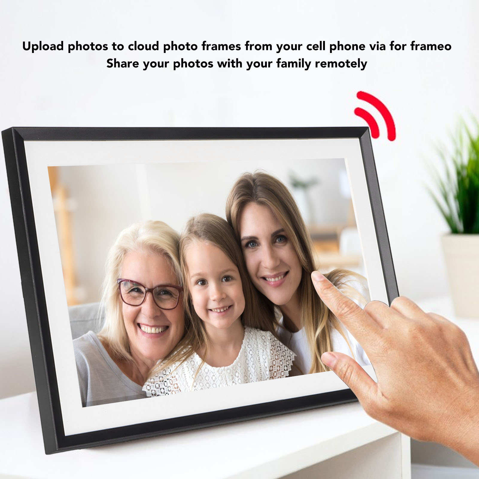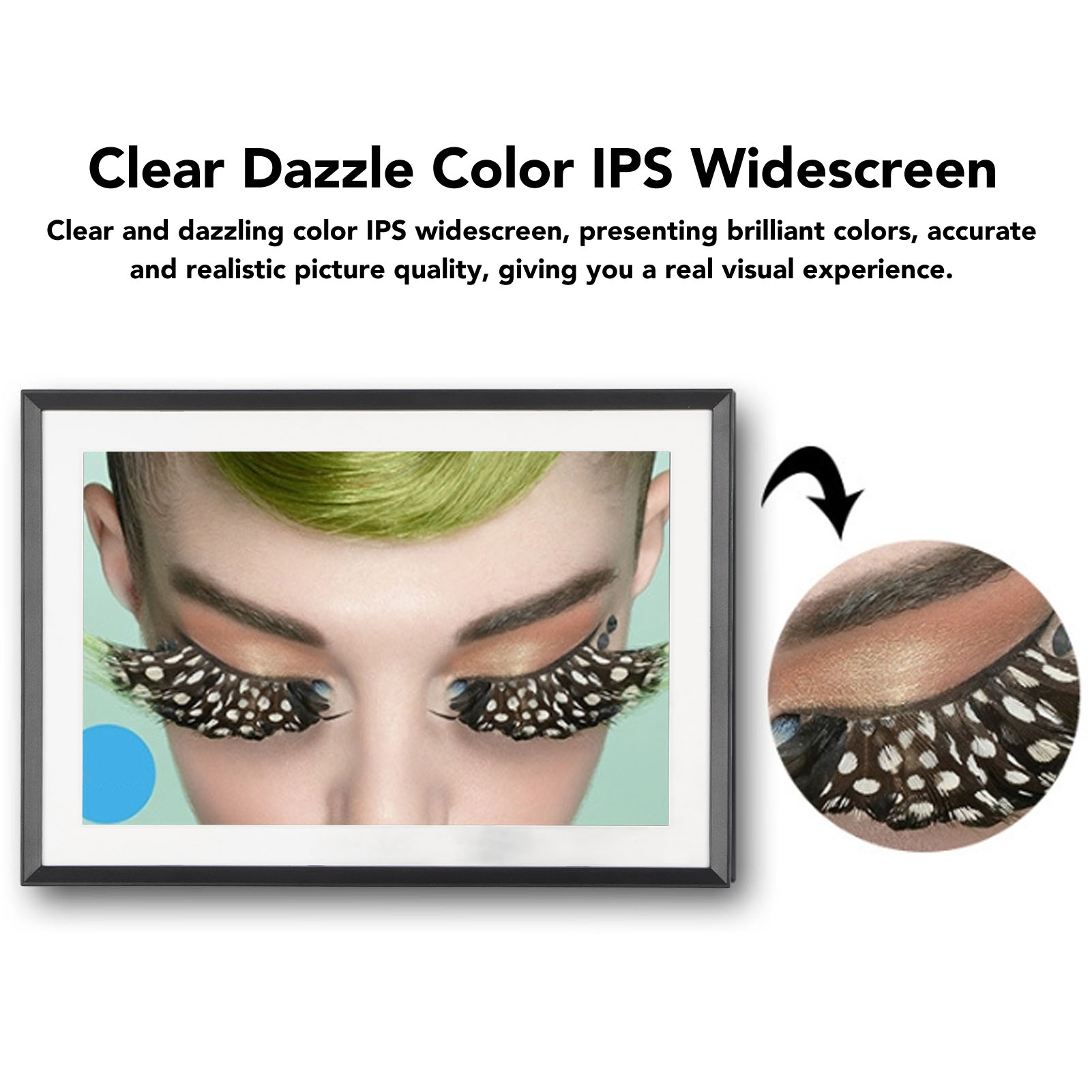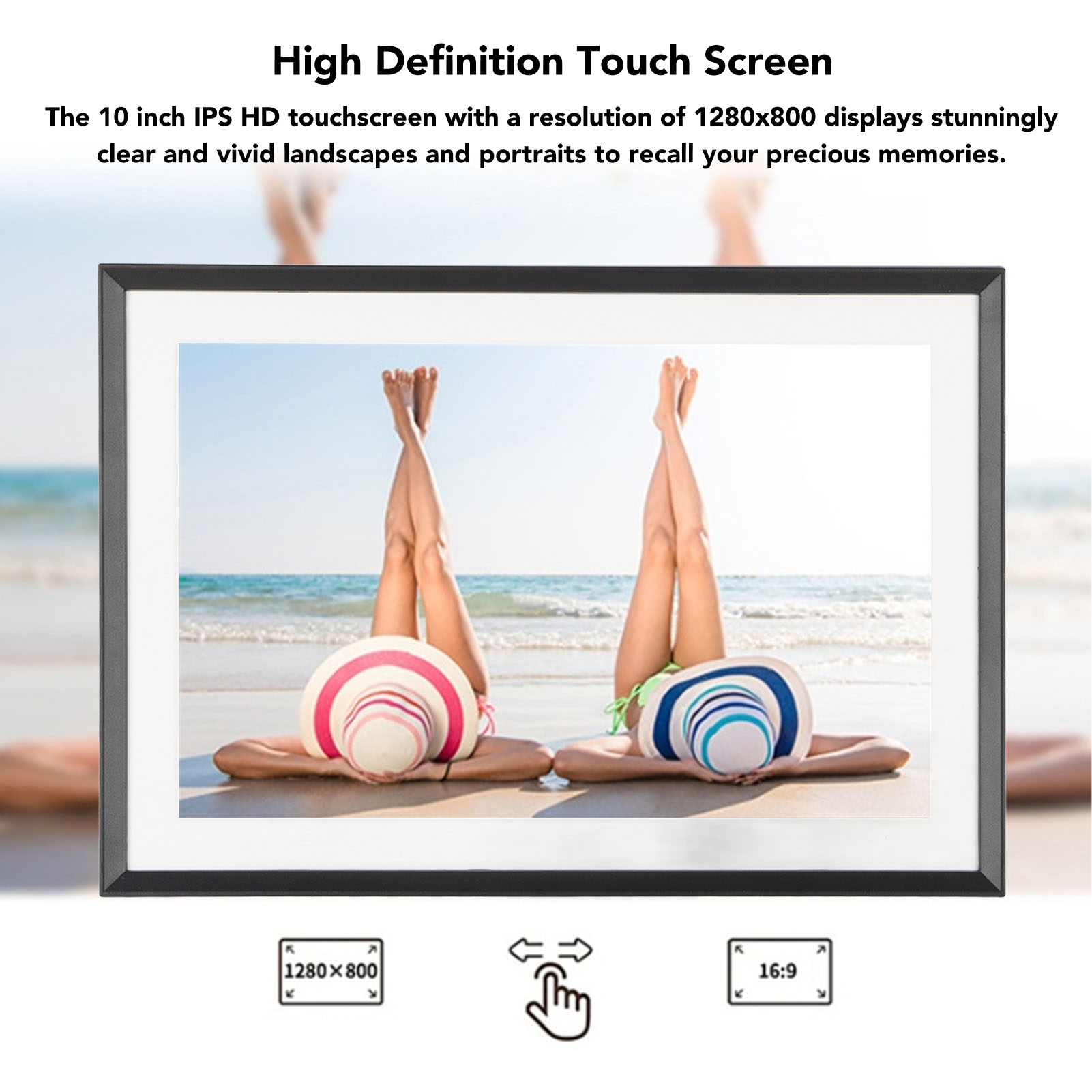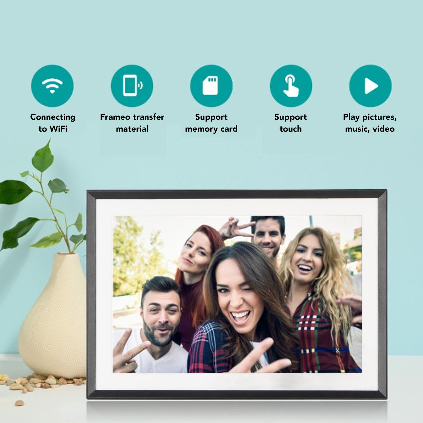 1、APP CONTROL: Smart digital photo frame supports APP remote control, instantly share photos from your phone to digital photo frame via for frameo app. 2、SUPPORT WIFI: Invite unlimited friends and family to share pictures to digital photo frames or send photos to their digital photo frames via WiFi. 3、INSTANT WIRELESS SHARING: for Frameo is a professional photo management application originating from Denmark with users in more than 25 countries around the world. The digital photo frame allows you to upload an unlimited number of photos. 4、MULTIPLE SLOTS: 10 inch WiFi digital picture frame comes with a USB port and storage card slot, providing you with more file storage and management options. 5、HD TOUCHSCREEN: The 10 inch IPS HD touchscreen with 1280x800 resolution displays stunningly clear and vivid landscapes and portraits that recall your precious memories.