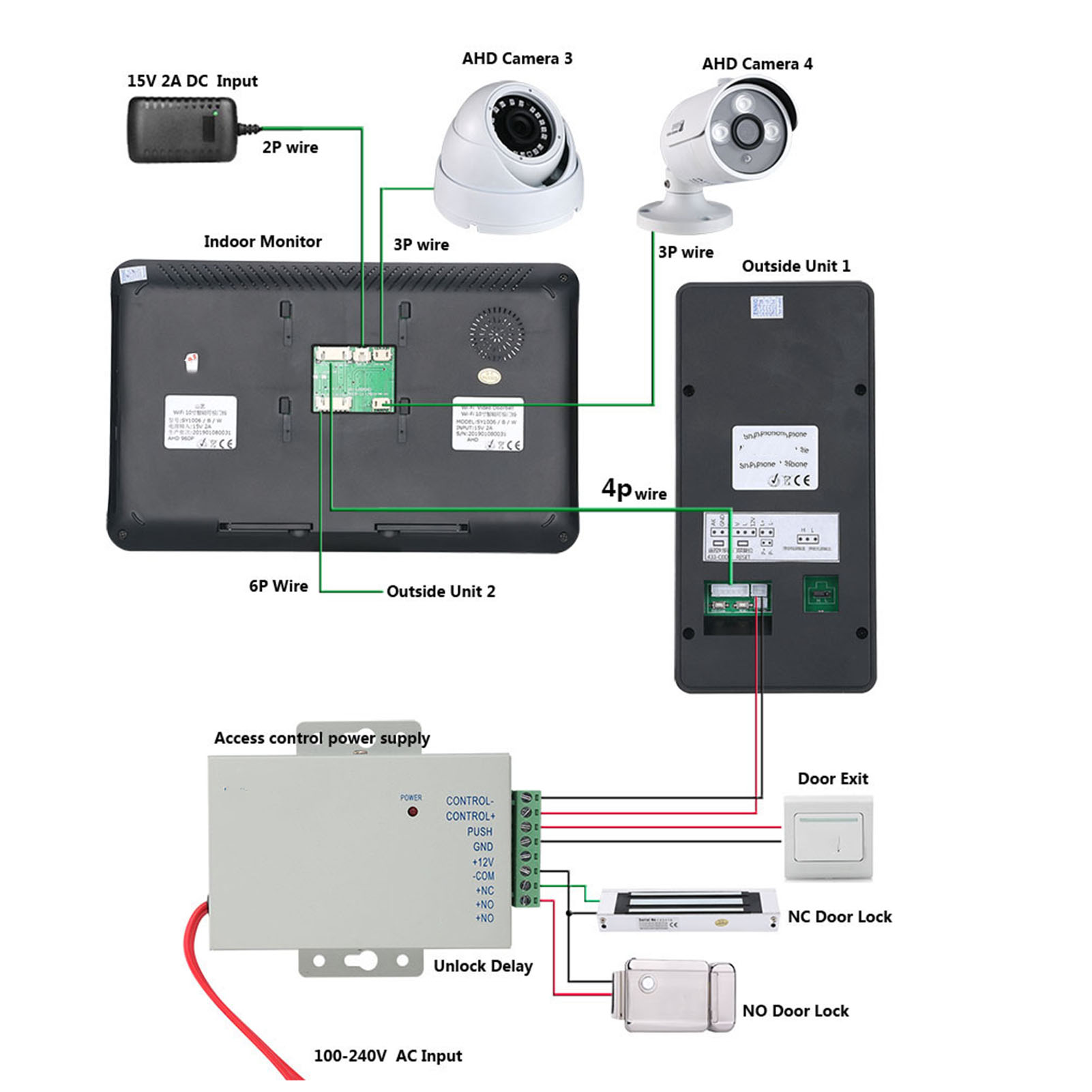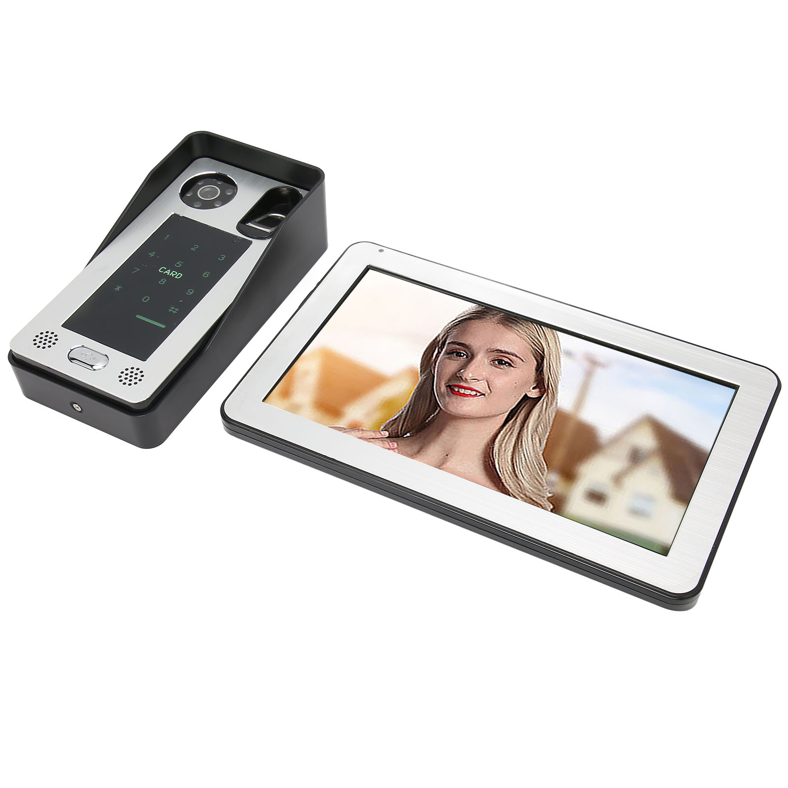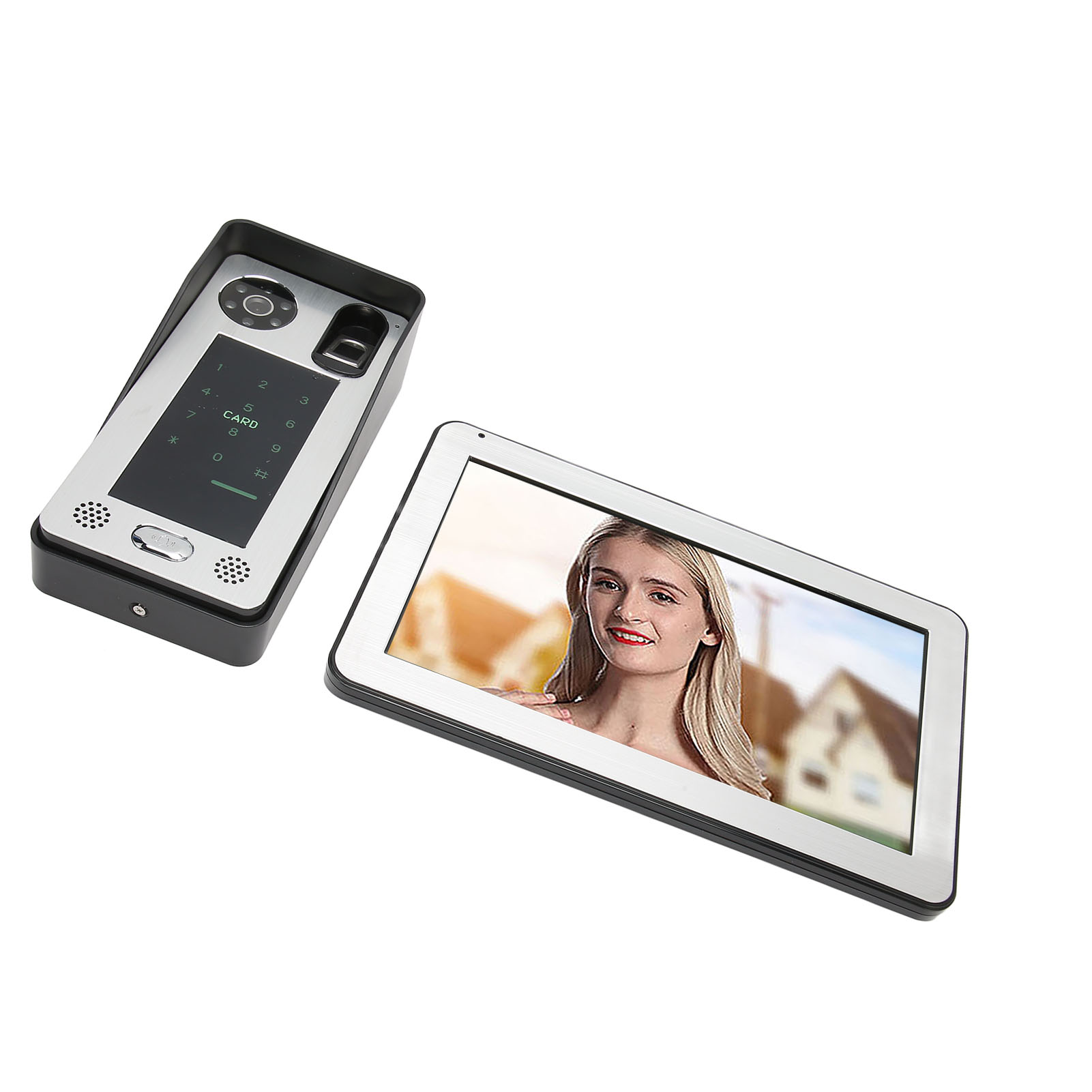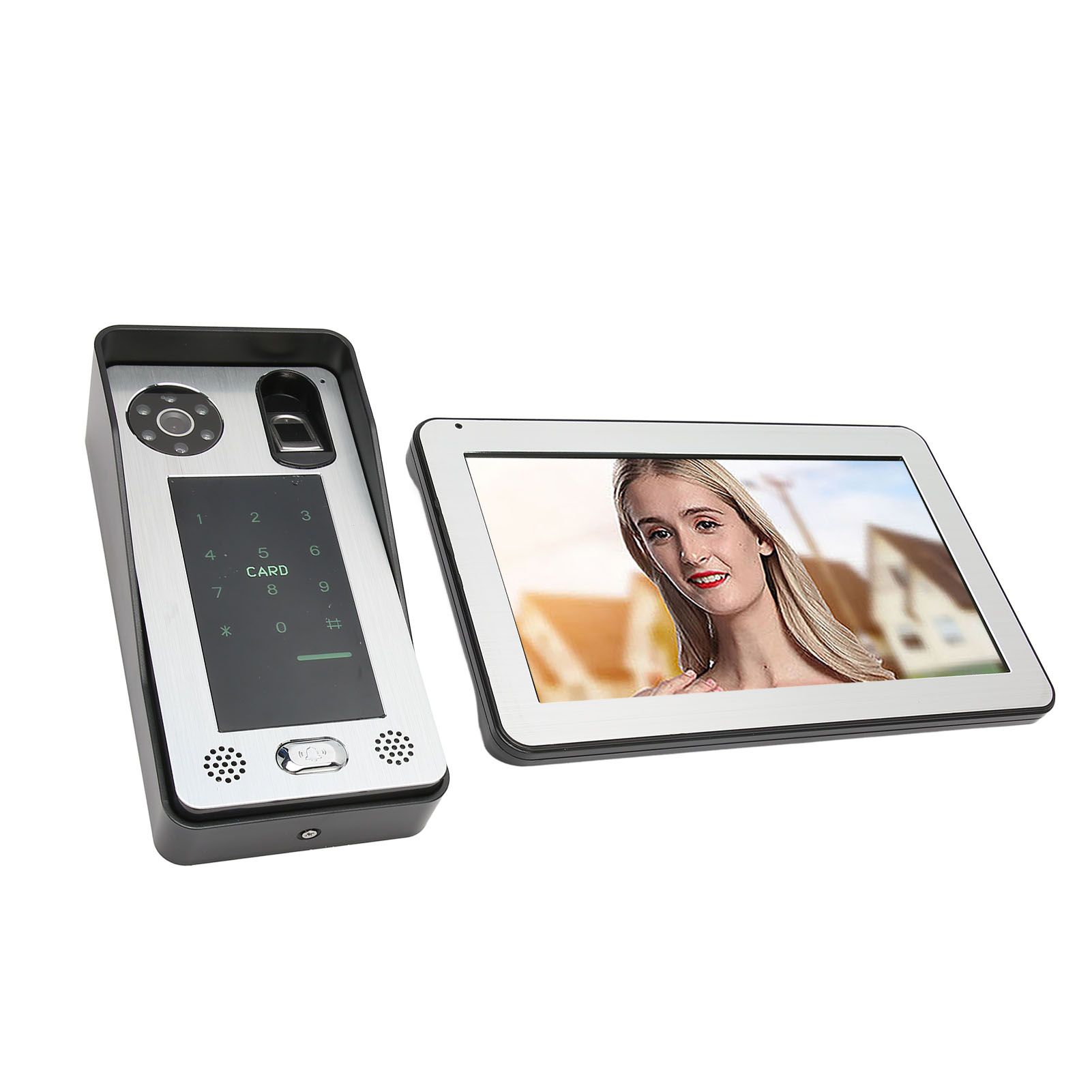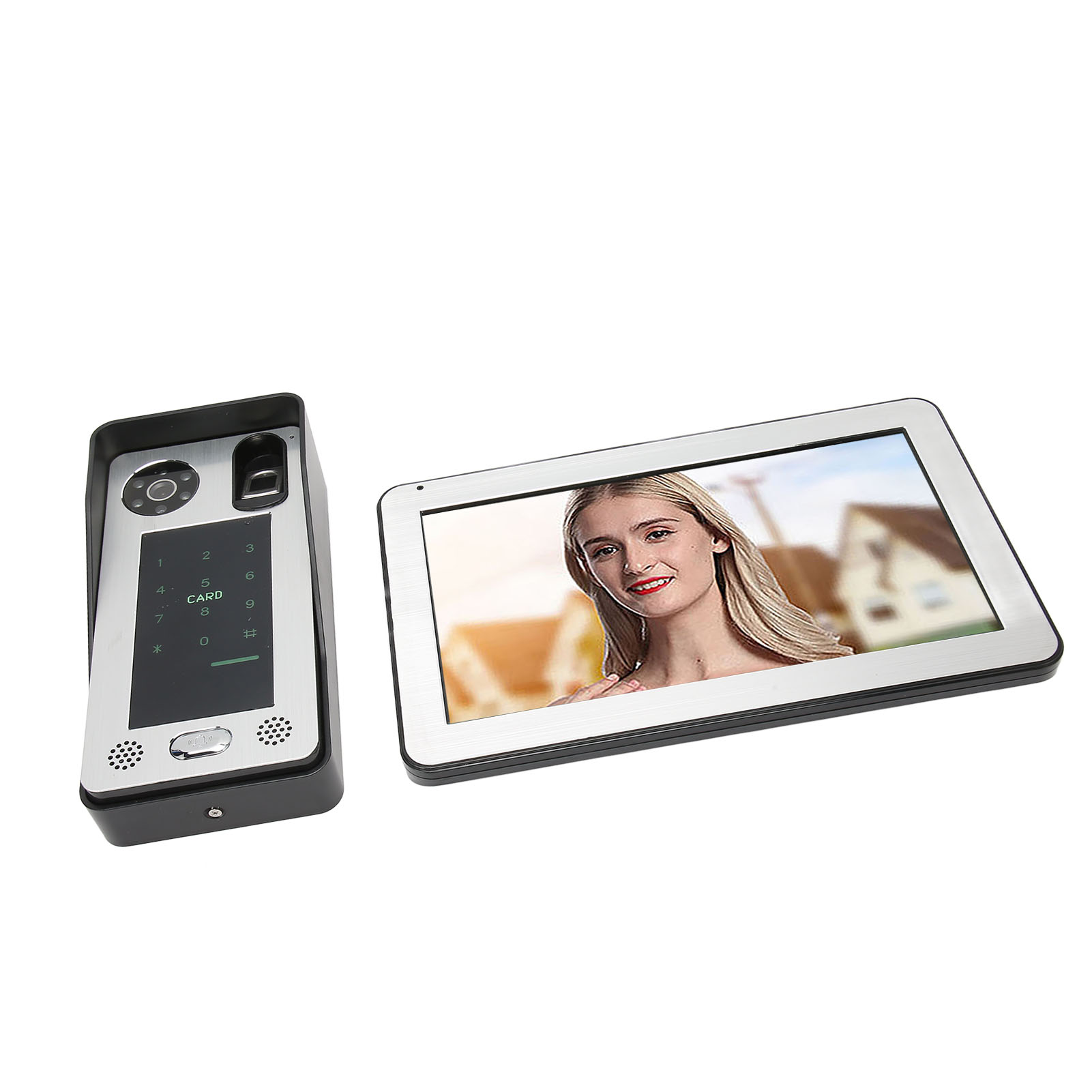 1、10 INCH TOUCH SCREEN: The indoor monitor adopts a multi point capacitive touch screen, support for Android system, 10 inch LCD display screen, with taking photos, visitor records, and calendar functions. 2、INDOOR DISPLAY FUNCTION: The indoor monitor supports manual or automatic shot, support up to 32GB small memory card(not included), the indoor monitor has intercom, unlocking, hands free, and no disturbance functions. 3、MULTI DEVICE CONNECTION: The indoor monitor can support connecting 8 mobile app users, support for IOS and for Android mobile system, with good compatibility, can also be viewed and unlocked through the phone. 4、UNLOCKING METHODS: Supports 500 fingerprints, 1000 IC card unlocking, password unlocking, and 99 remote control unlocking to meet more usage requirements. 5、CAMERA FUNCTION: The indoor monitor supports AHD 720P camera input, supports 2CH AHD doorbell and 2CH AHD security camera, with high definition image display. 6、ALUMINIUM ALLOY PANEL: The intercom doorbell panel is made of aluminum alloy material, wear and oxidation resistance, with a weatherproof cover, and supports wall mount installation.