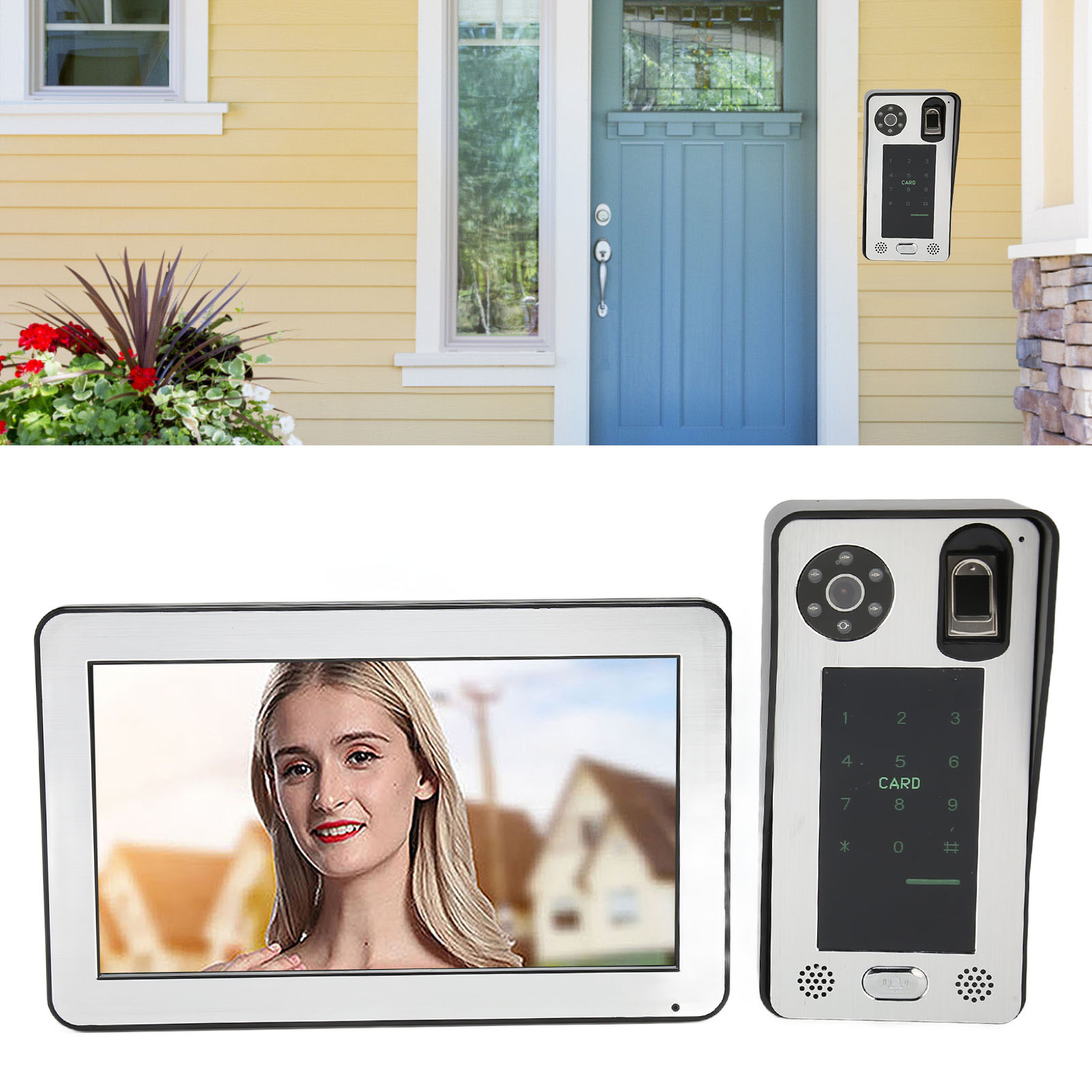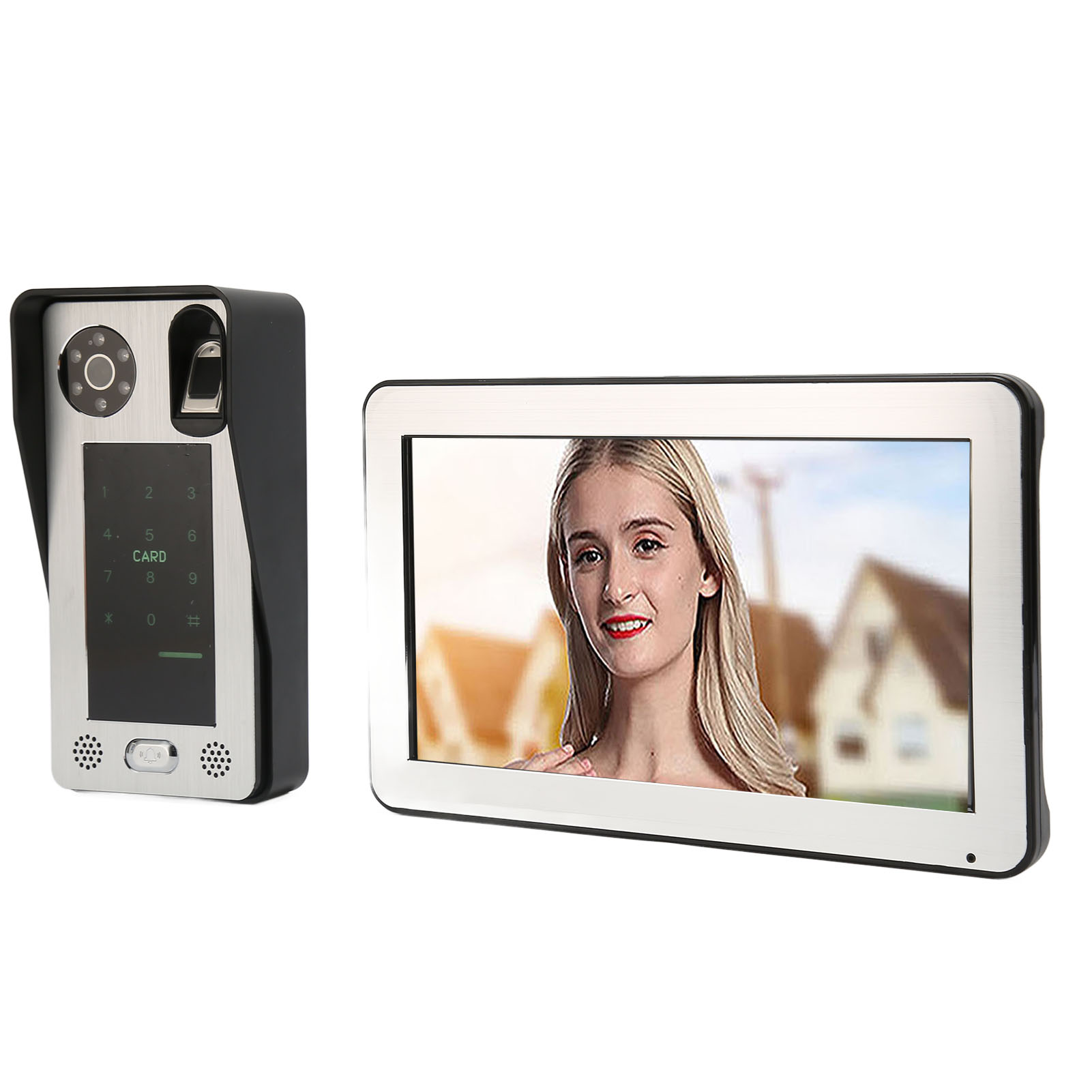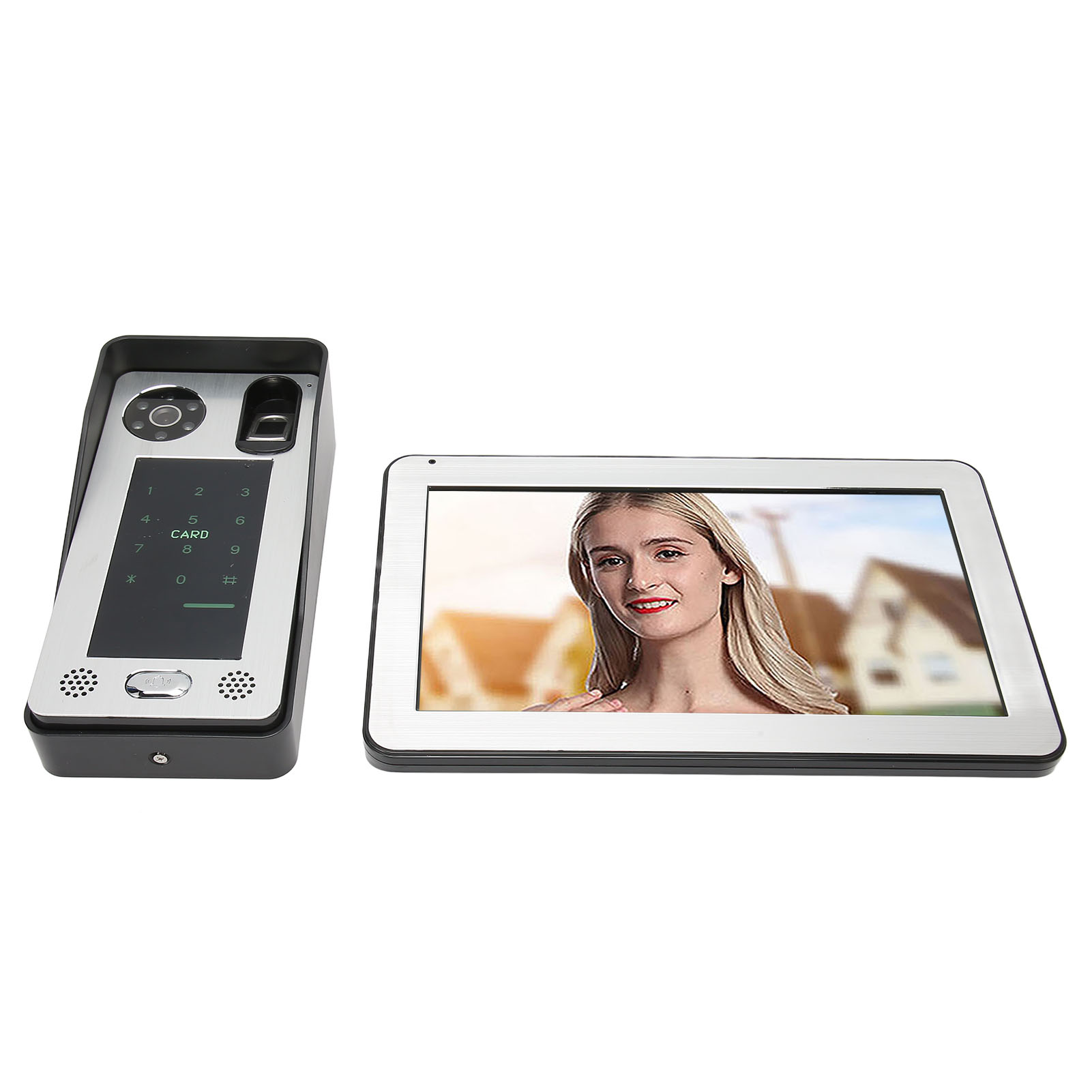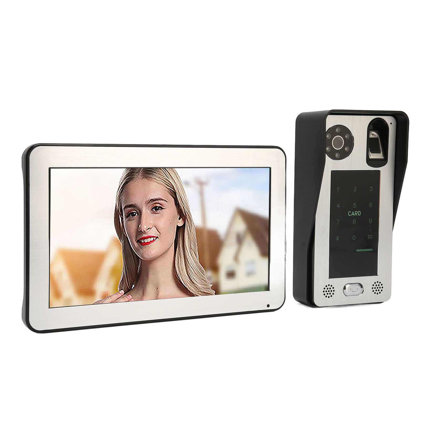 1、10 INCH TOUCH SCREEN: The indoor monitor adopts a multi point capacitive touch screen, support for Android system, 10 inch LCD display screen, with taking photos, visitor records, and calendar functions. 2、INDOOR DISPLAY FUNCTION: The indoor monitor supports manual or automatic shot, support up to 32GB small memory card(not included), the indoor monitor has intercom, unlocking, hands free, and no disturbance functions. 3、MULTI DEVICE CONNECTION: The indoor monitor can support connecting 8 mobile app users, support for IOS and for Android mobile system, with good compatibility, can also be viewed and unlocked through the phone. 4、UNLOCKING METHODS: Supports 500 fingerprints, 1000 IC card unlocking, password unlocking, and 99 remote control unlocking to meet more usage requirements. 5、CAMERA FUNCTION: The indoor monitor supports AHD 720P camera input, supports 2CH AHD doorbell and 2CH AHD security camera, with high definition image display. 6、ALUMINIUM ALLOY PANEL: The intercom doorbell panel is made of aluminum alloy material, wear and oxidation resistance, with a weatherproof cover, and supports wall mount installation.