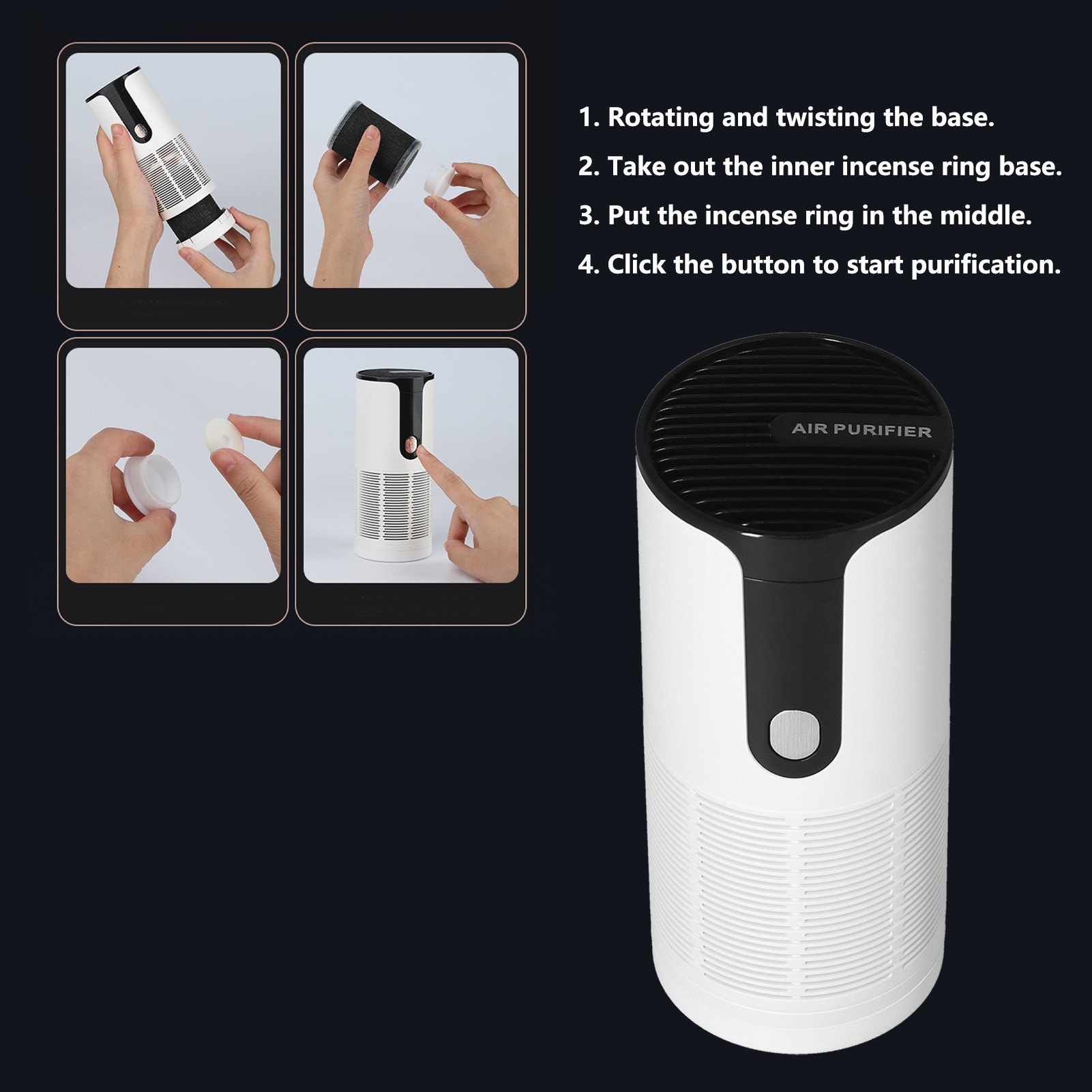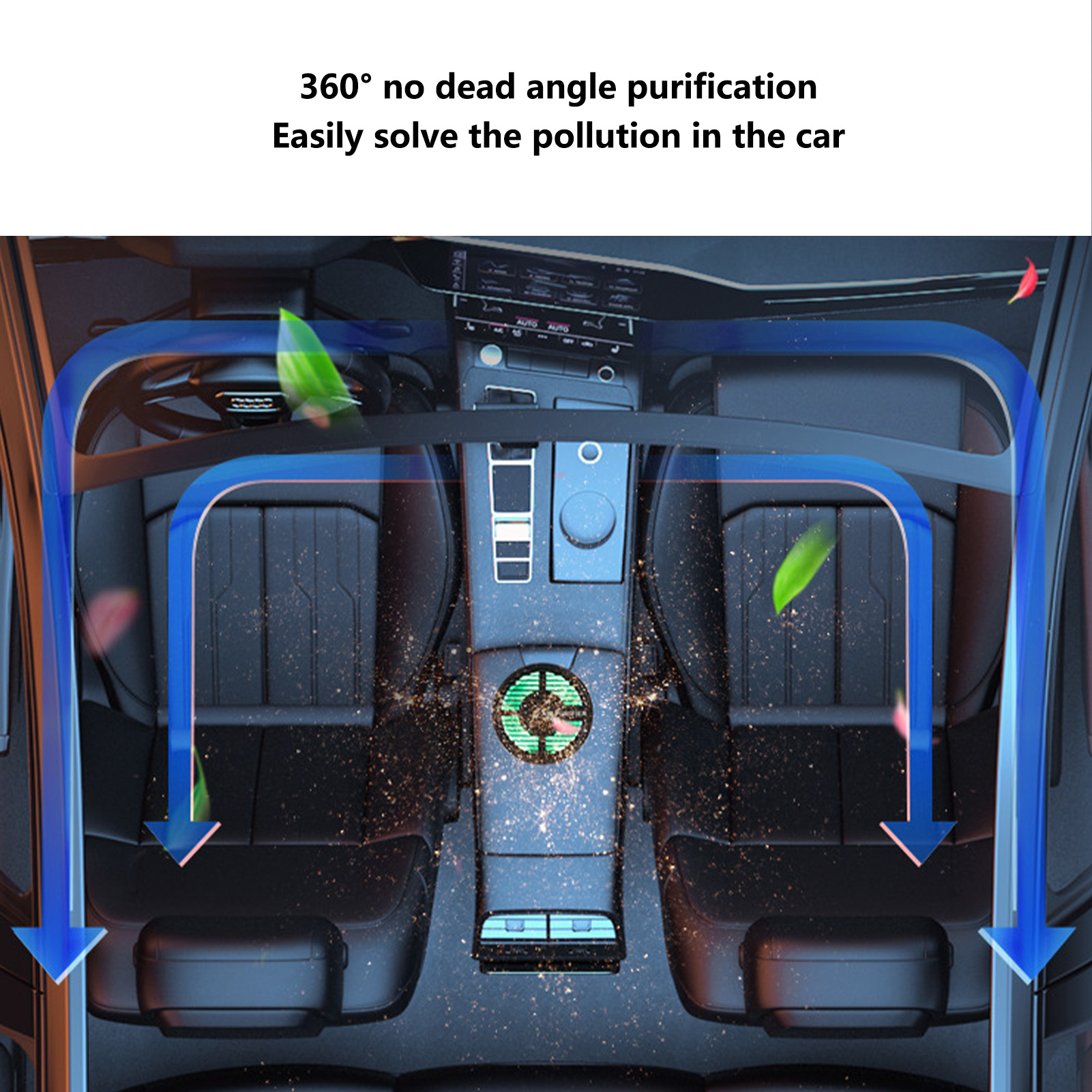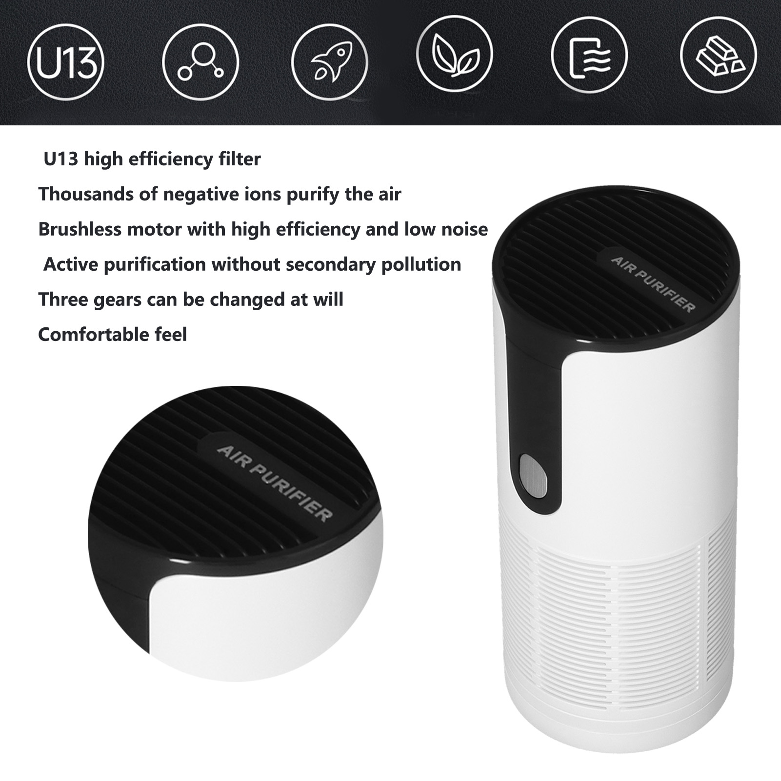 1、360° no dead angle purification, easy to solve the pollution in the car, timely decomposition of gearms and formaldehyde, removal of various peculiar smells, no residue, no harm, and strong effect. 2、This air purifier runs quietly to create a comfortable and soothing environment without disturbing your daily life. This air cleaner is also very easy to fit, carry and used in small areas like cars, baby rooms, bathrooms, kitchen. 3、The purification accuracy of the U13 high efficiency filter is increased by 80%, and the tens of millions of negative ions can quickly remove dust, so that your environment is full of fresh and clean air. 4、The intelligent three speed adjustment allows you to select the appropriate speed, from the first to the third level of purification, the purification power continues to increase, and there are colored breathing lights. 5、Wireless intelligence, USB fast charging interface, built-in 1200 mAh battery, fast charging and long standby time. It can be connected to the charging head of a computer and a mobile phone, which is convenient to use.