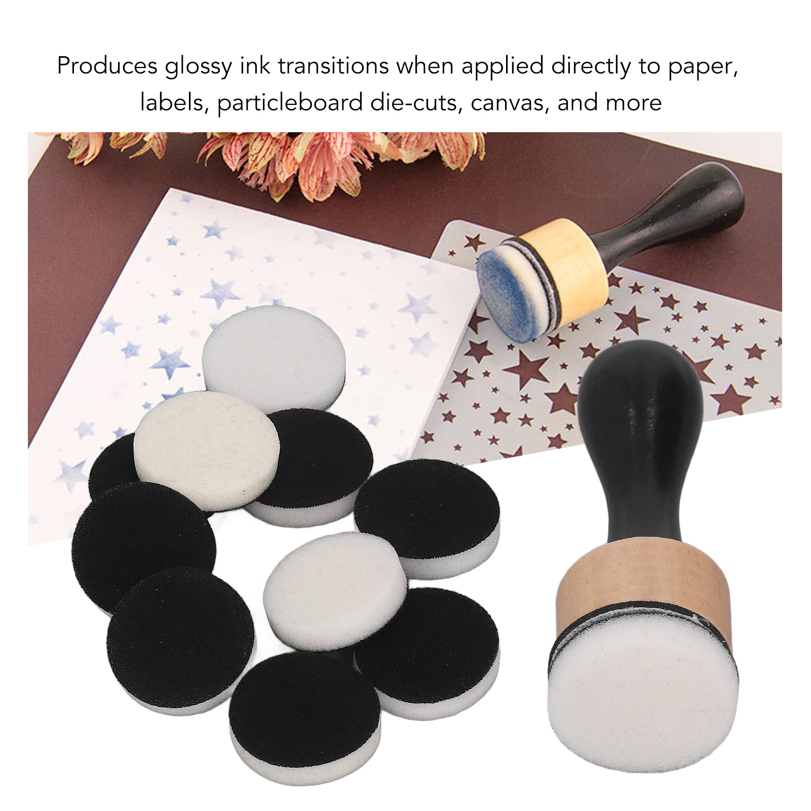 1、Easy To Use: Produces a glossy ink transition when applied directly to paper, labels, particleboard die cuts, canvas, and more. 2、Deep Saturation: Our sponges are specially made to really absorb ink to ensure rich color quality. 3、Dome Design: These foam ink pads feature a dome design, which makes them a useful tool for applying ink and paint through stencils, so you can use them to apply ink and other media to paper making projects. 4、Applicability: Our blending sponges are different in shape from other sponges and are ideal for your application of ink and paint to small areas of dome shaped designs. 5、Multipurpose: Not only can be used for scrapbooking, paper cards, embossing, but also for photo albums, cardstock, DIY crafts, etc., easy and convenient to use.