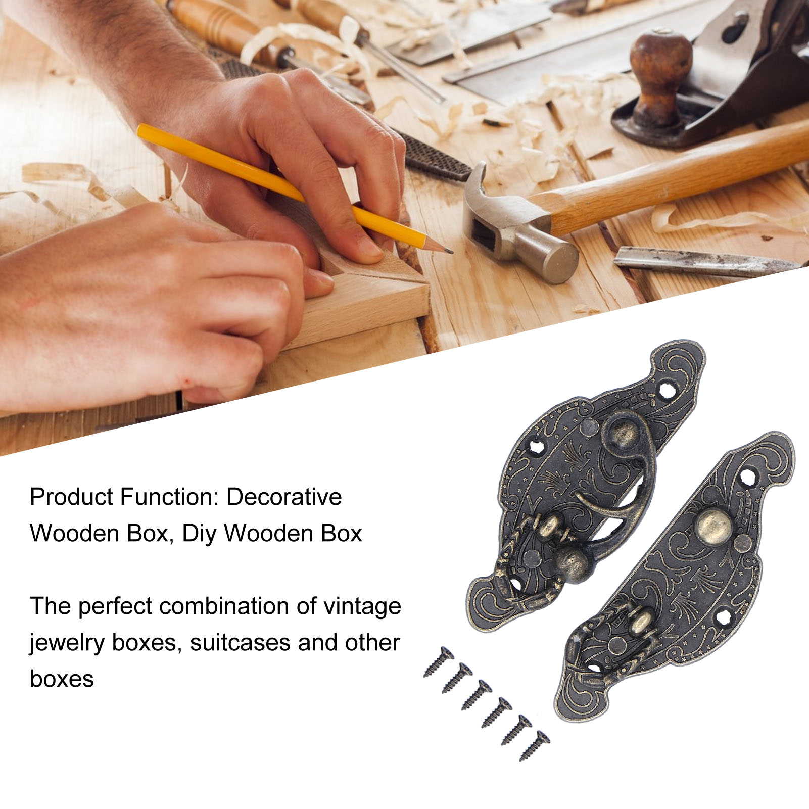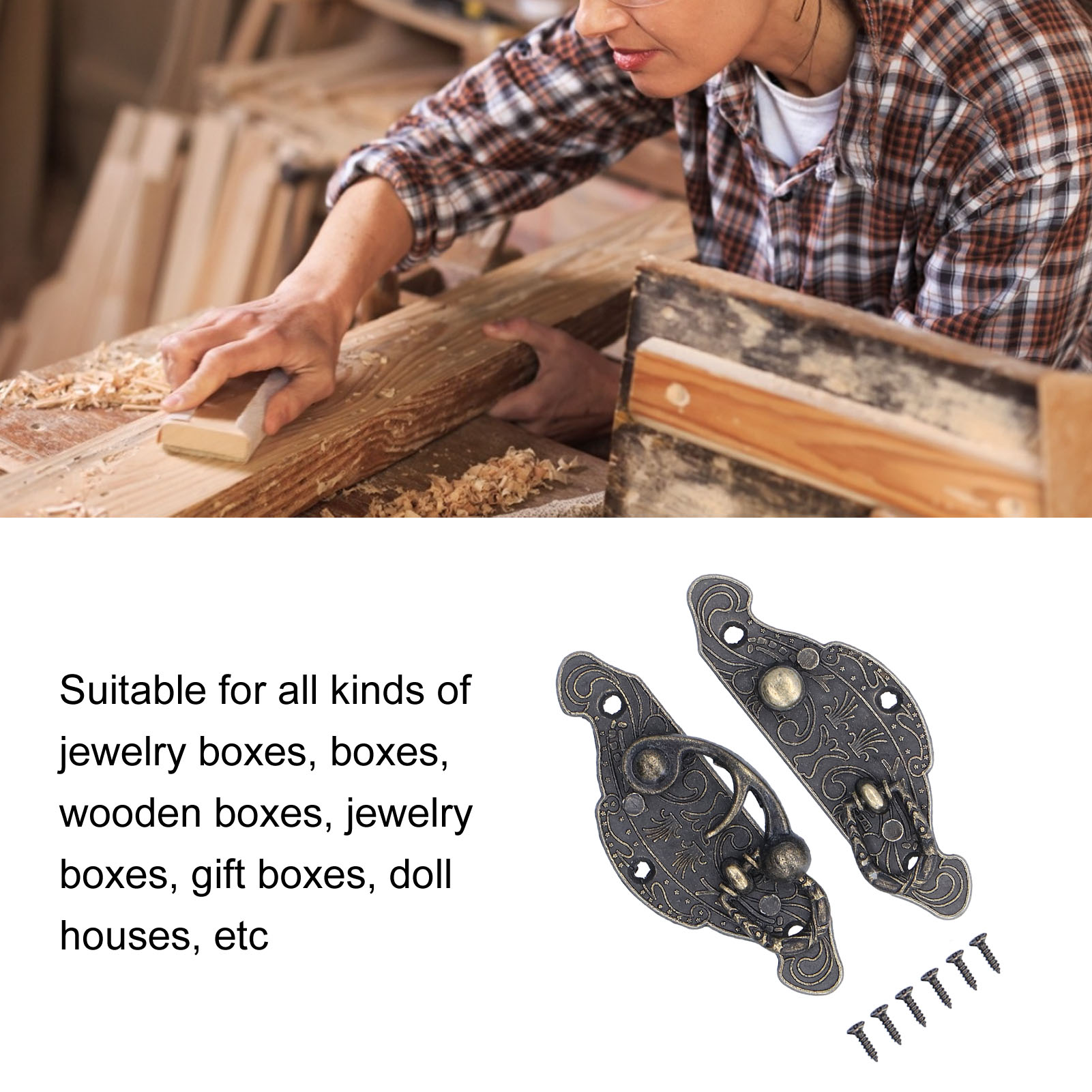 1、High Quality Materials: The surface is electroplated, rust‑proof, not easy to fade, and the high quality materials are durable and durable. 2、DIY: Comes with mounting screws, convenient for DIY installation, and convenient for daily life. 3、Uses: Suitable for all kinds of jewelry boxes, boxes, wooden boxes, jewelry boxes, gift boxes, doll houses, etc. 4、Decoration: Retro jewelry boxes, suitcases and other boxes are perfectly matched. Ideal hardware for homes, offices, shops, etc. 5、Retro: The box lock is a retro design, bronze color, suitable for decorating wooden boxes.