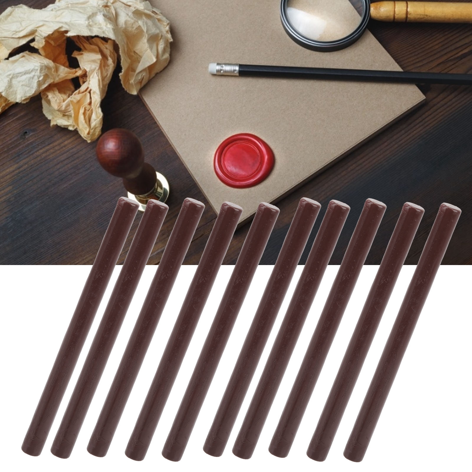 10 Pcs Sealing Wax Sticks Multicolor Round Lacquer Small Stamp Envelopes Wax Kit for Wedding Birthday PartyBrown