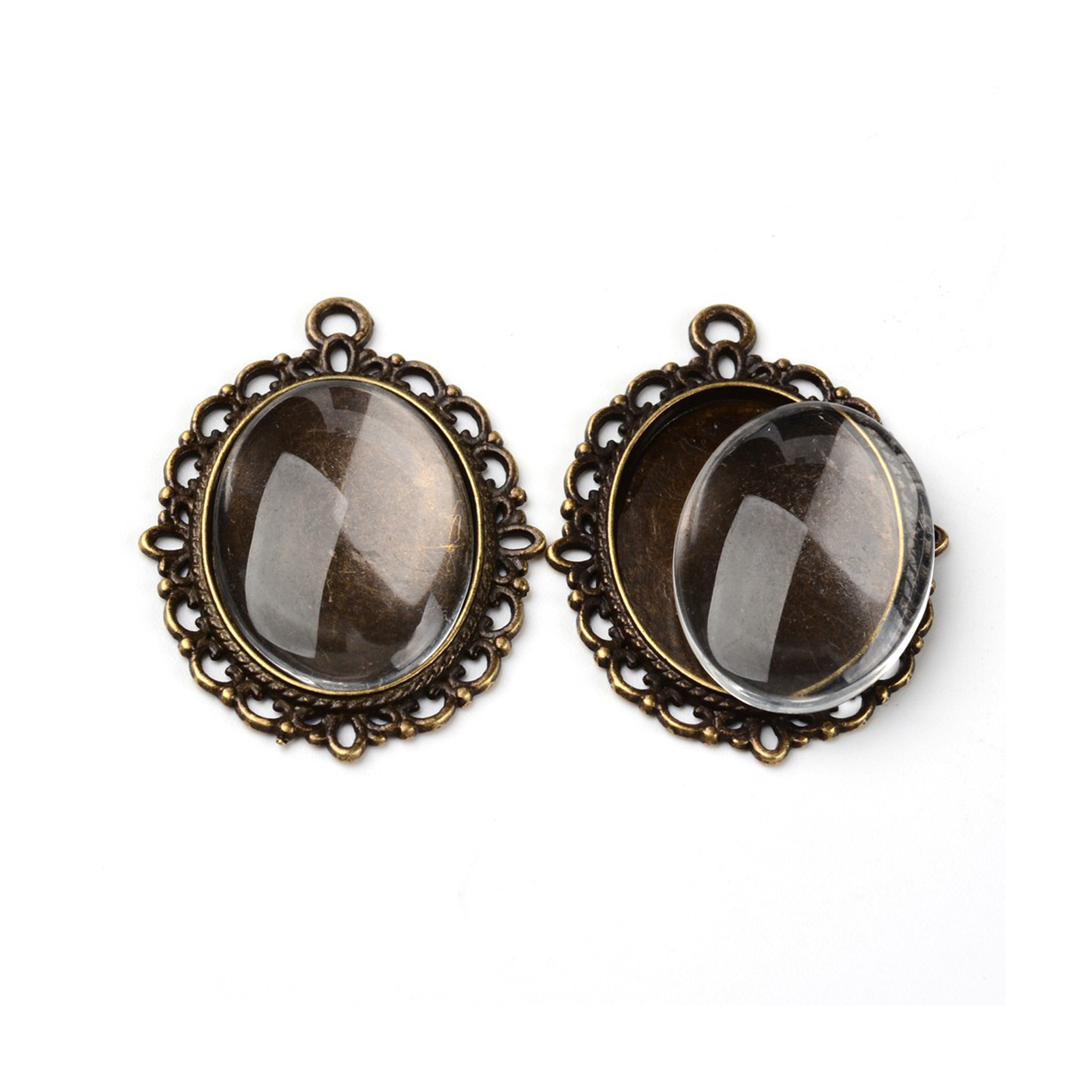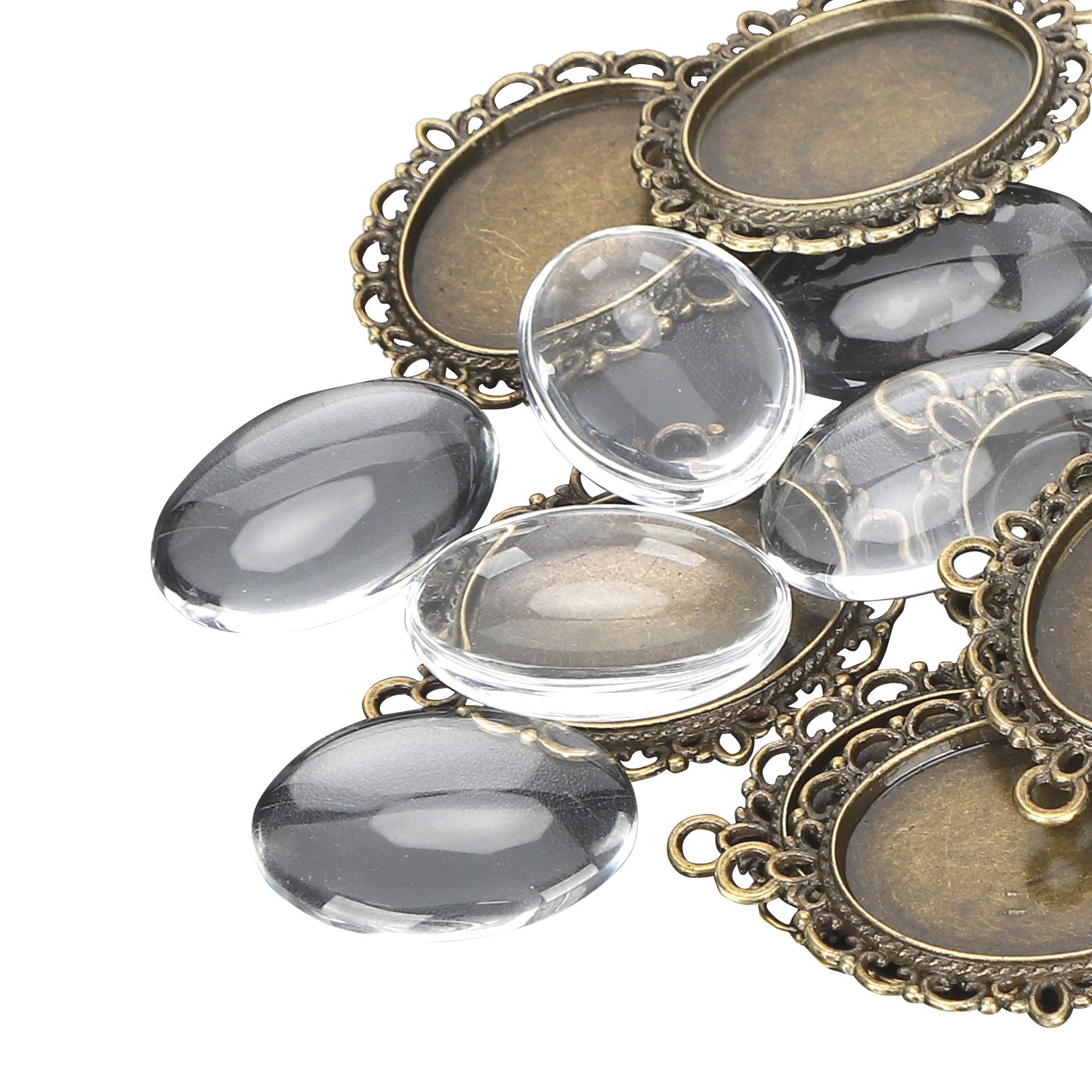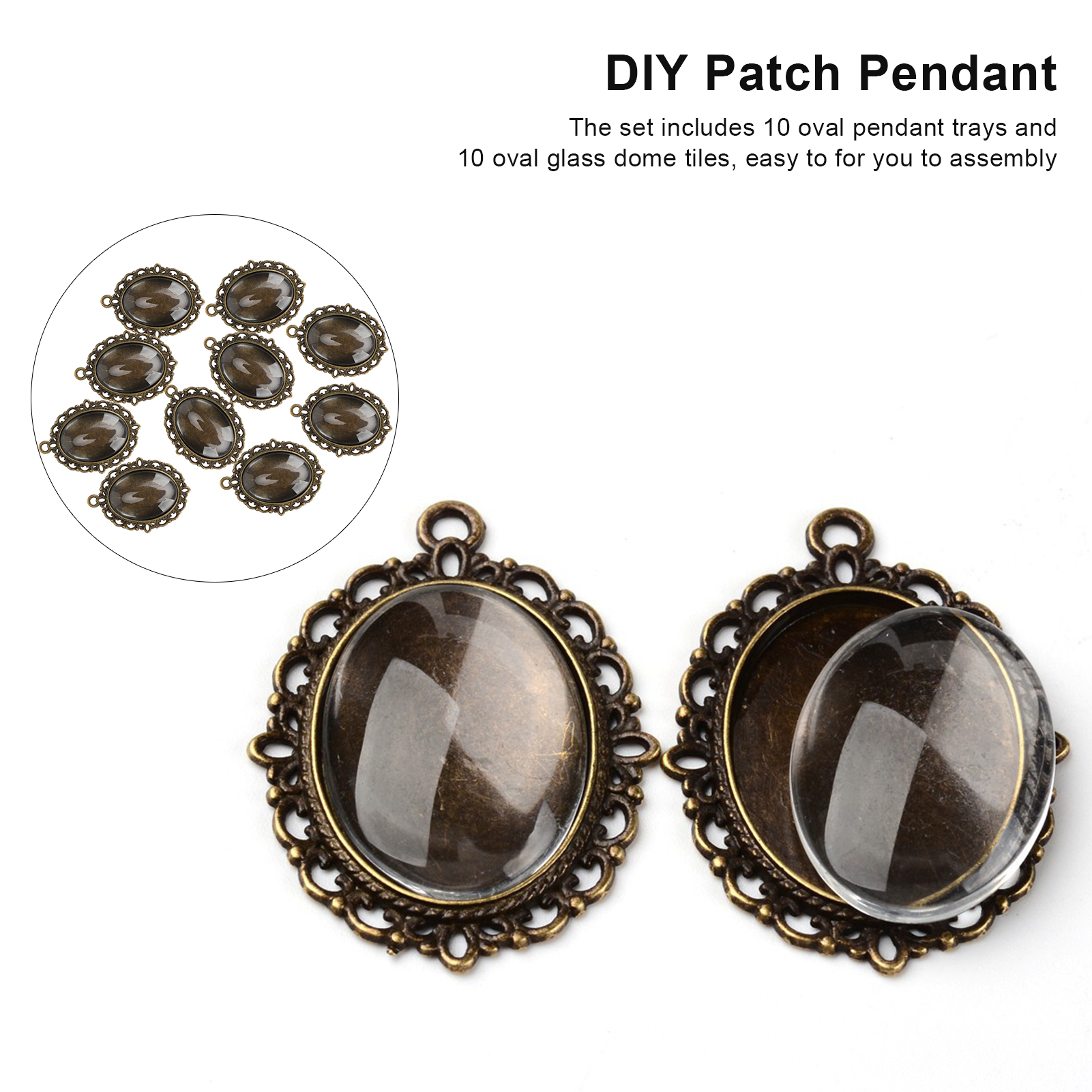 1、Oval tray frame size is 38x28mm, hole diameter 3mm, easy for you to hang. Made of solid metal alloy, hard and durable, which will not bend 2、Oval glass dome tiles size is 24x17mm, glass material is hard and transparent, can be perfectly matched with the pendant 3、The set includes 10 oval pendant trays and 10 oval glass dome tiles, easy to for you to assembly 4、The pendant frame is made of durable metal alloy, sturdy and durable, the oval glass dome tile is made of transparent glass, and the convex glass can enlarge the internal pattern, make it clear and bright 5、Pendant trays and dome tiles can be used to make various art, crafts, resins, embossed pendants, photo jewelry and custom jewelry, possess wide range of uses