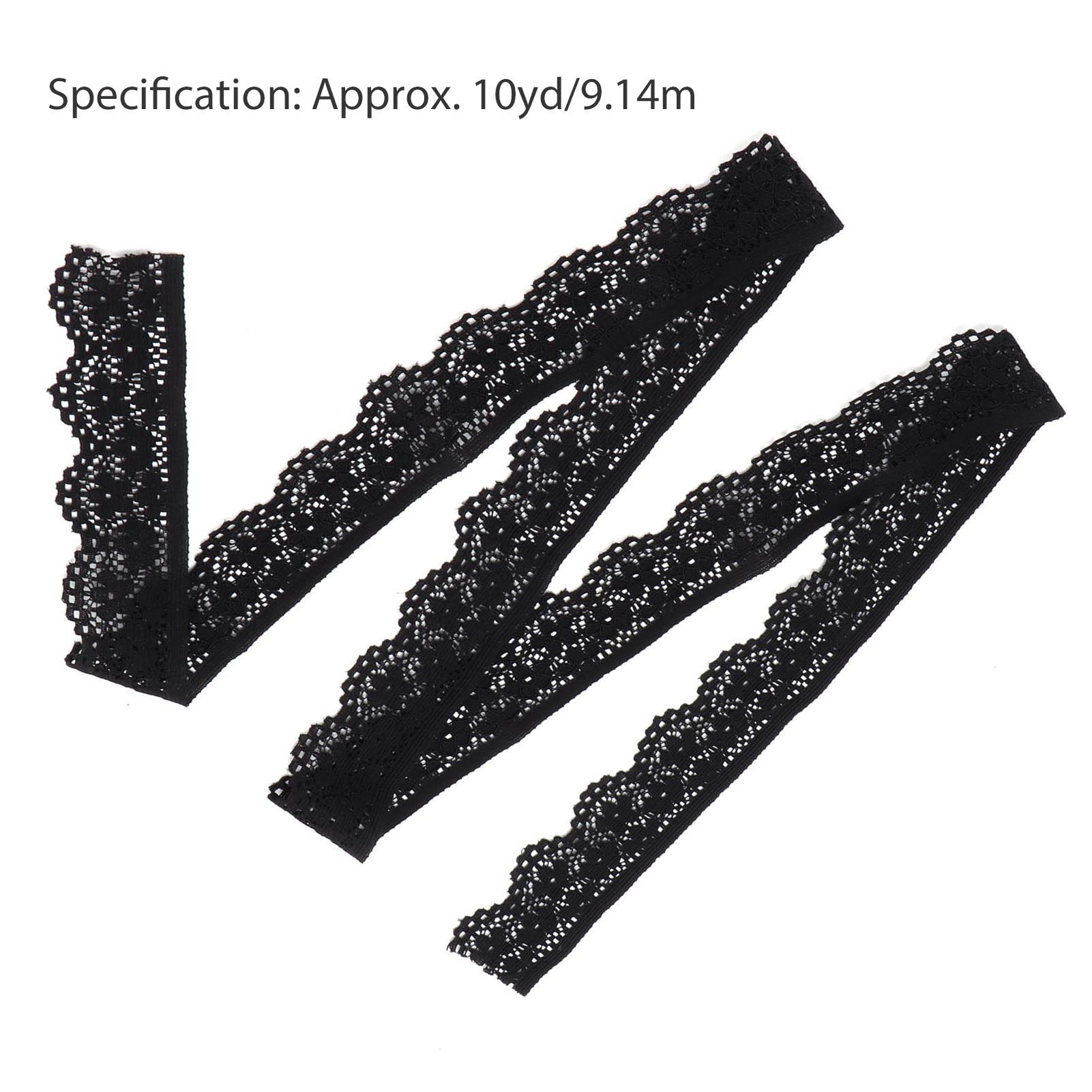 10 Yard Lace Ribbon 2.5cmWidth Black Single Side Wavy Nylon for Sewing Card Making